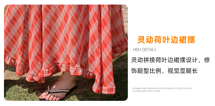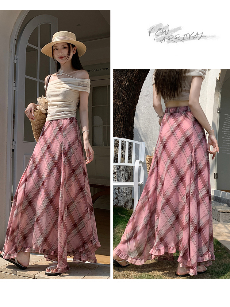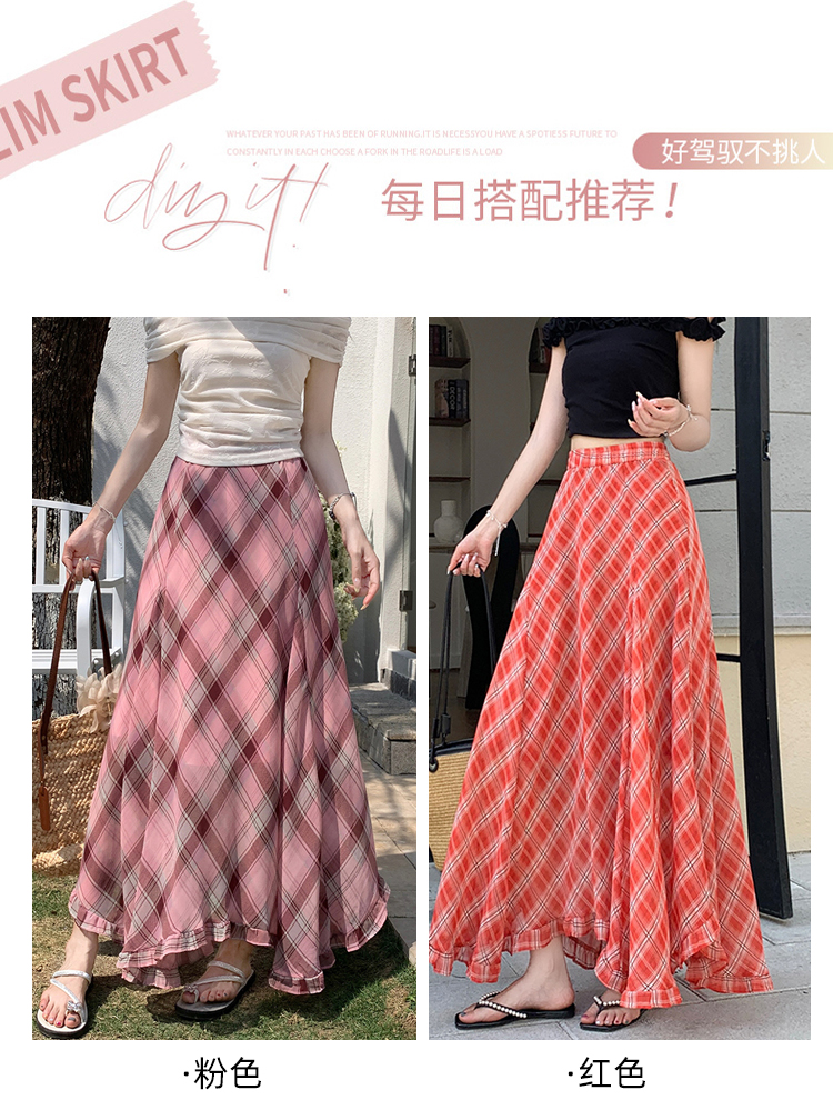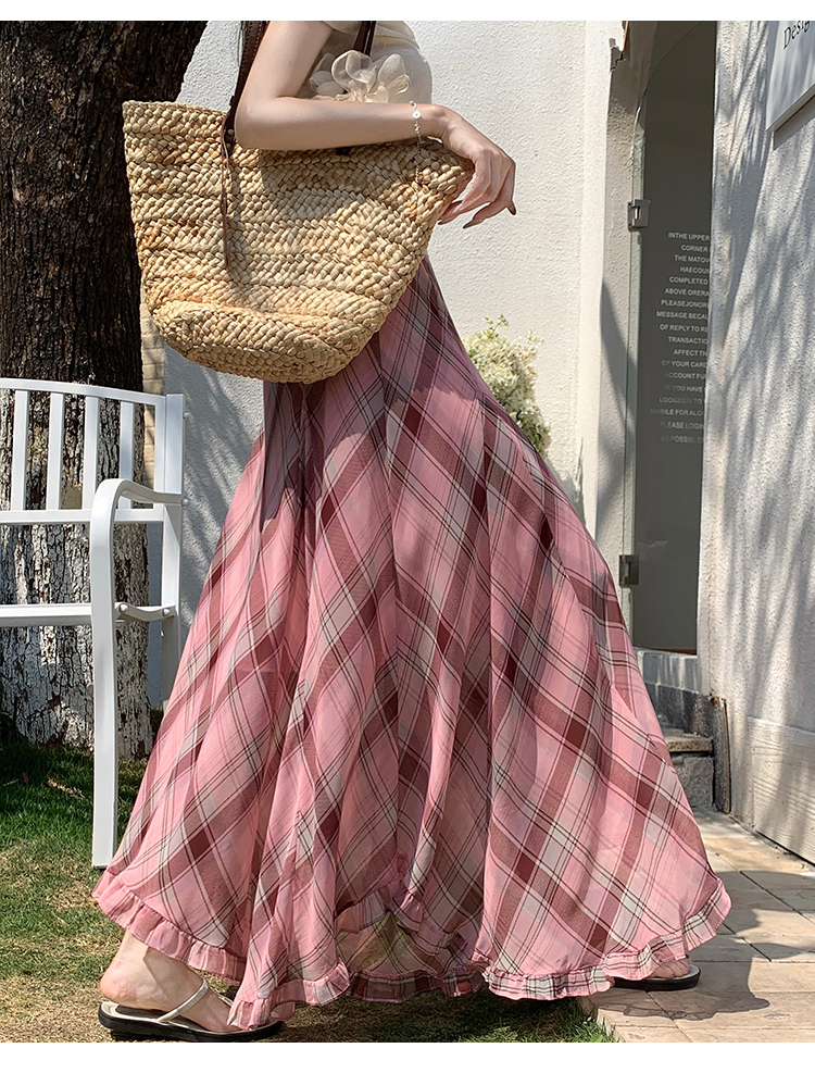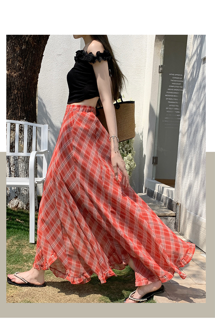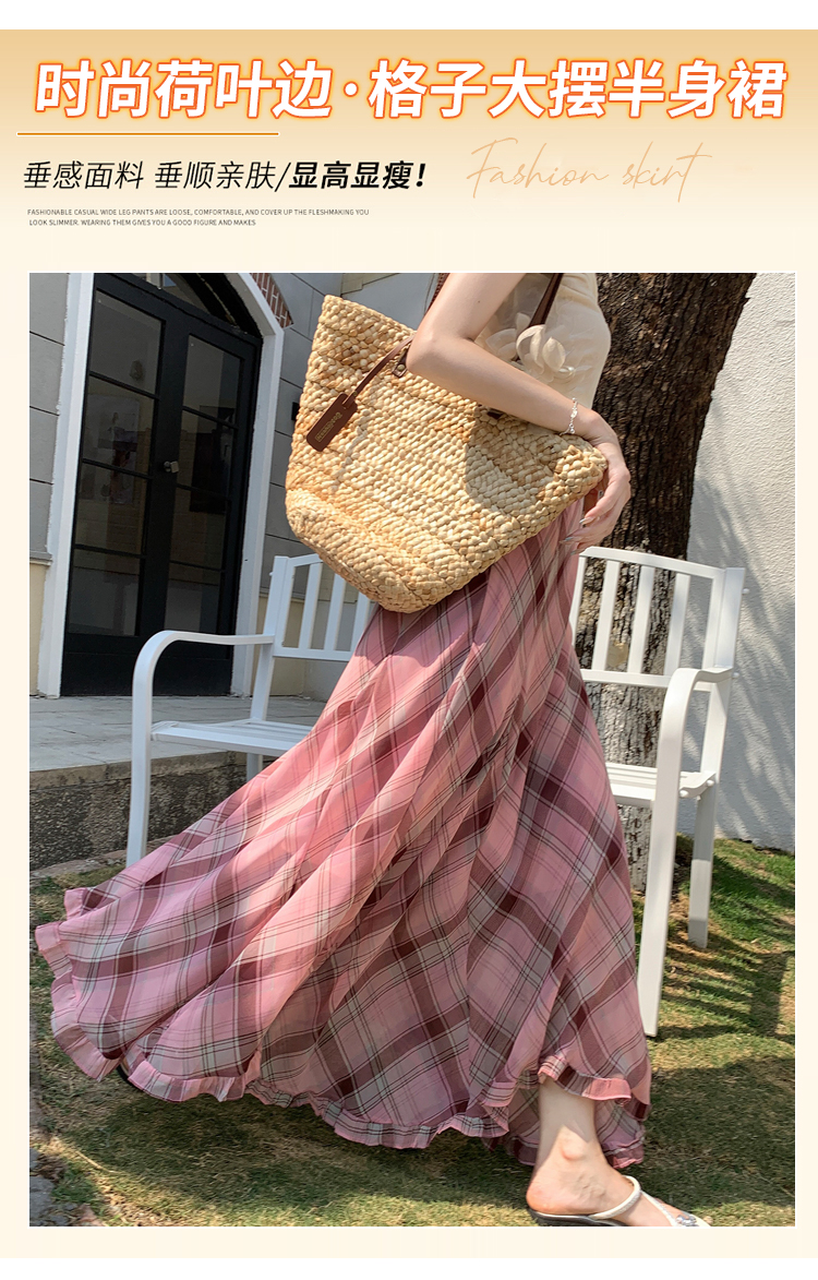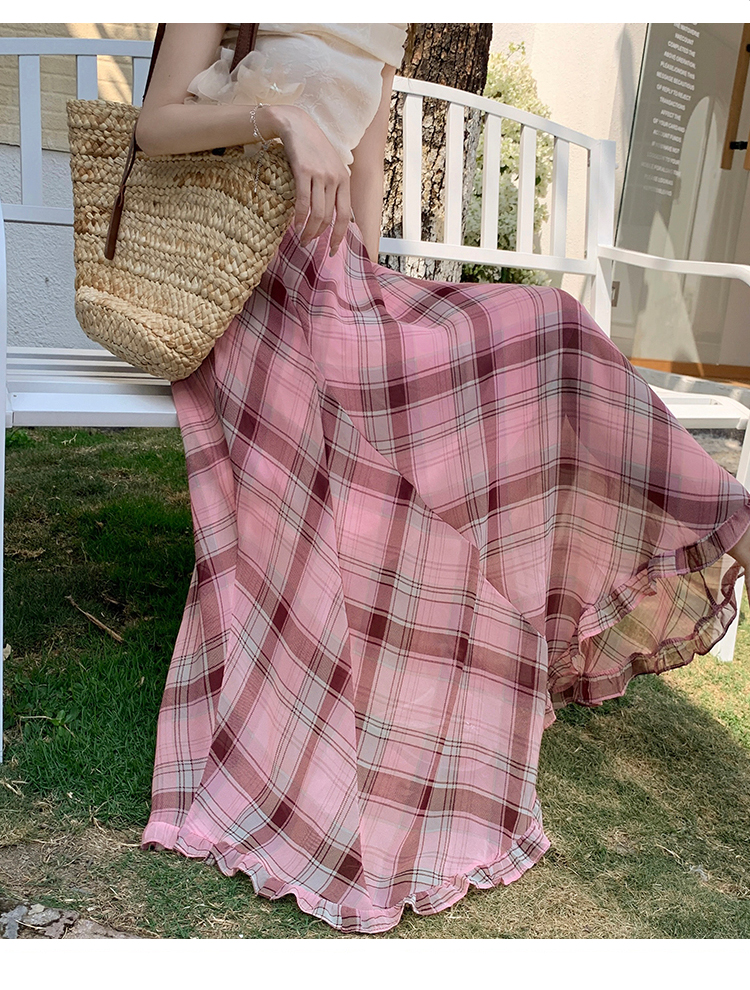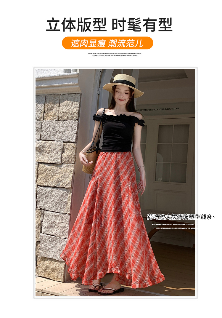 한 부서 프릴 주름 달콤함 반신 스커트 휴가 사진 찍기 롱 스커트 분위기 센스 봄 여름 부서 치마