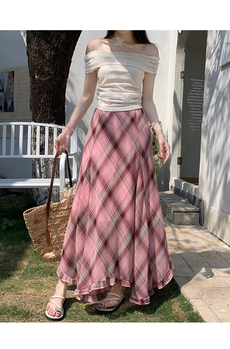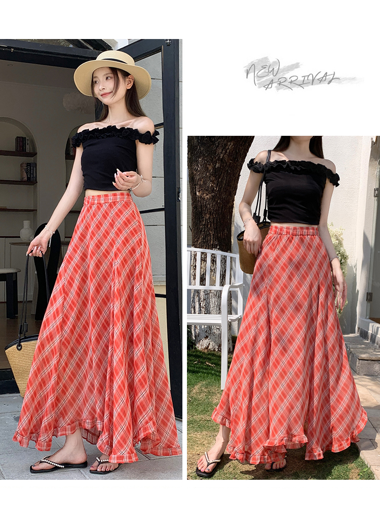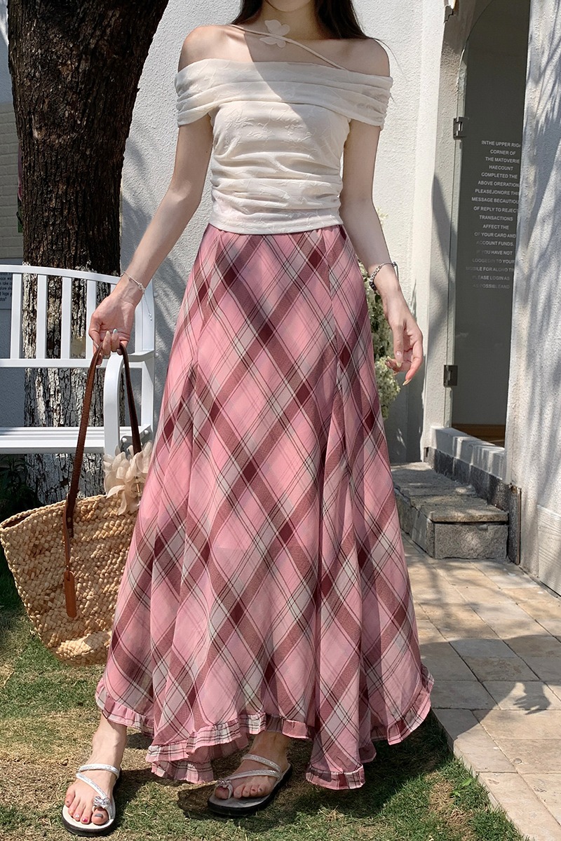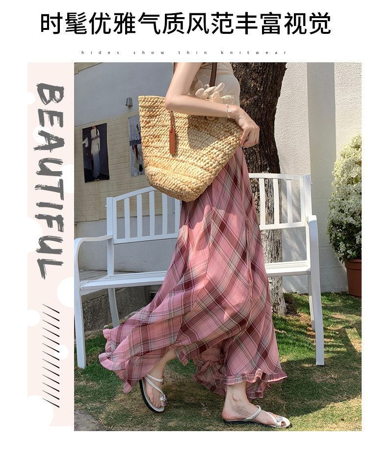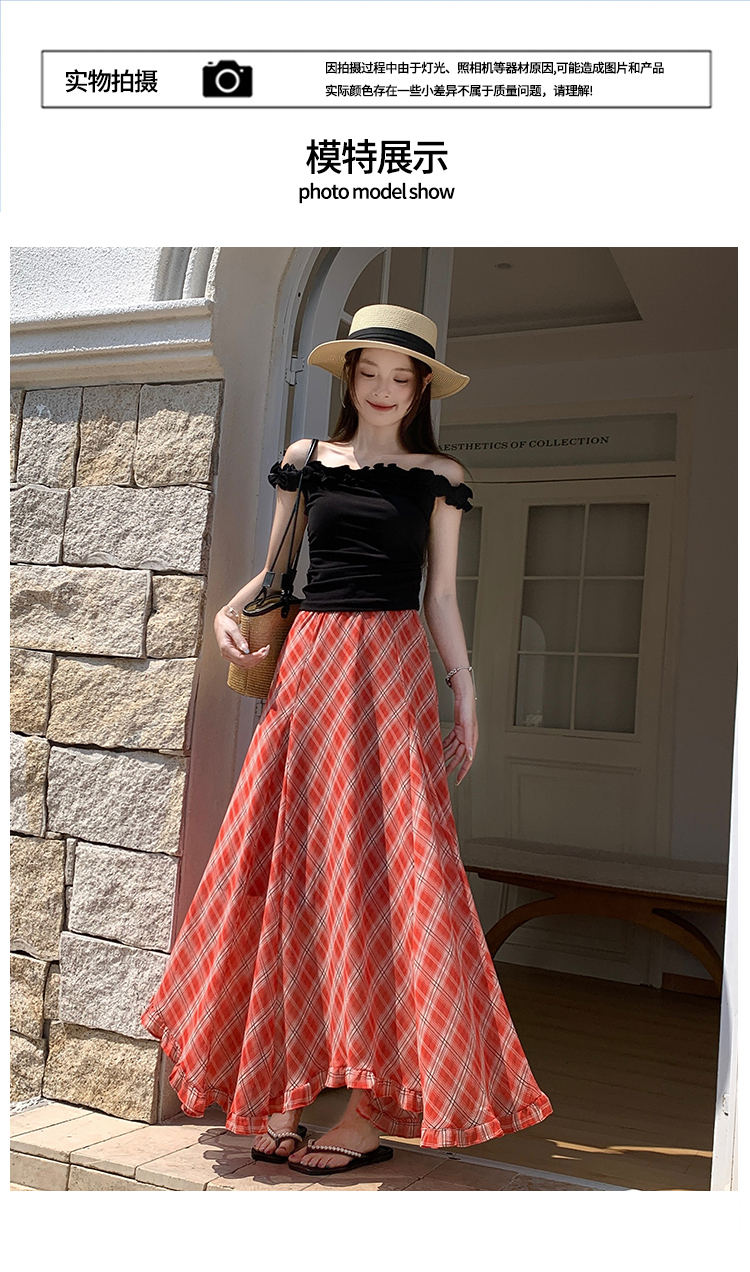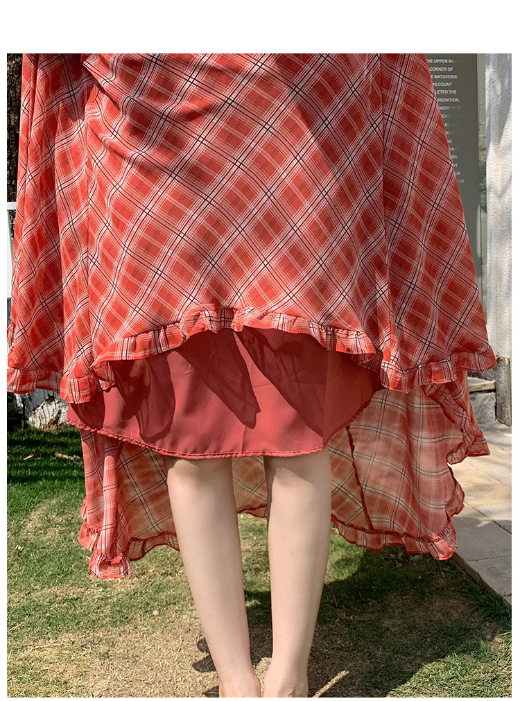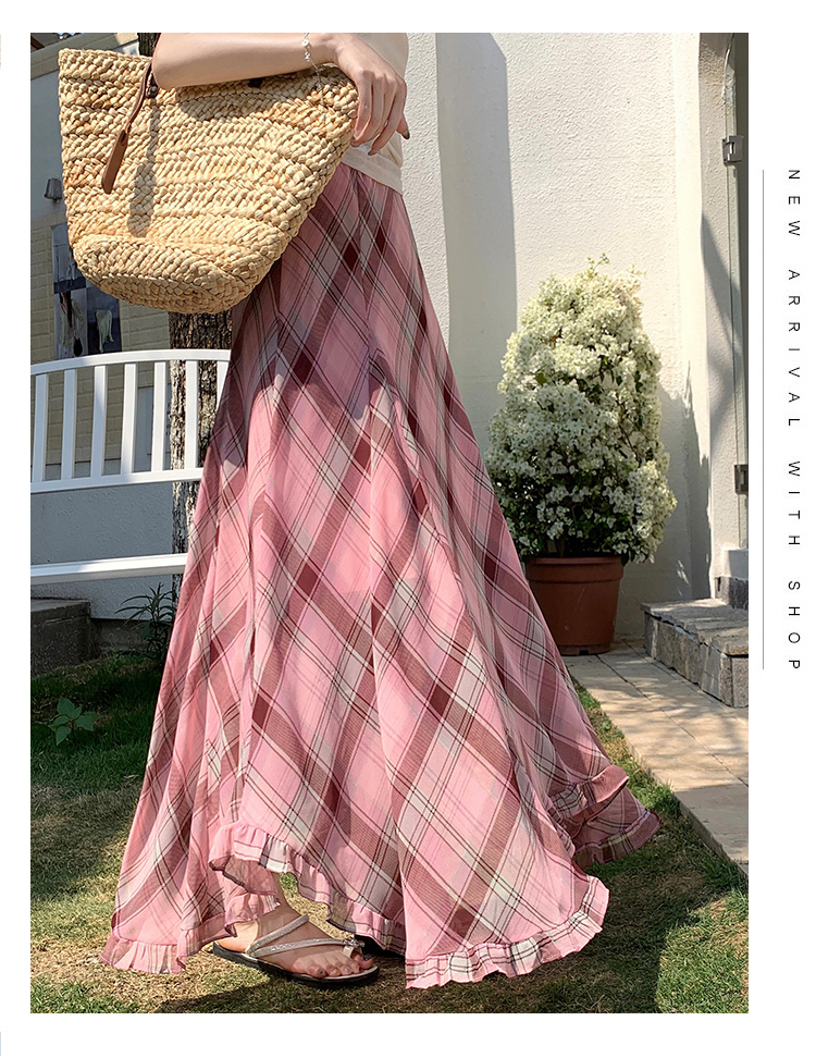 한 부서 프릴 주름 달콤함 반신 스커트 휴가 사진 찍기 롱 스커트 분위기 센스 봄 여름 부서 치마