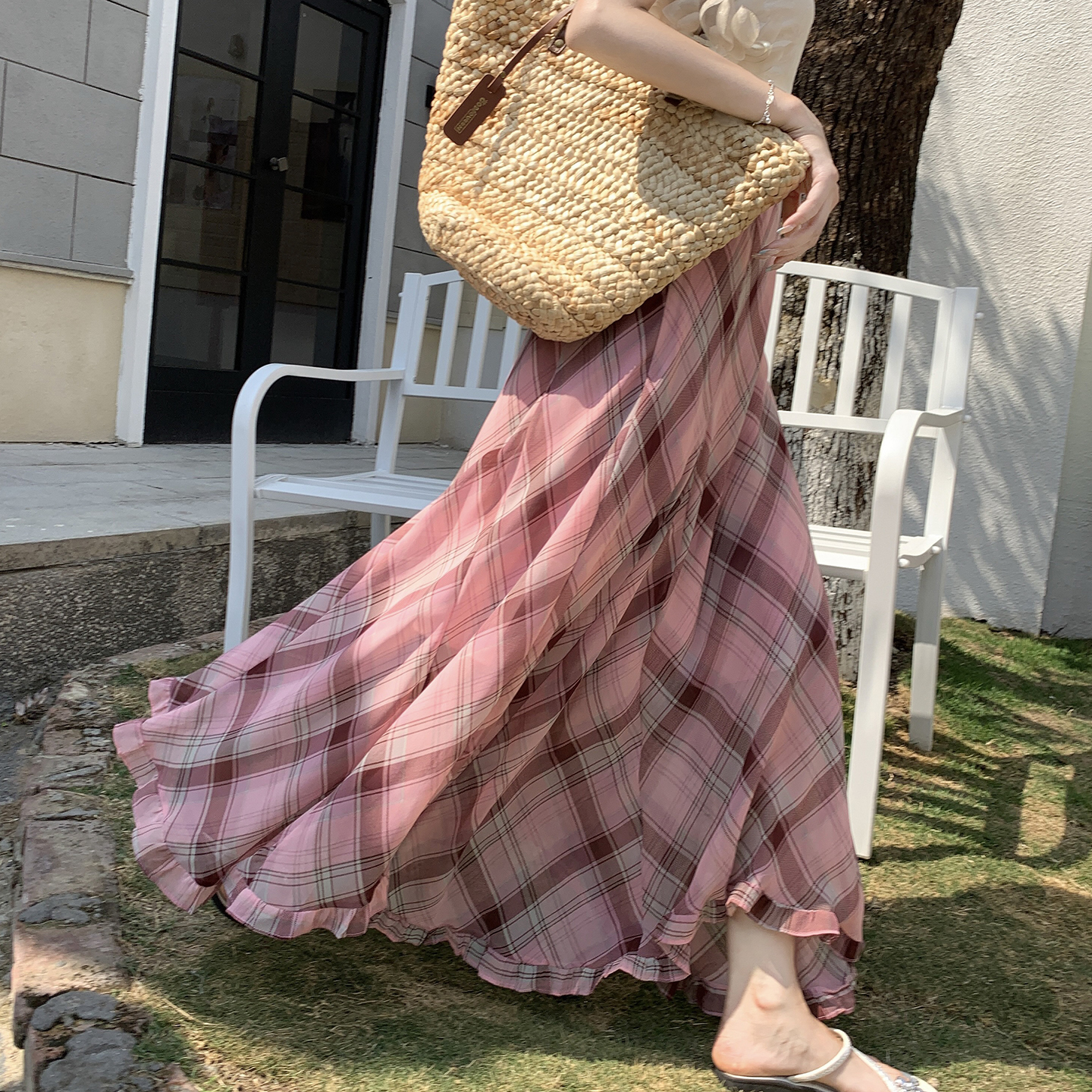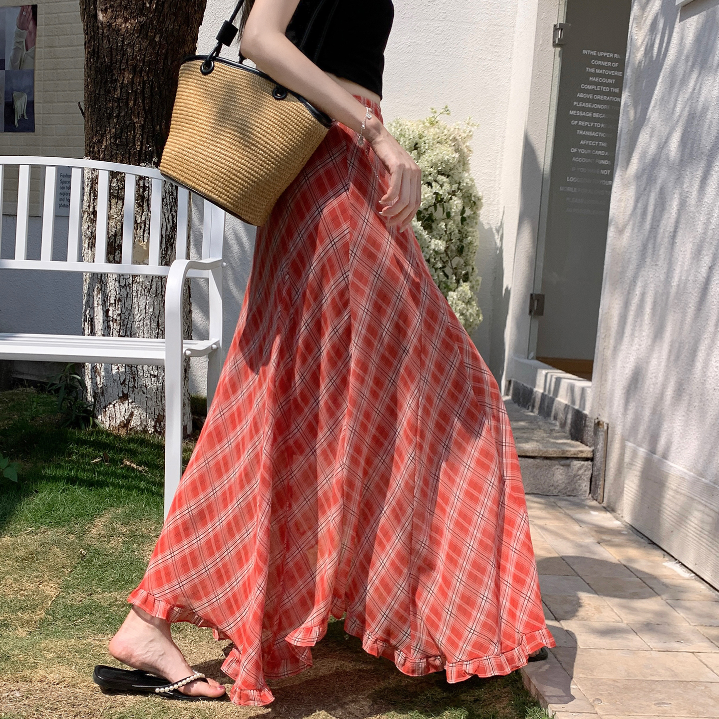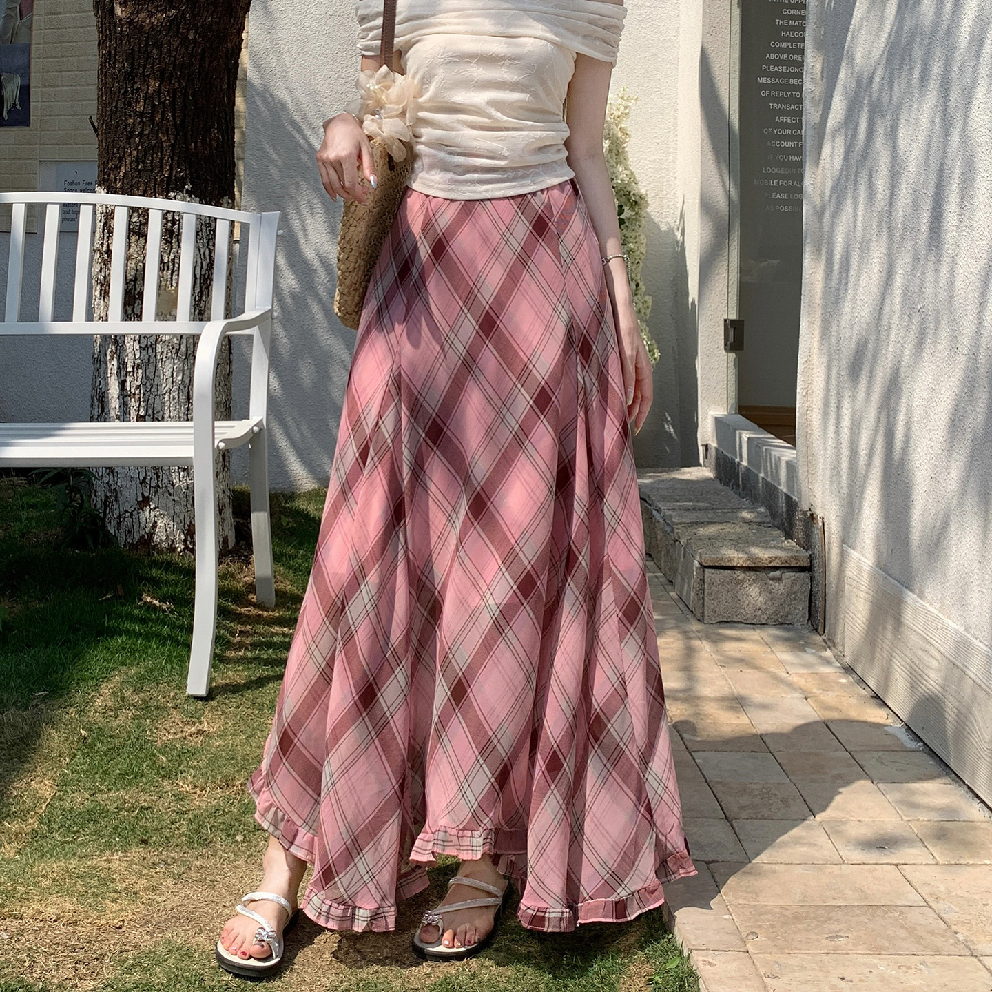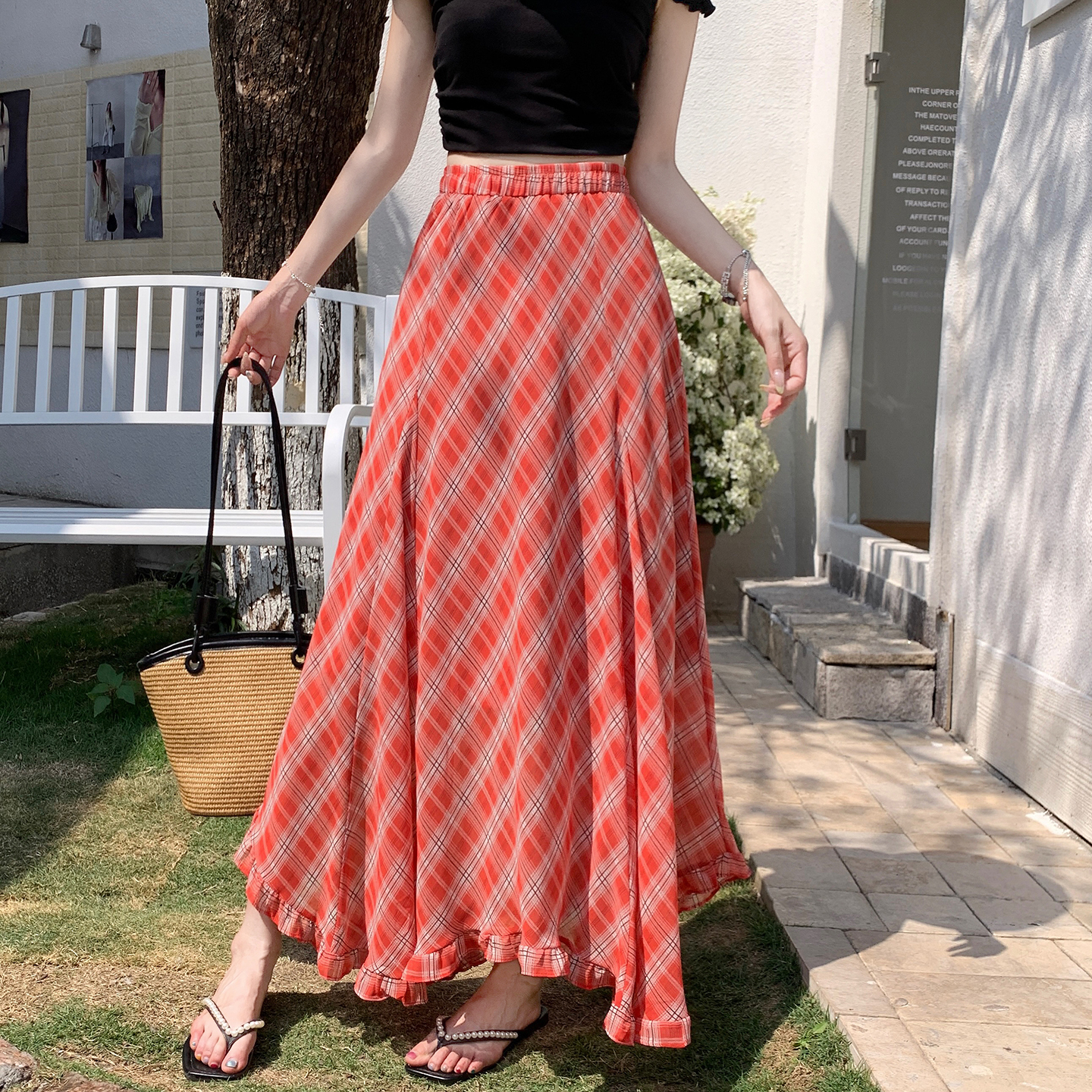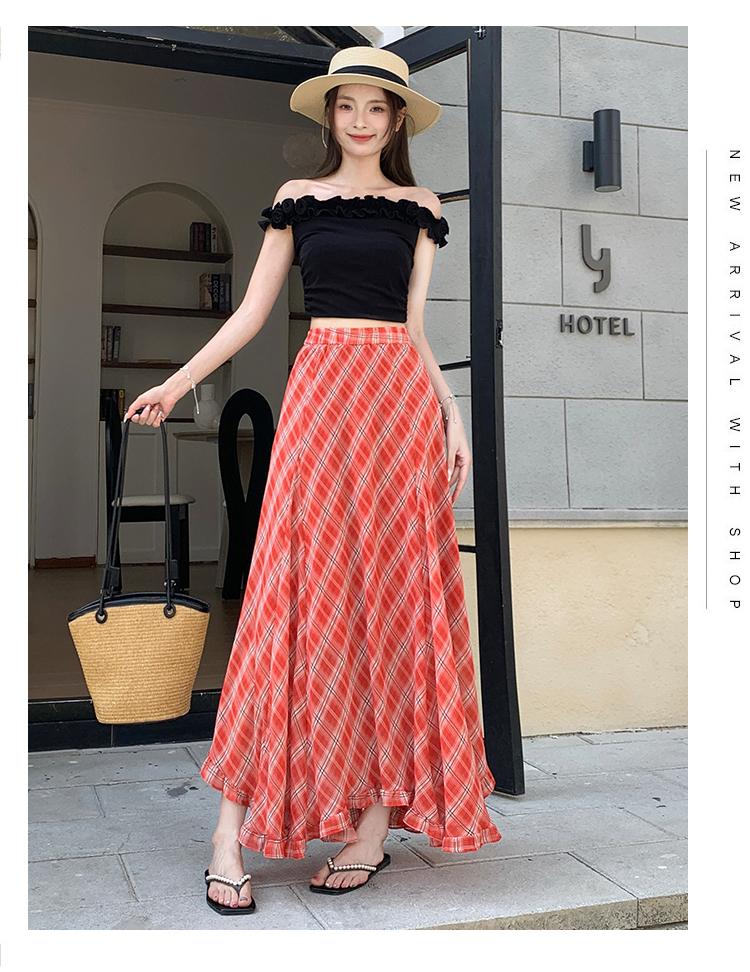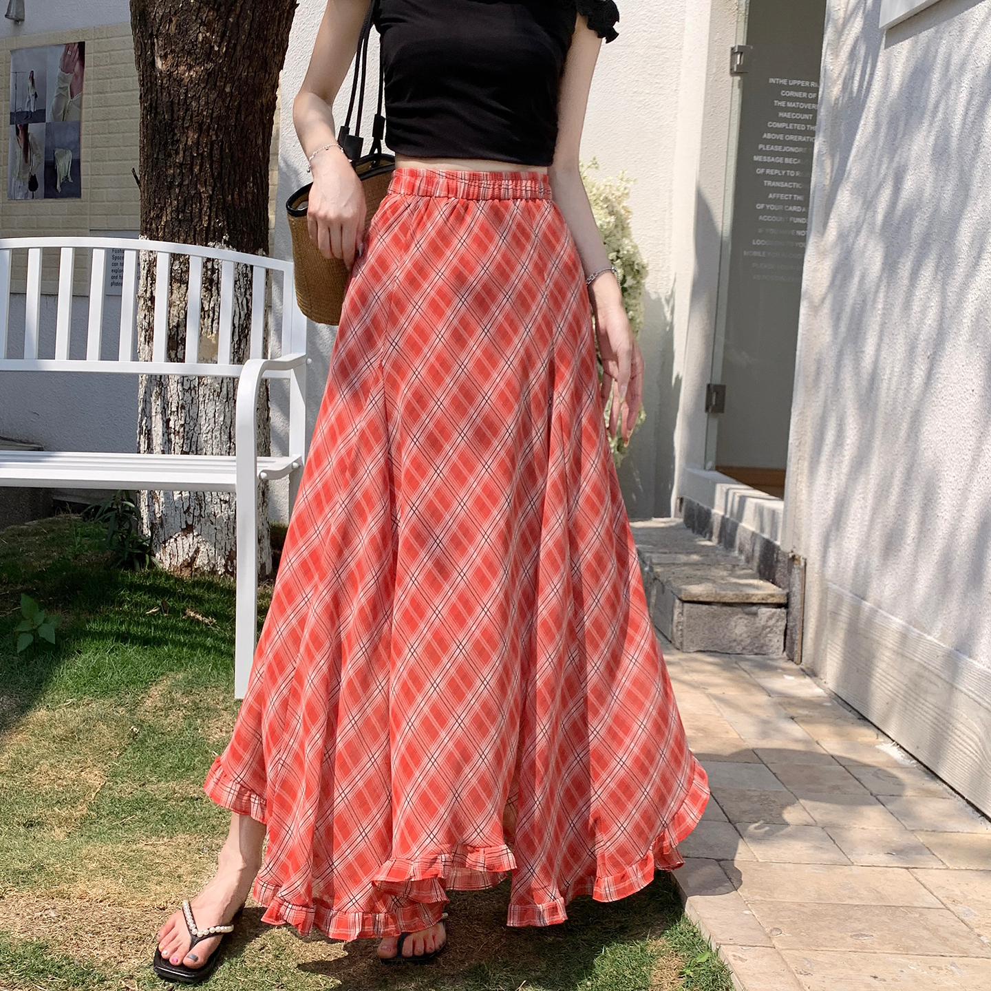 한 부서 프릴 주름 달콤함 반신 스커트 휴가 사진 찍기 롱 스커트 분위기 센스 봄 여름 부서 치마