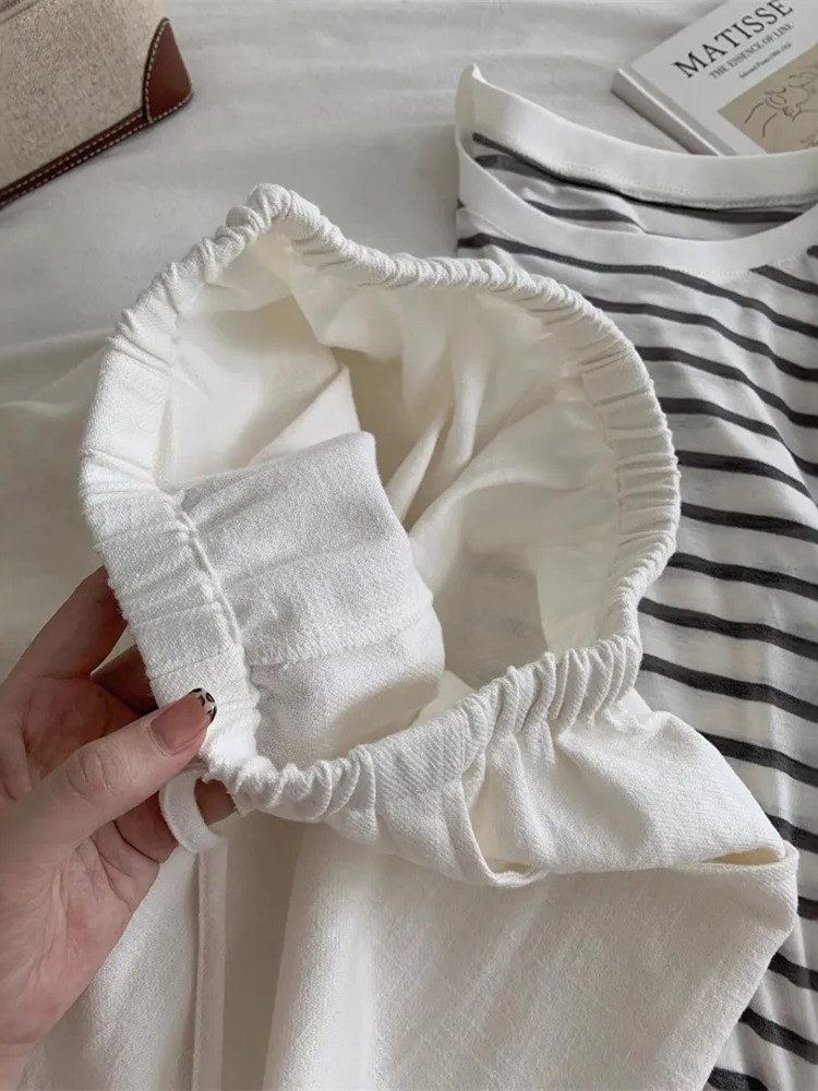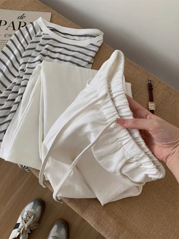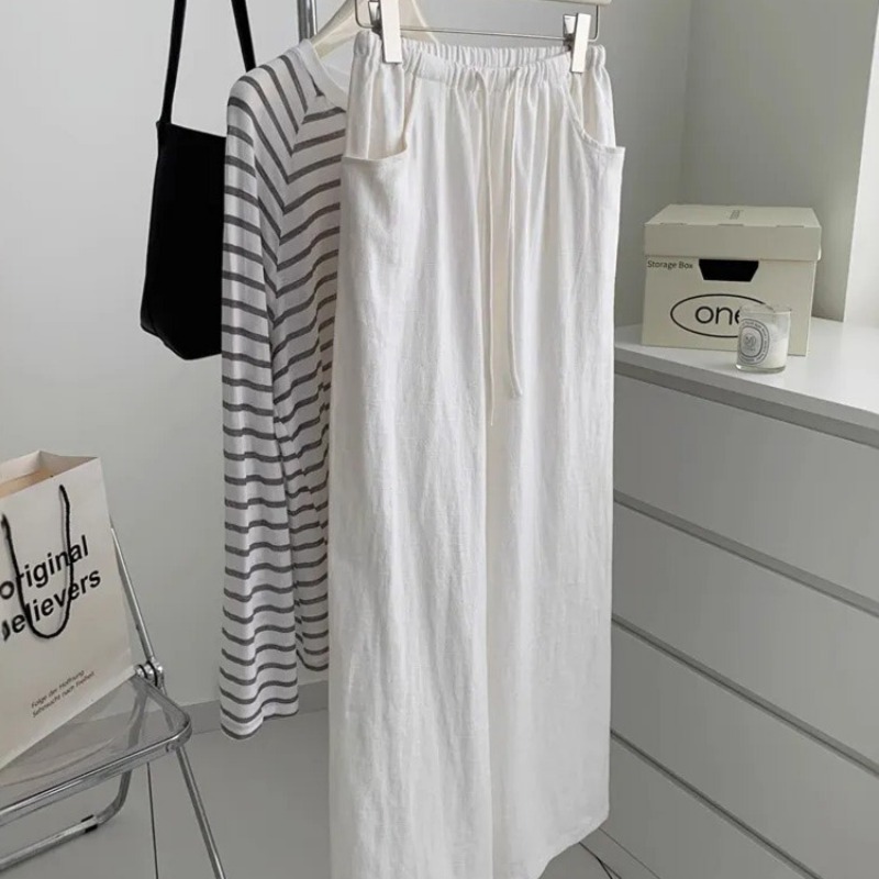 chao 수준 추천 화이트 넓은 다리 캐주얼 배럴 모양 바지 여성 얇은 스타일 펌프 로프 허리밴드 자외선 차단 바지 캐주얼 긴 바지