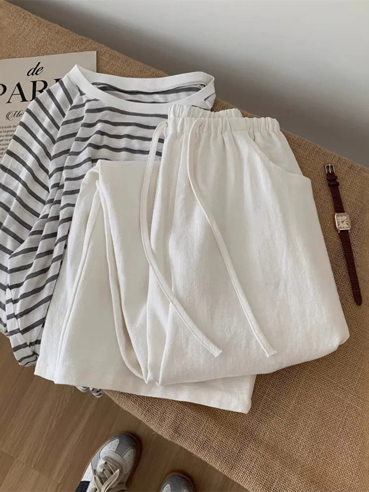 세트 염색 캐주얼 바지 다용도 스트라이프 스트레이트 루즈핏 한 부서 긴 바지 26 봄