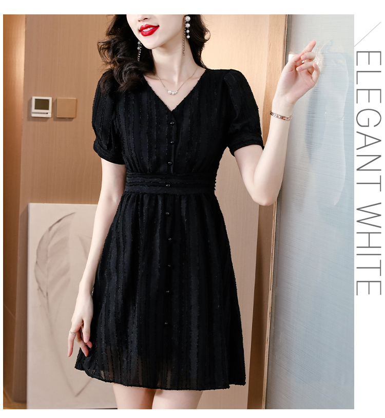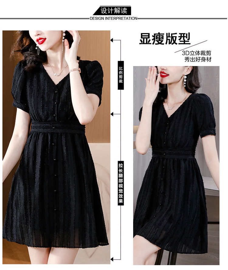 실사 2026 여름 새로운 여성 드레스 디자인 센스 허리 수축 슬림해 보이는 V넥 반팔 차 휴식 중 롱 스커트 여성