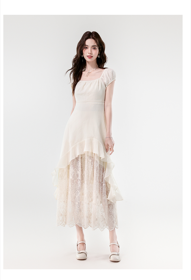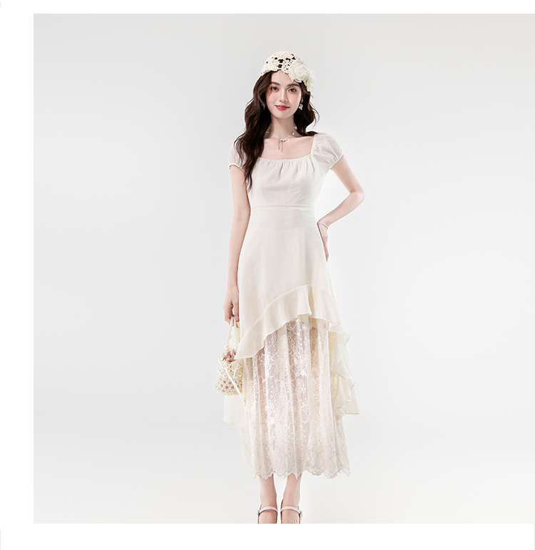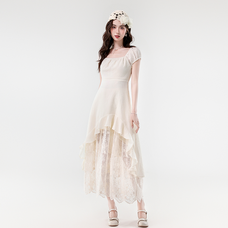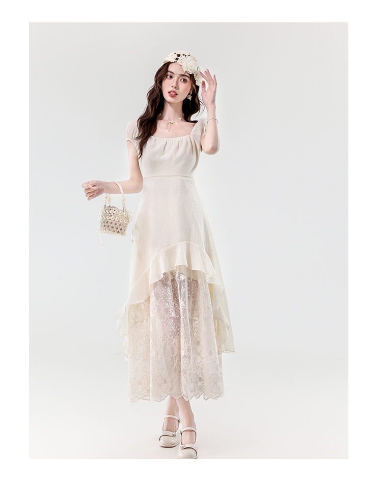 실사 2026 새로운 프랑스식 휴가 바람 레이스 자수 불규칙 디자인 센스 허리 수축 슬림해 보이는 롱 코트 드레스