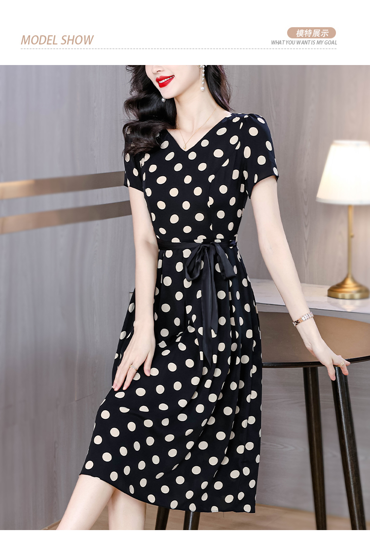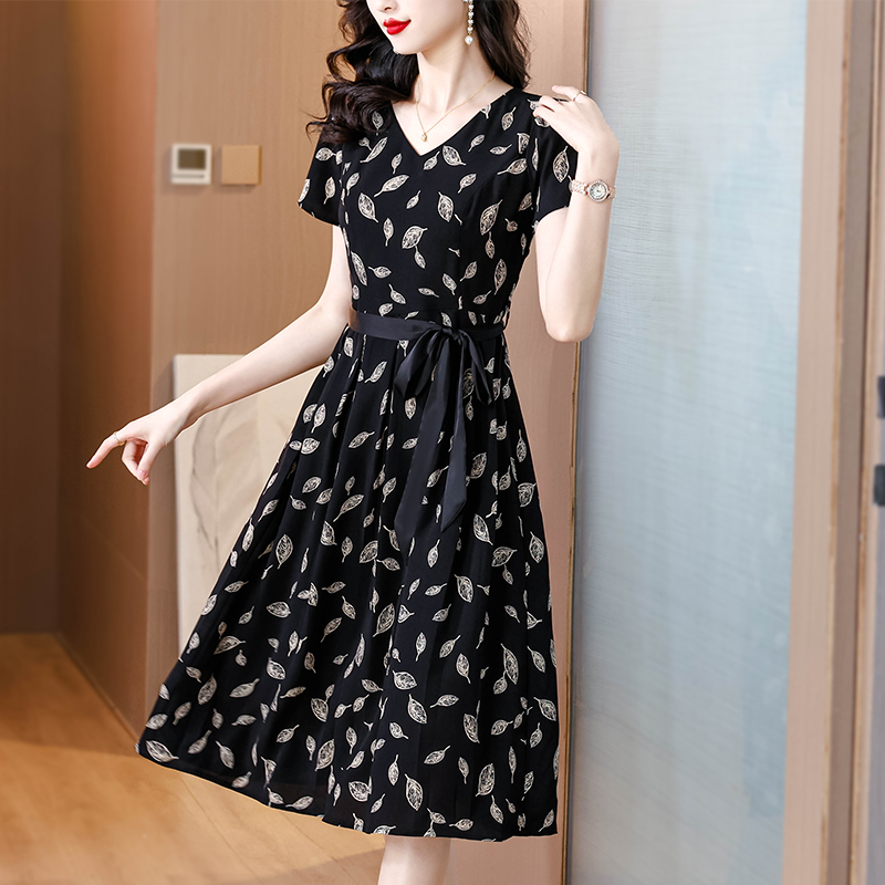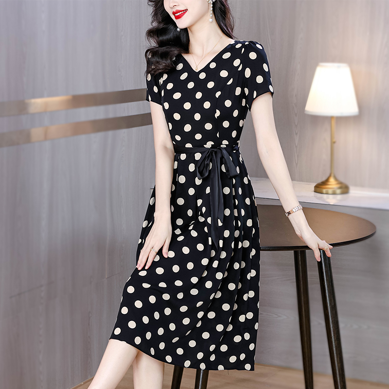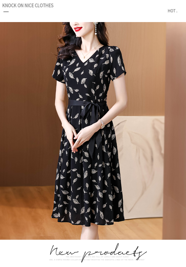 실사 2026 새로운 높음 제직 고밀도 조 그것의 실크 얼음 실크 도루 센스 프로 피부 벨트 연령 감소 슬림해 보이는 반팔 드레스