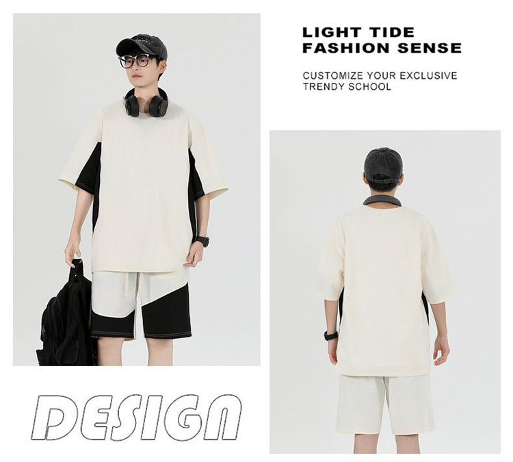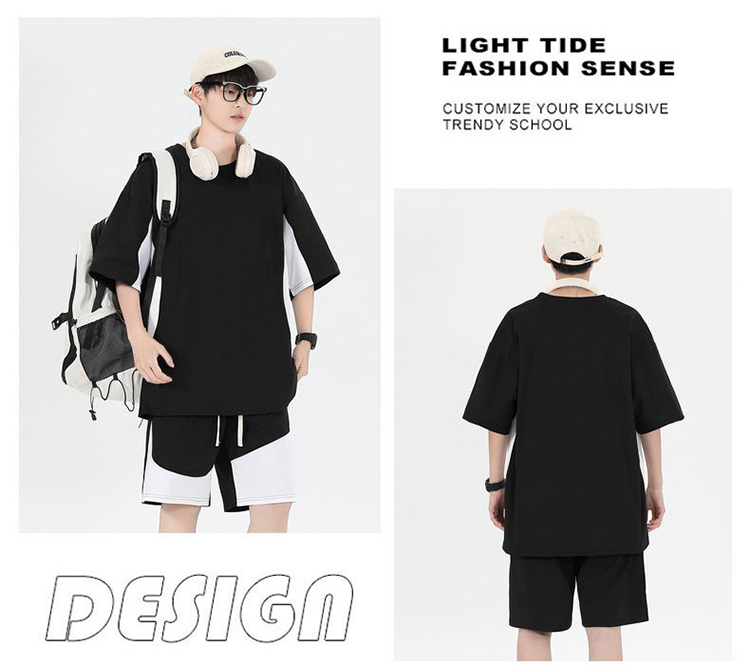 새로운 캐주얼 스포츠 슈트 남자 여름 조수 브랜드 청소년 중학교 고등학생 여름 반팔 반바지