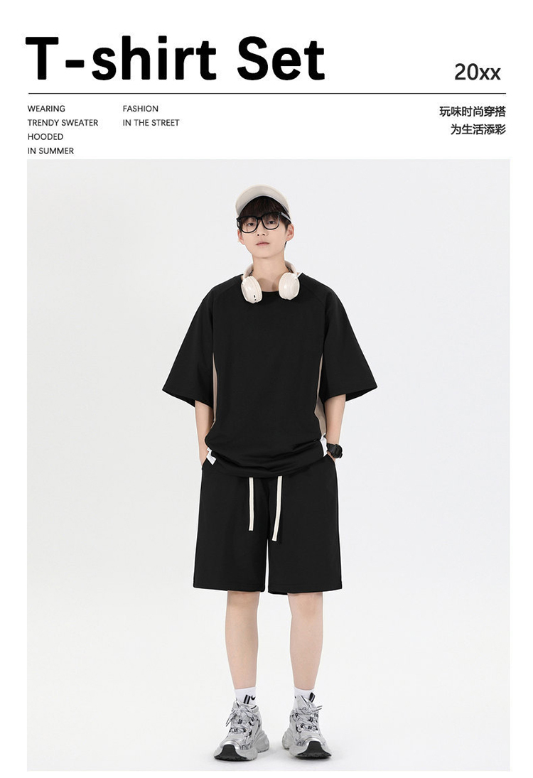 여름 캐주얼 스포츠 슈트 남자 트렌드 청소년 반팔 반바지 중학교 고등학생 여름 잘 생긴 남성 의류