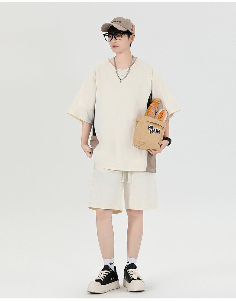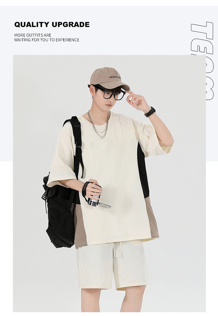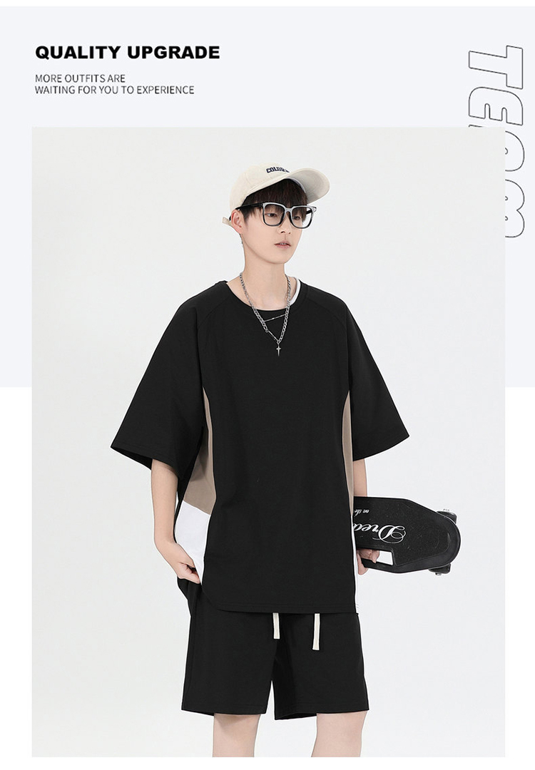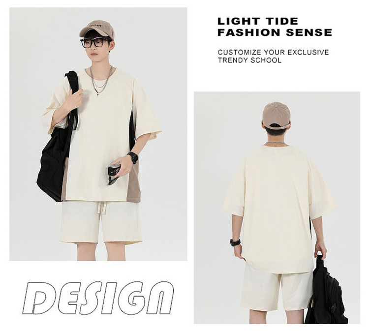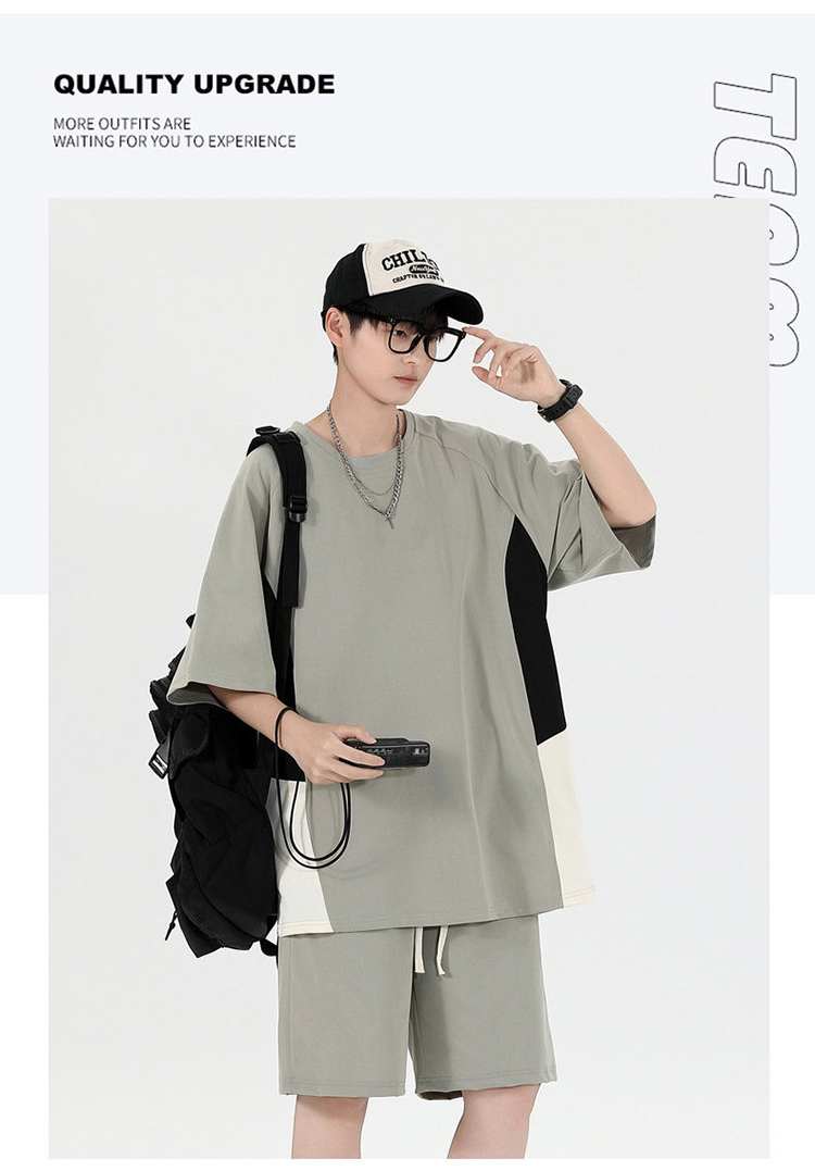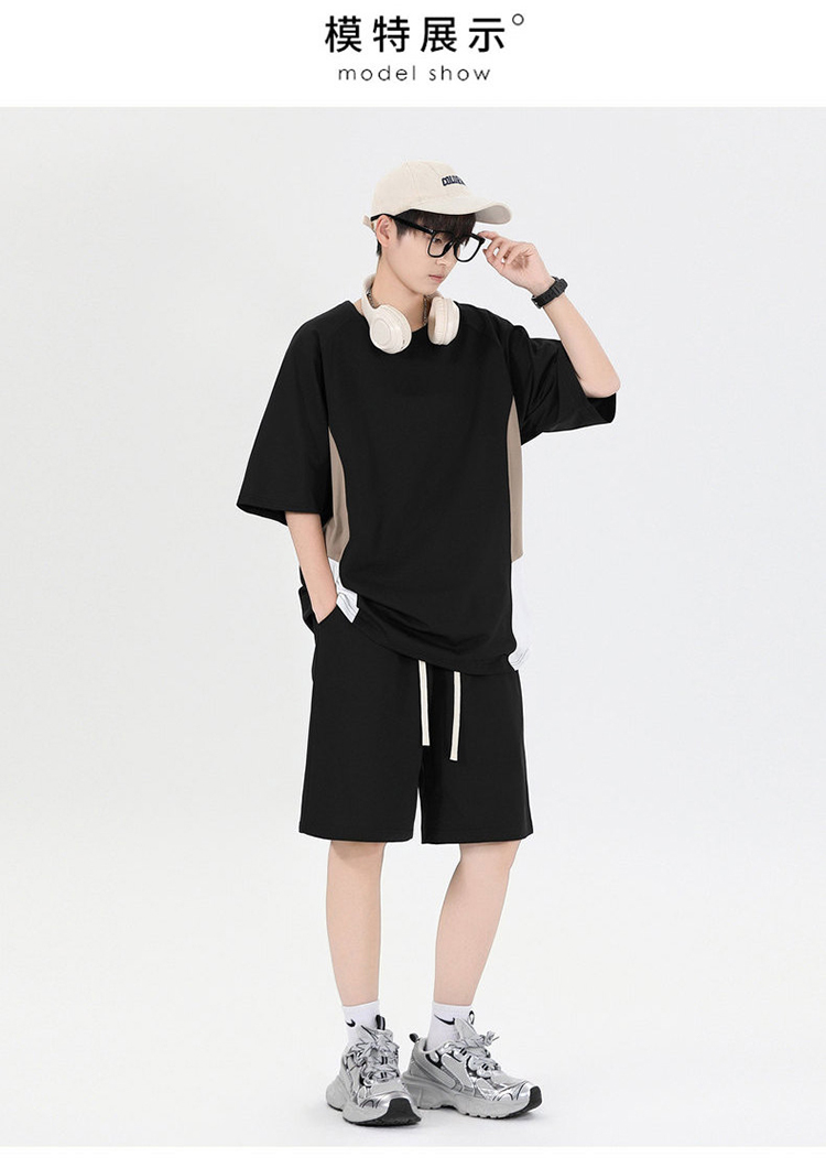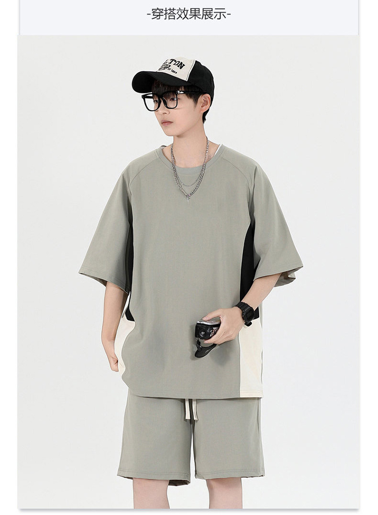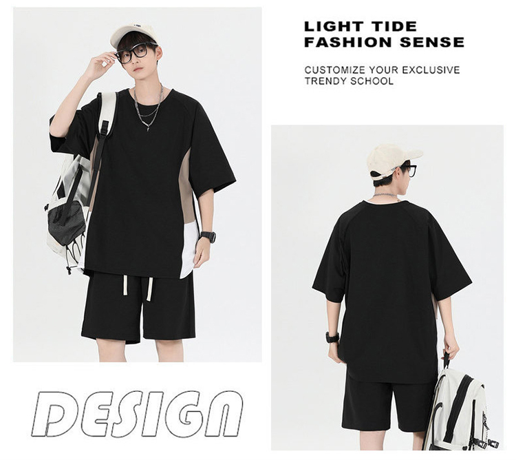 새로운 여름 패치워크 색상 캐주얼 스포츠 슈트 남자 청소년 조수 브랜드 악당 잘 생긴 반팔 반바지 세트