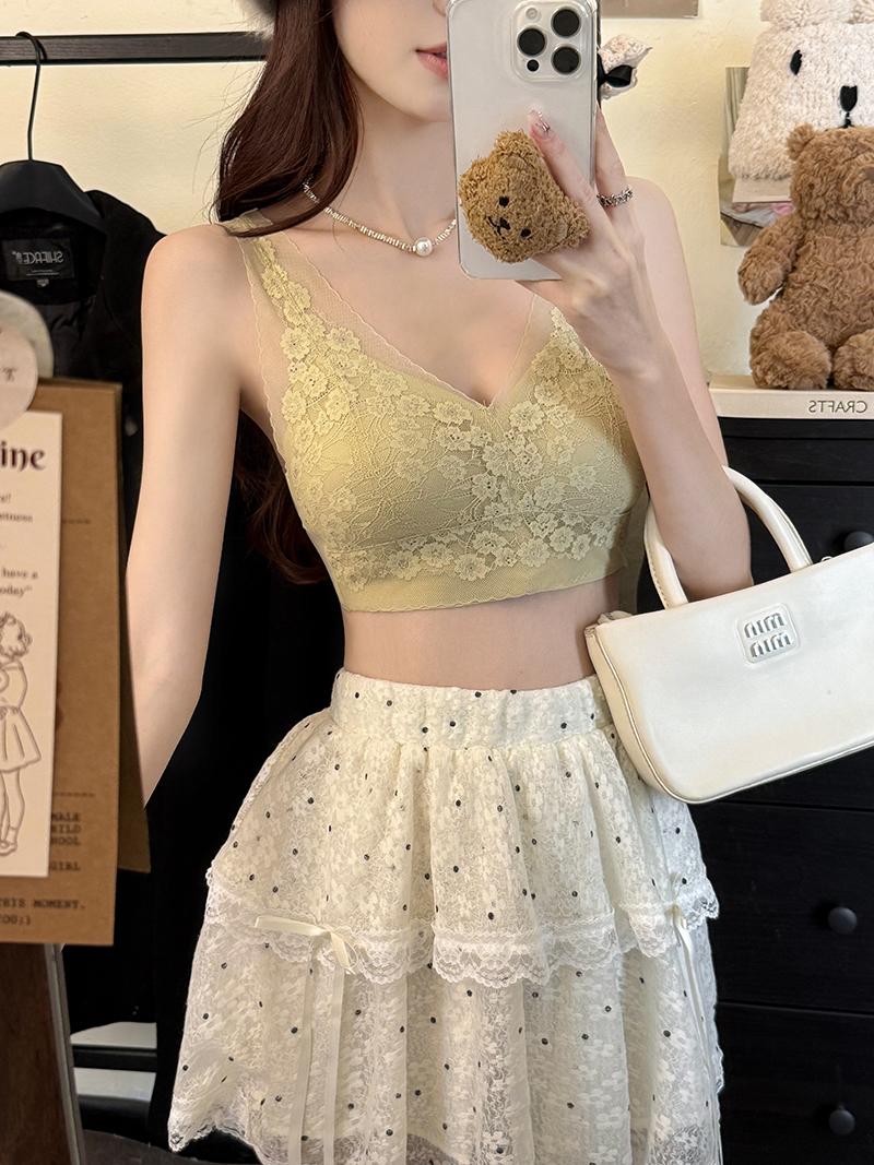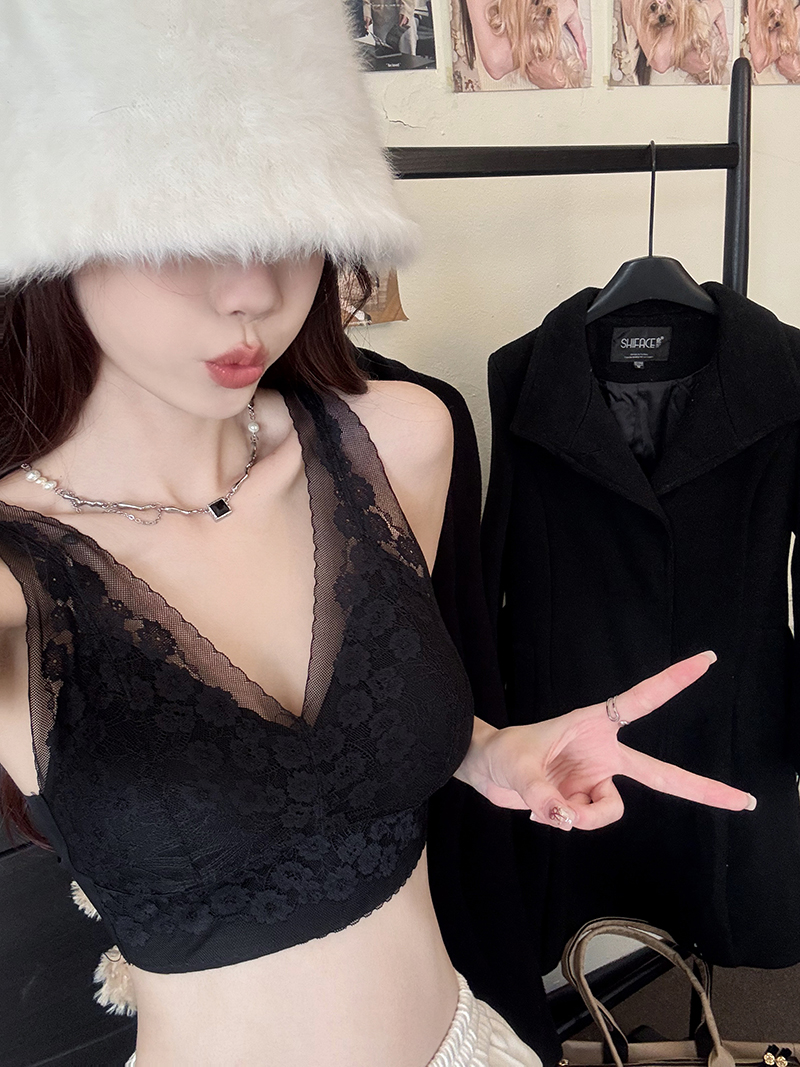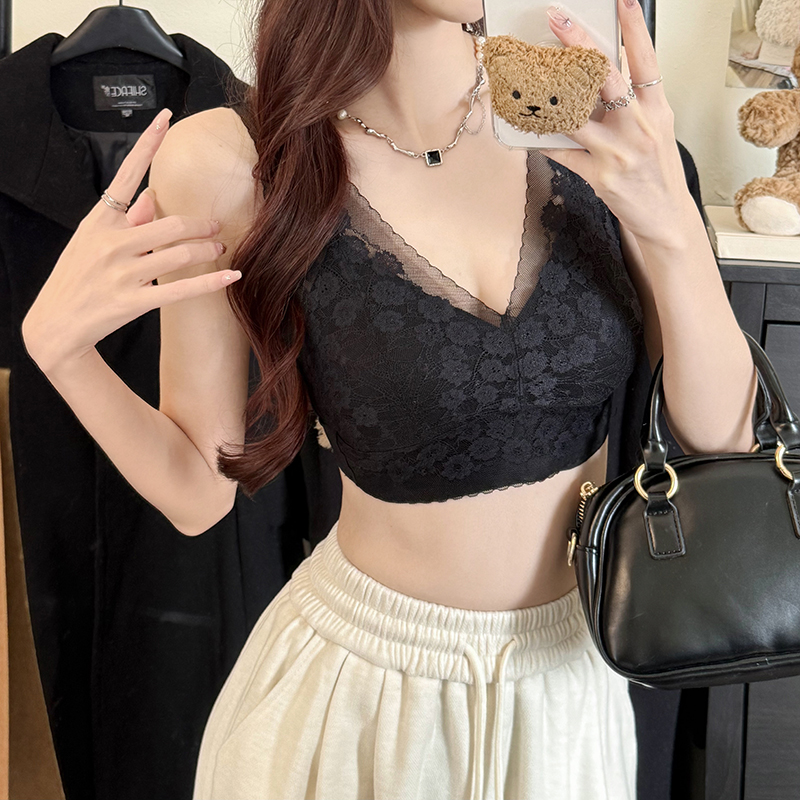 실사 프랑스식 레이스 튜브탑 캐미솔 인사이드 가져 가라. 기본 셔츠 섹시함 속옷 브래지어 작은 슬링