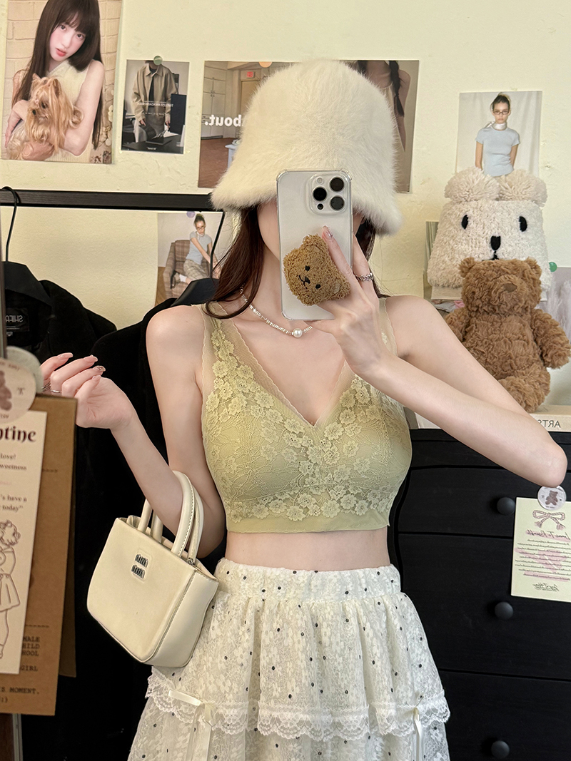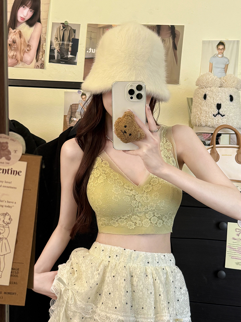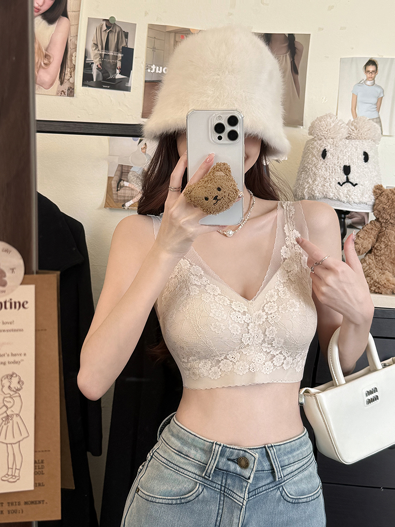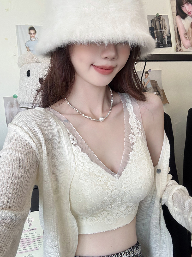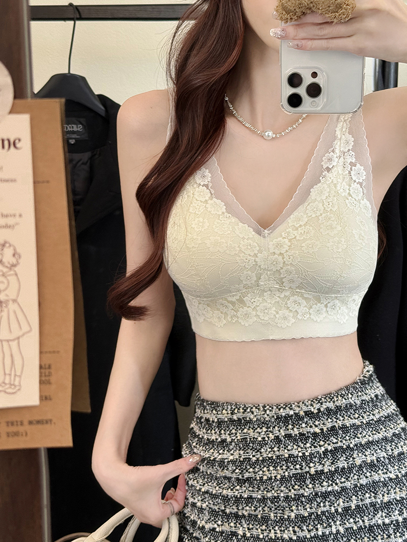 실사 프랑스식 빛 럭셔리 V넥 레이스 기본 셔츠 패션 인사이드 가져 가라. 캐미솔 속옷 섹시함 오프숄더 맨위