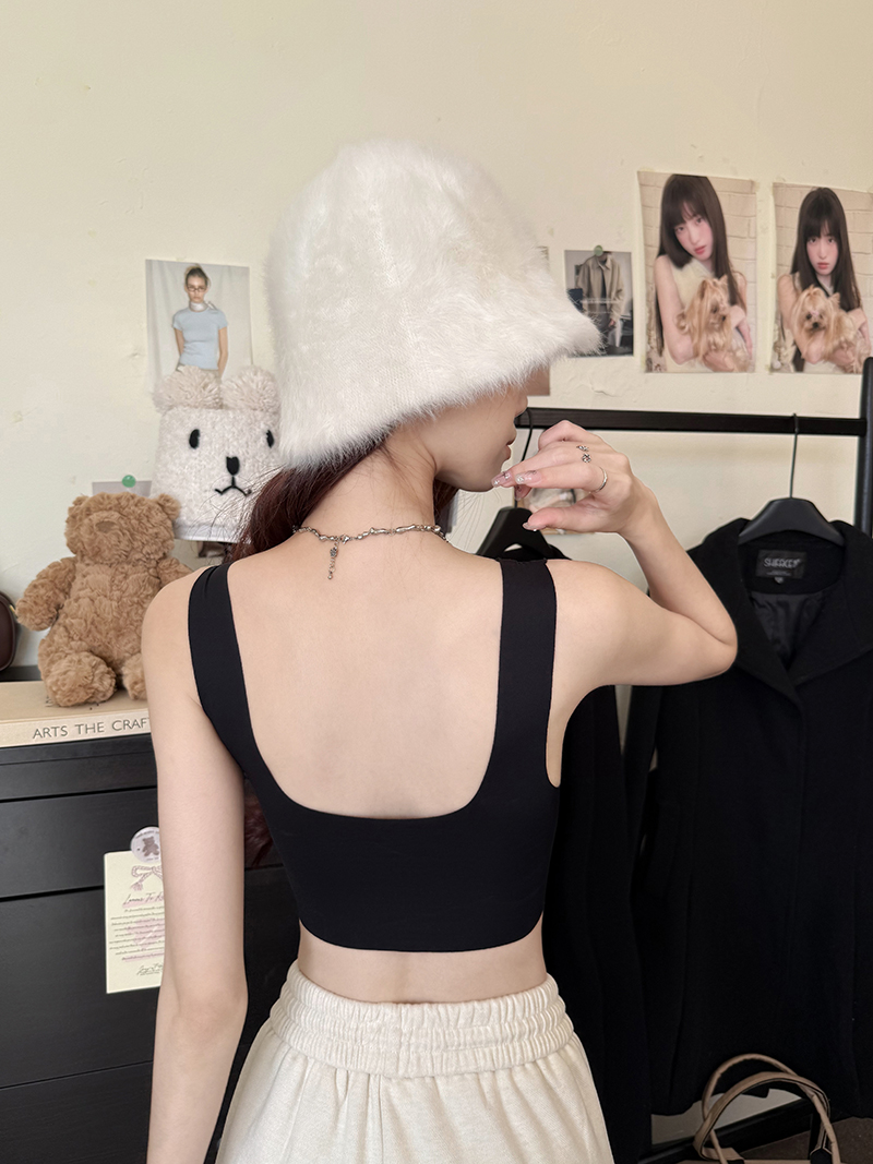 실사 리브 면 만나는 속옷 외출용 아름다움 뒤로 슬립 핫걸 순수한 욕망 바람 배색 알파벳 좋은 어깨끈 조끼