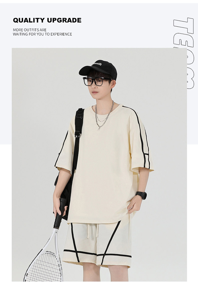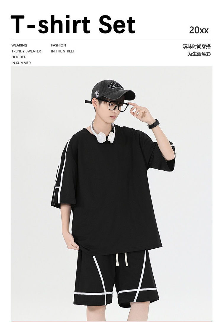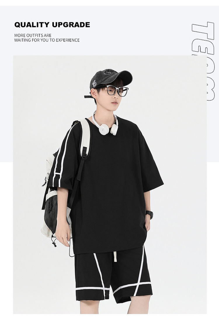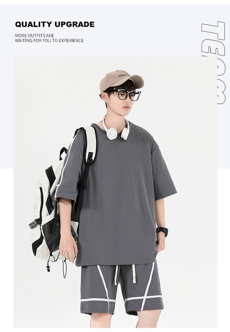 여름 캐주얼 스포츠 슈트 남자 트렌드 청소년 반팔 반바지 중학교 고등학생 여름 잘 생긴 남성 의류