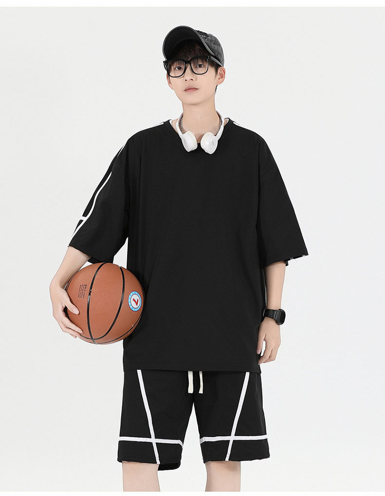 새로운 반팔 티셔츠 세트 남자 여름 얇은 스타일 중학교 농구 캐주얼 운동 반팔 반바지 남성 의류 세트