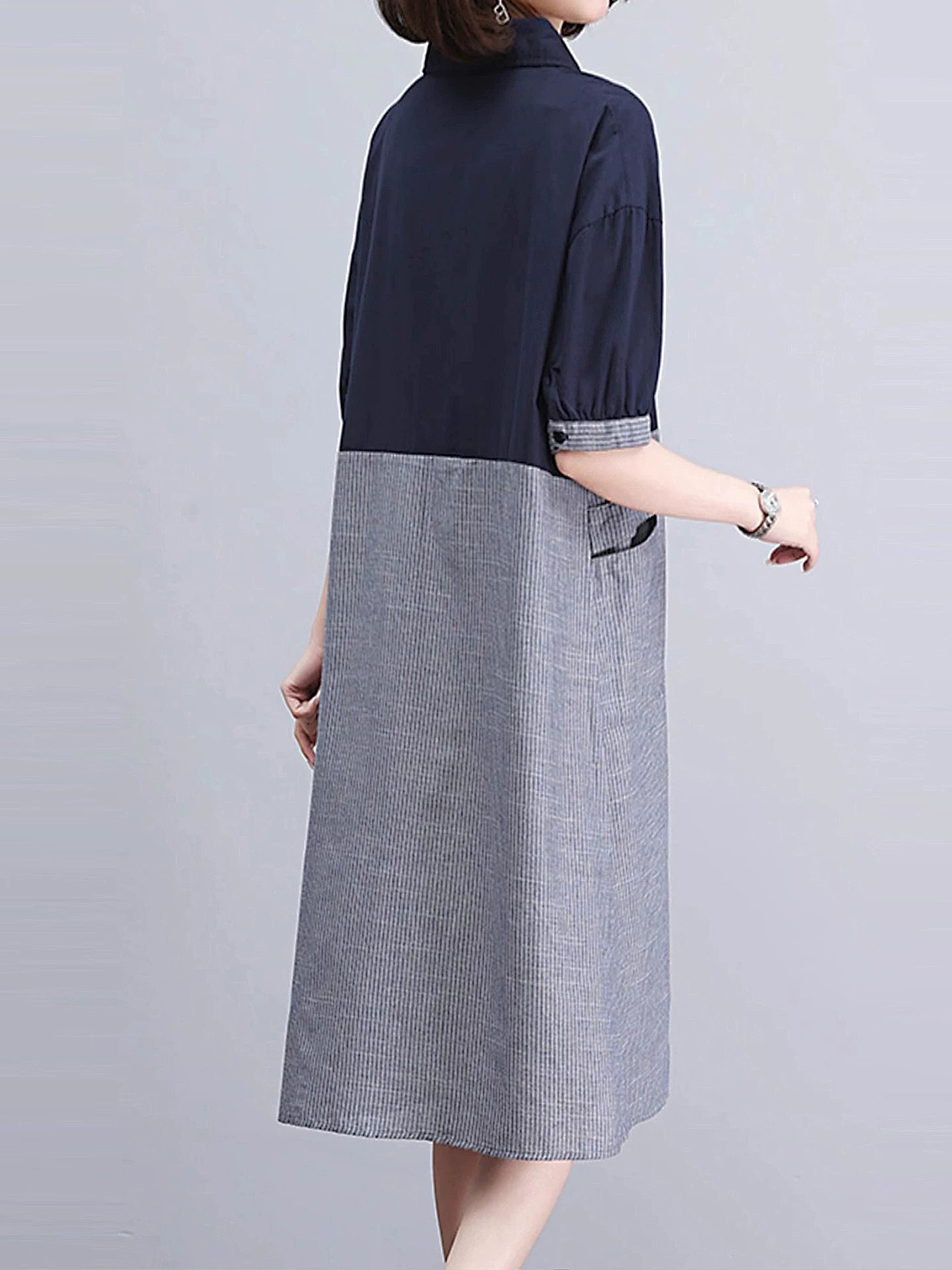 배색 스트라이프 순면 여성 드레스 여름 새로운 중년 엄마 루즈핏 표지 배 슬림해 보이는 연령 감소 셔츠 치마
