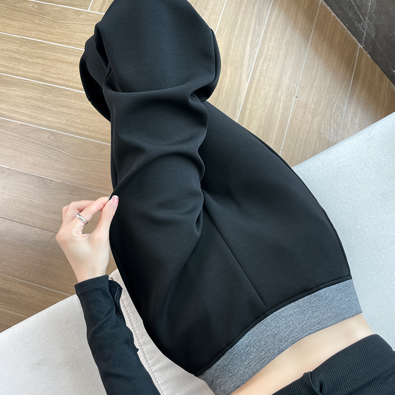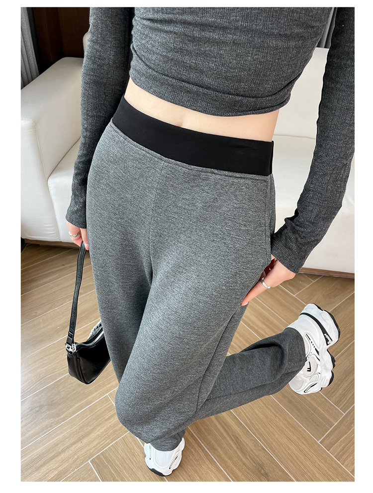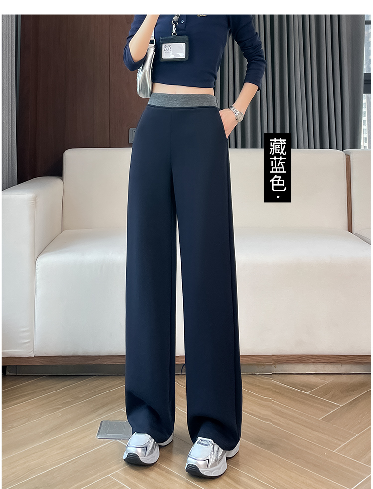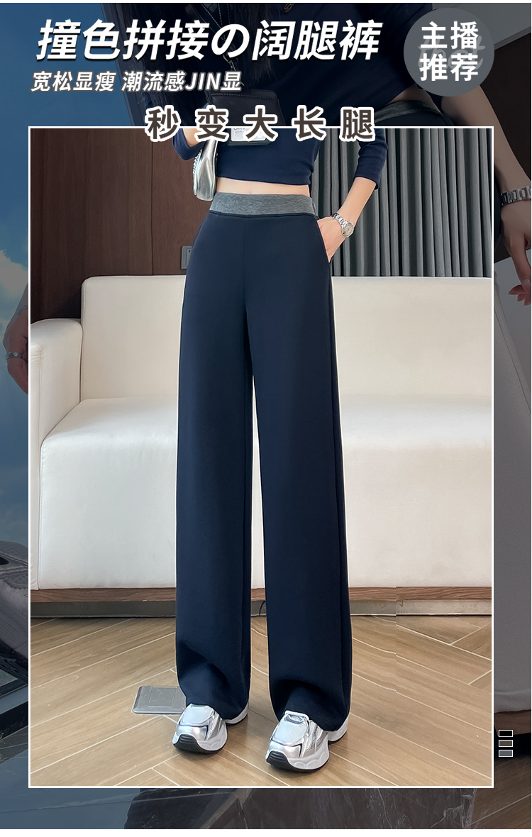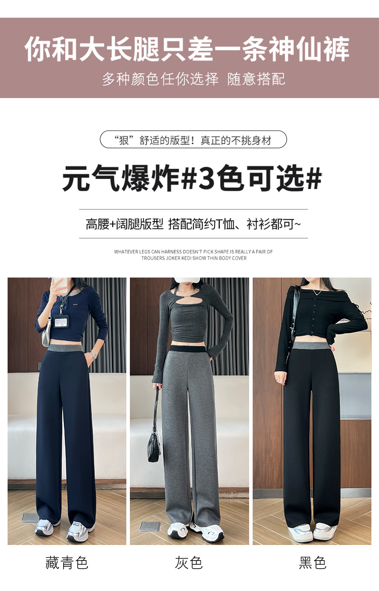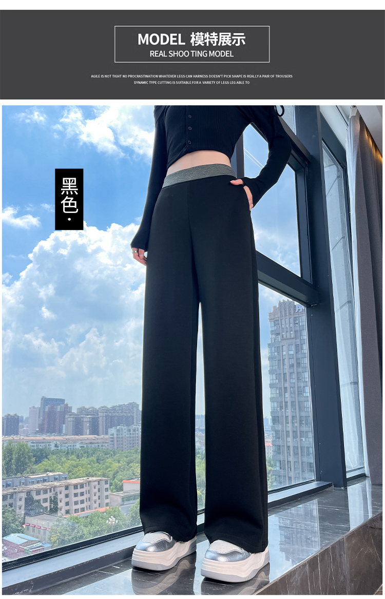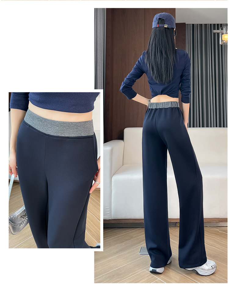 실사 2025 가을 겨울 털이 있는 공기 알몸의 센스 패치워크 와이드 레깅스 바지 가을 다용도 루즈핏 스트레이트 팬츠 긴 바지