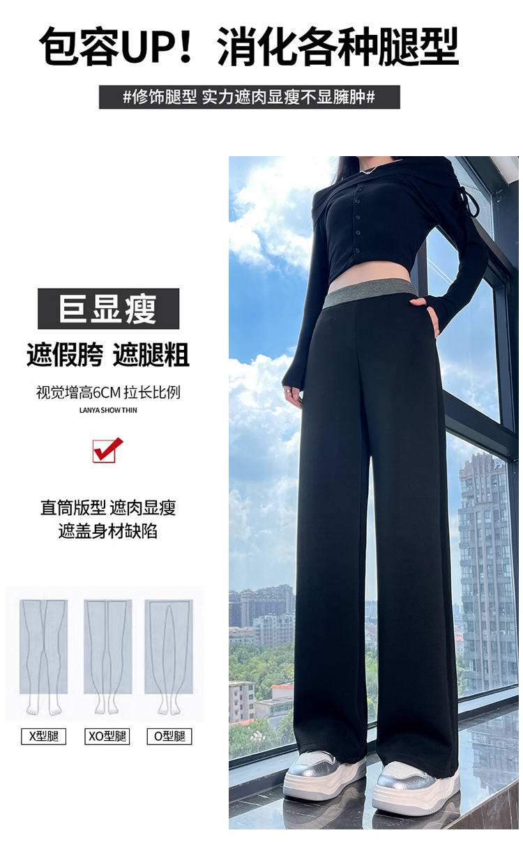 실사 배 종류 몸 검정색 넓은 다리 정장 바지 여성 2025 여름 새로운 루즈핏 슬림해 보이는 고급 센스 캐주얼 바지