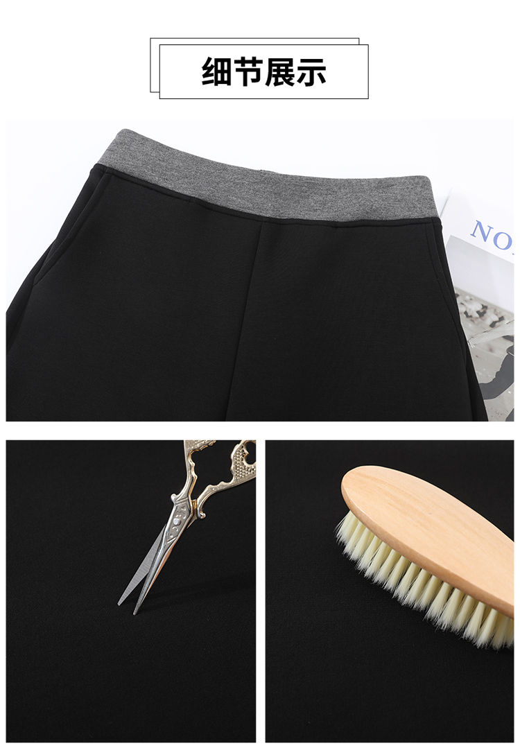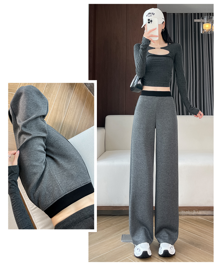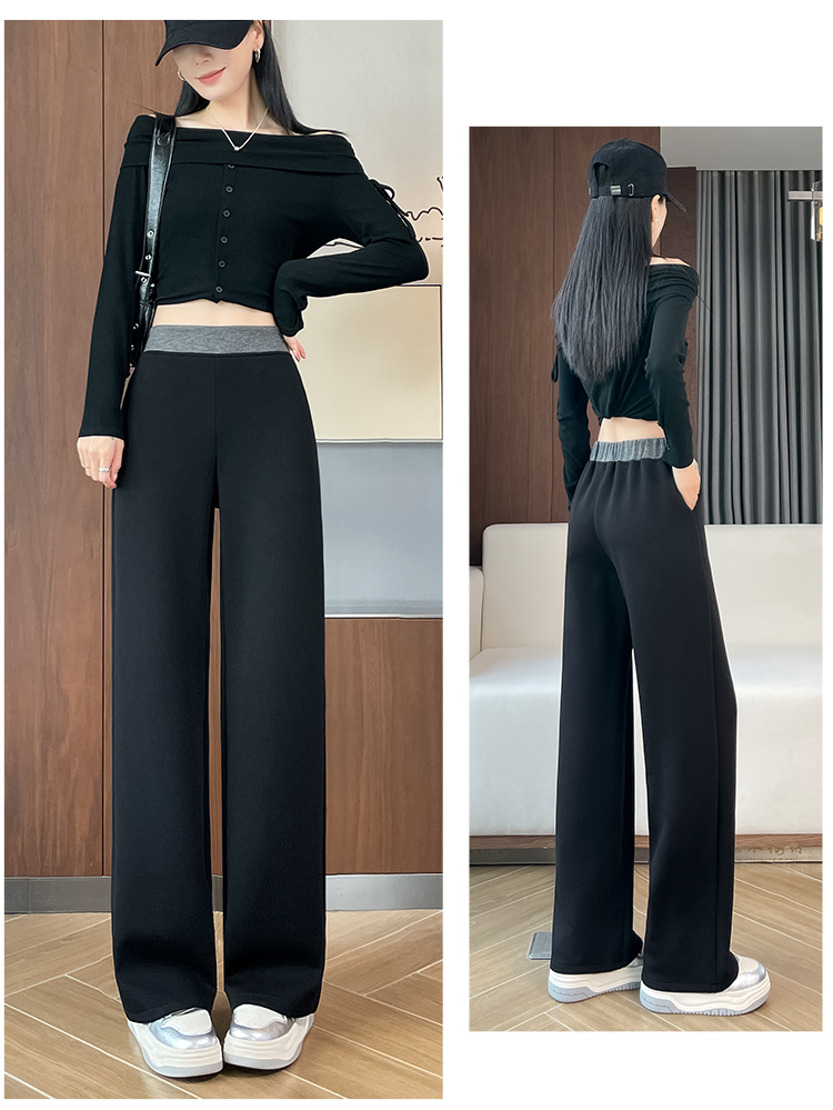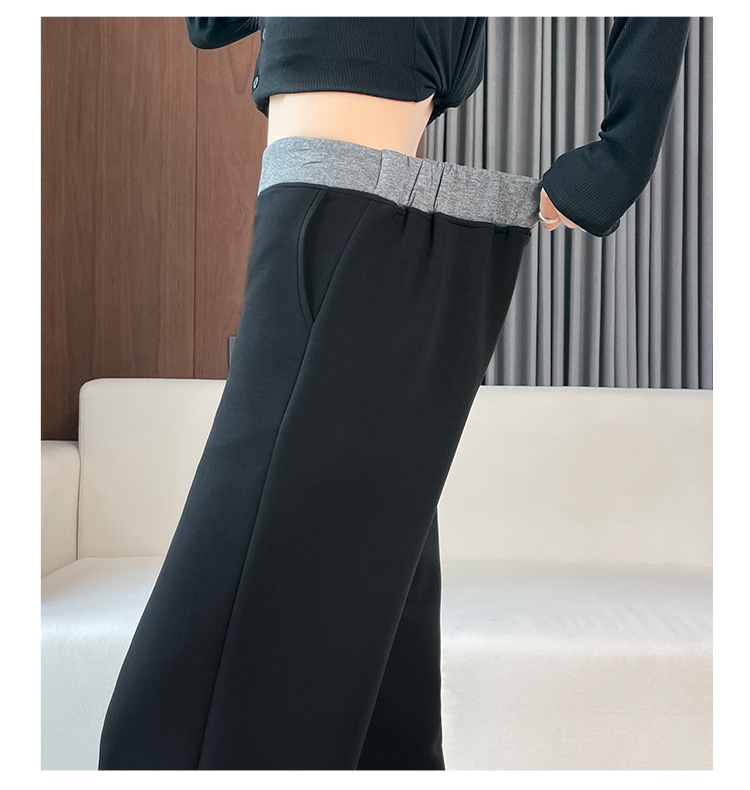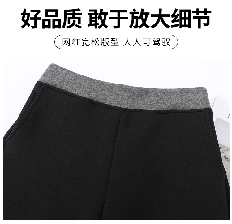 검정색 프릴 캐주얼 바지 여성 가을 겨울 털이 있고 두꺼운 작은 키 와이드 레그 팬츠 하이웨이스트 루즈핏 벽오동 바지