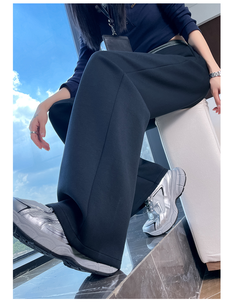실사 2025 새로운 검정색 좁은 에디션 스트레이트 팬츠 여성 봄 가을 도루 센스 경력 하이웨이스트 슬림해 보이는 캐주얼 정장 바지