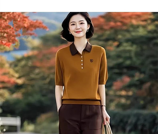 2026 새로운 배색 폴로 칼라 반팔 티셔츠 여성 여름 빛 럭셔리 작은 대중 Chic 슬림해 보이는 POLO 칼라 니트 맨위