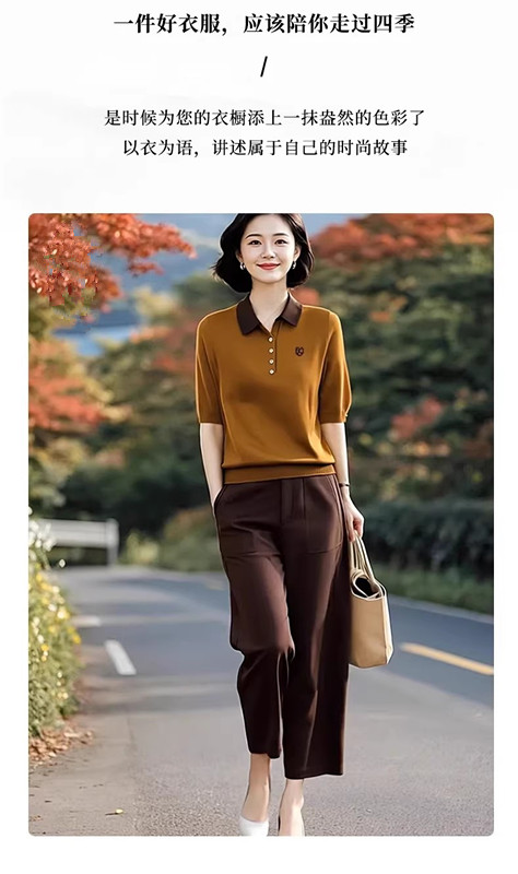 2026 새로운 다용도 패션 폴로 칼라 반팔 니트 스웨터 캐주얼 바지 투피스 세트 봄
