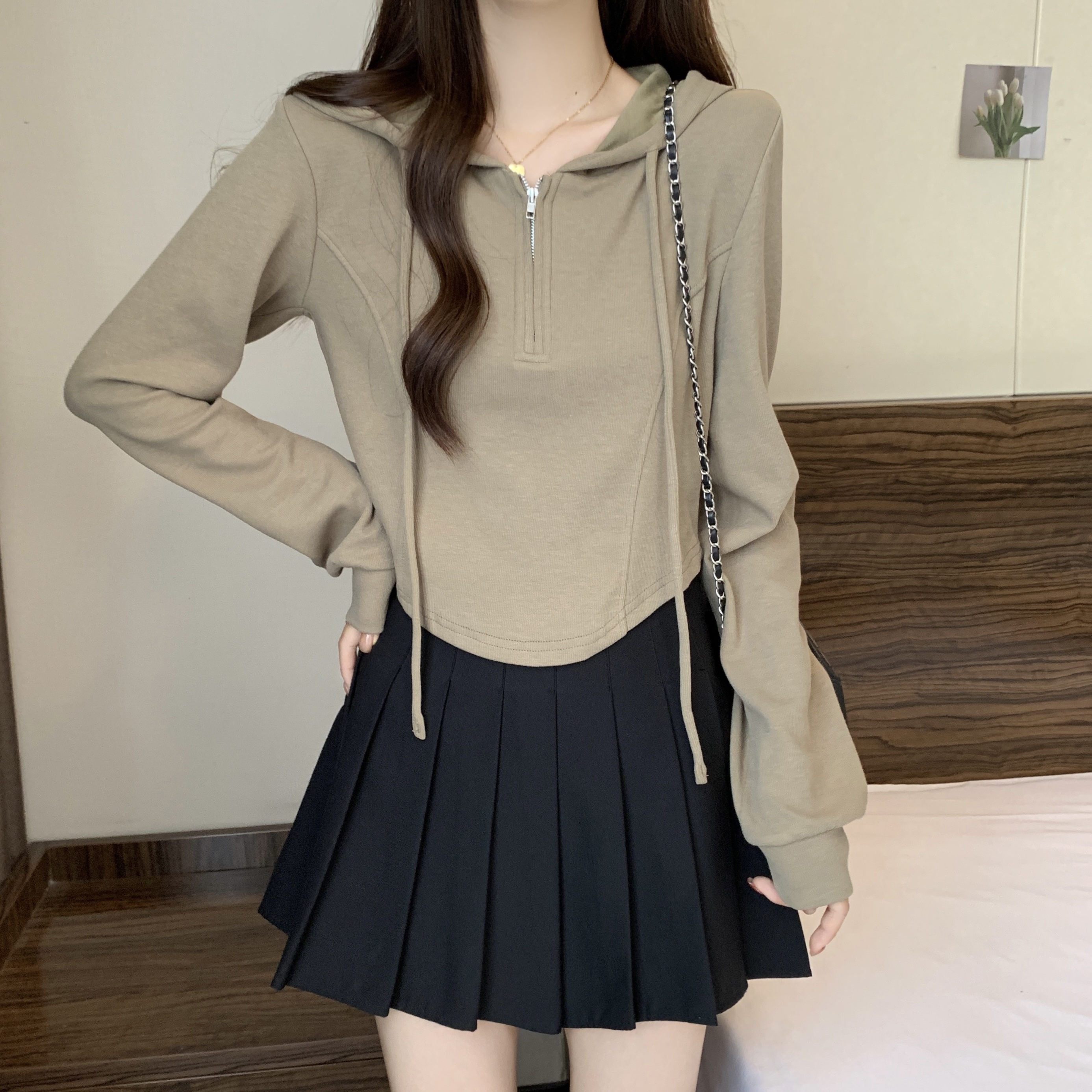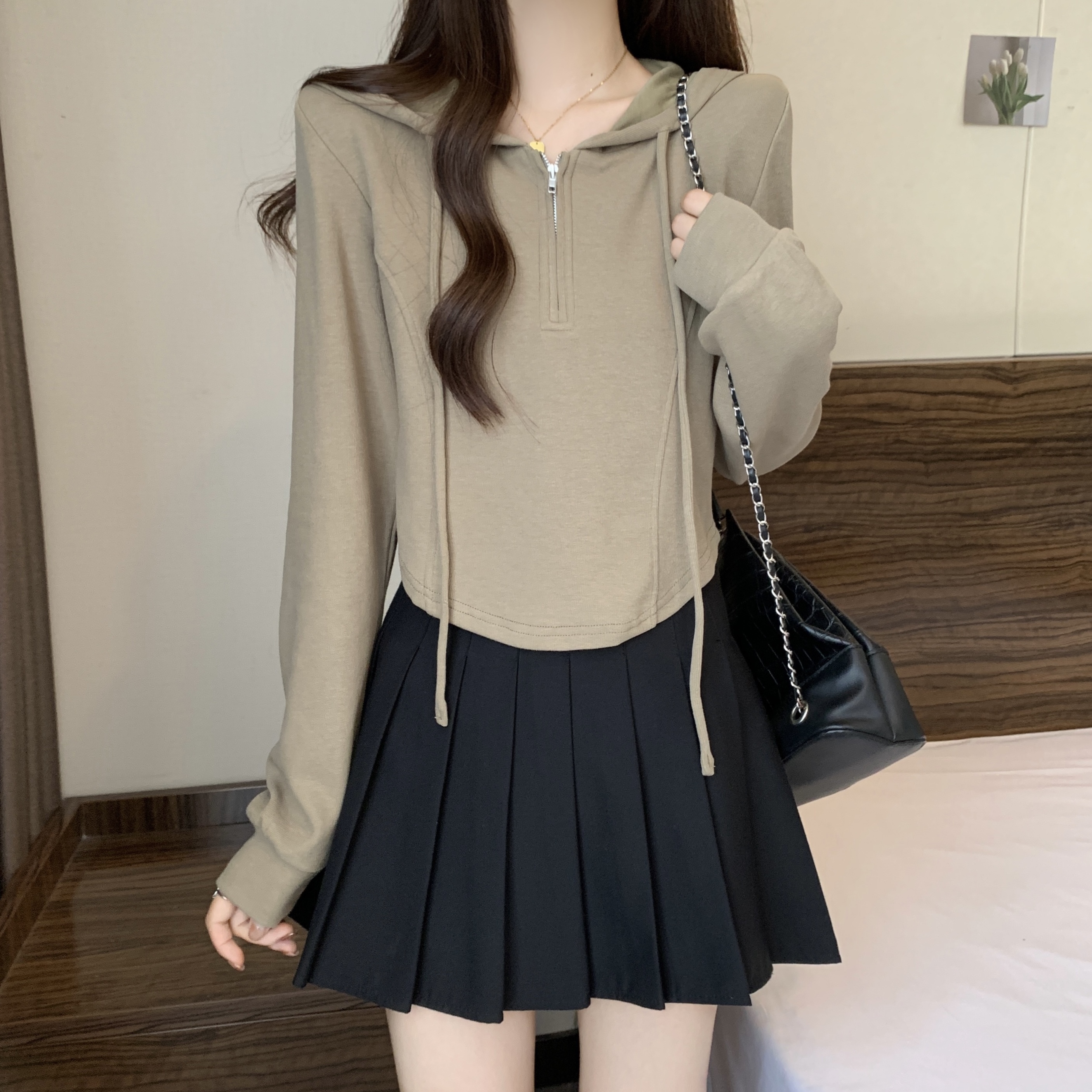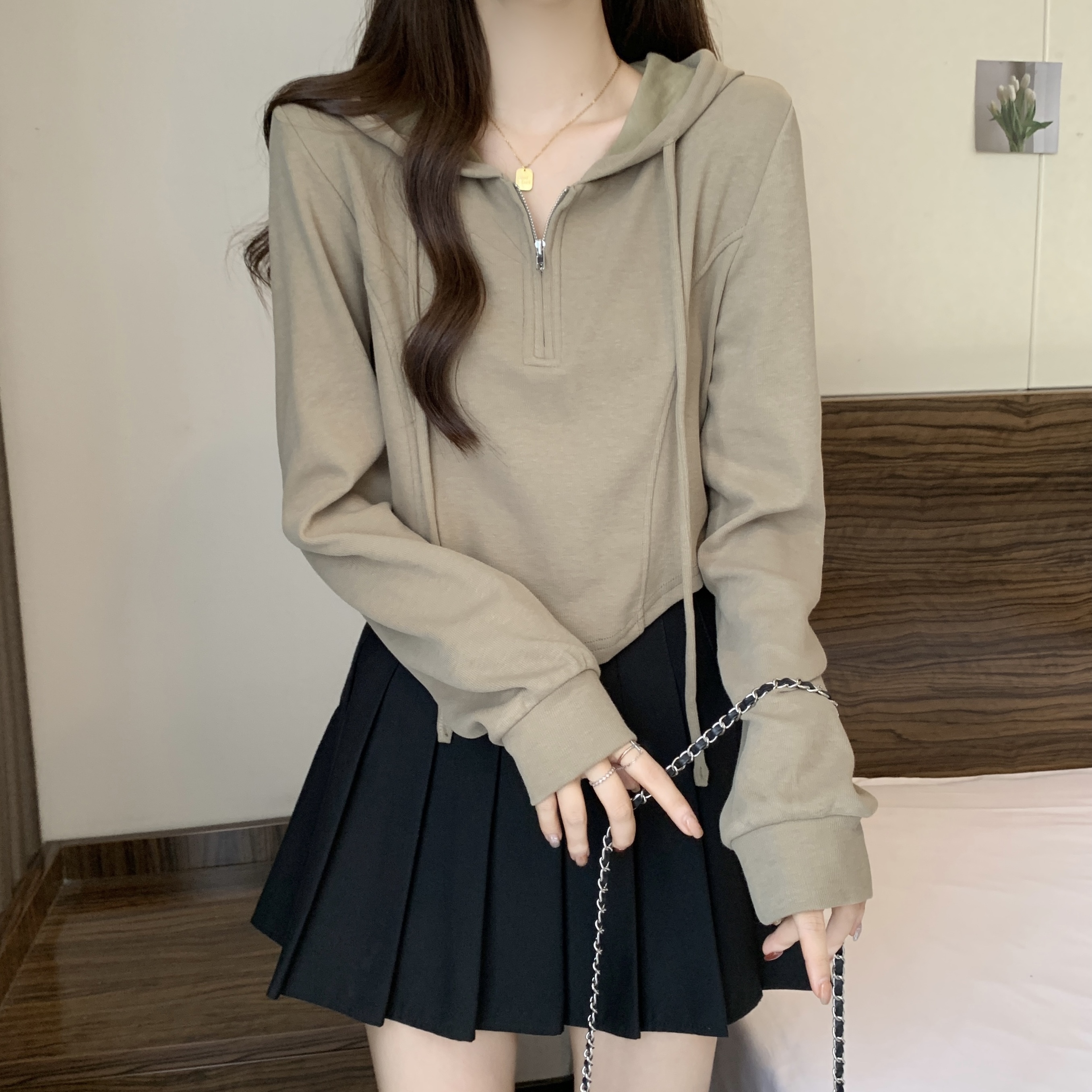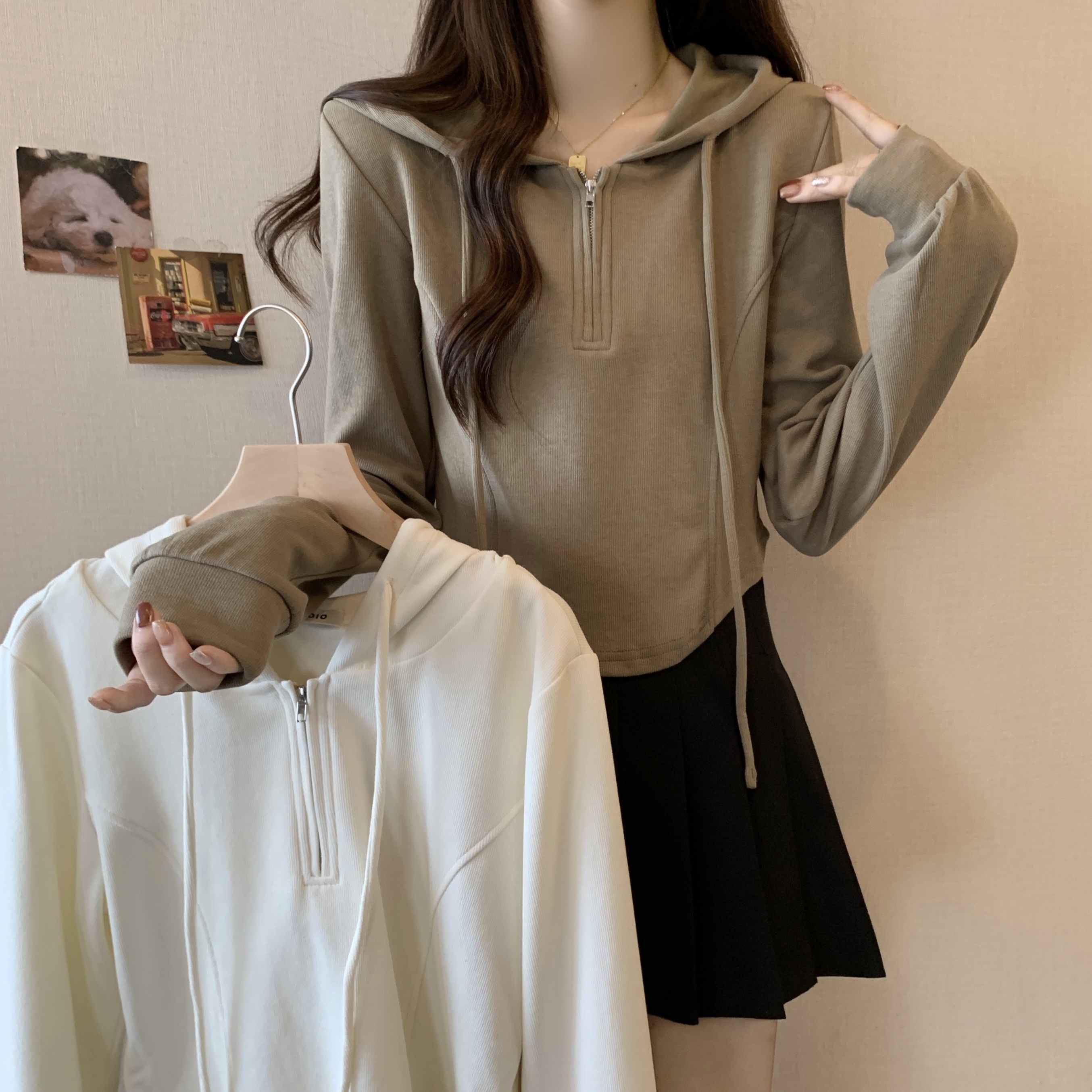 실사 2026 여름 새로운 품격 지퍼 쇼트 스타일 맨위 디자인 센스 작은 대중 외국 가스 루즈핏 반팔 티셔츠 여성