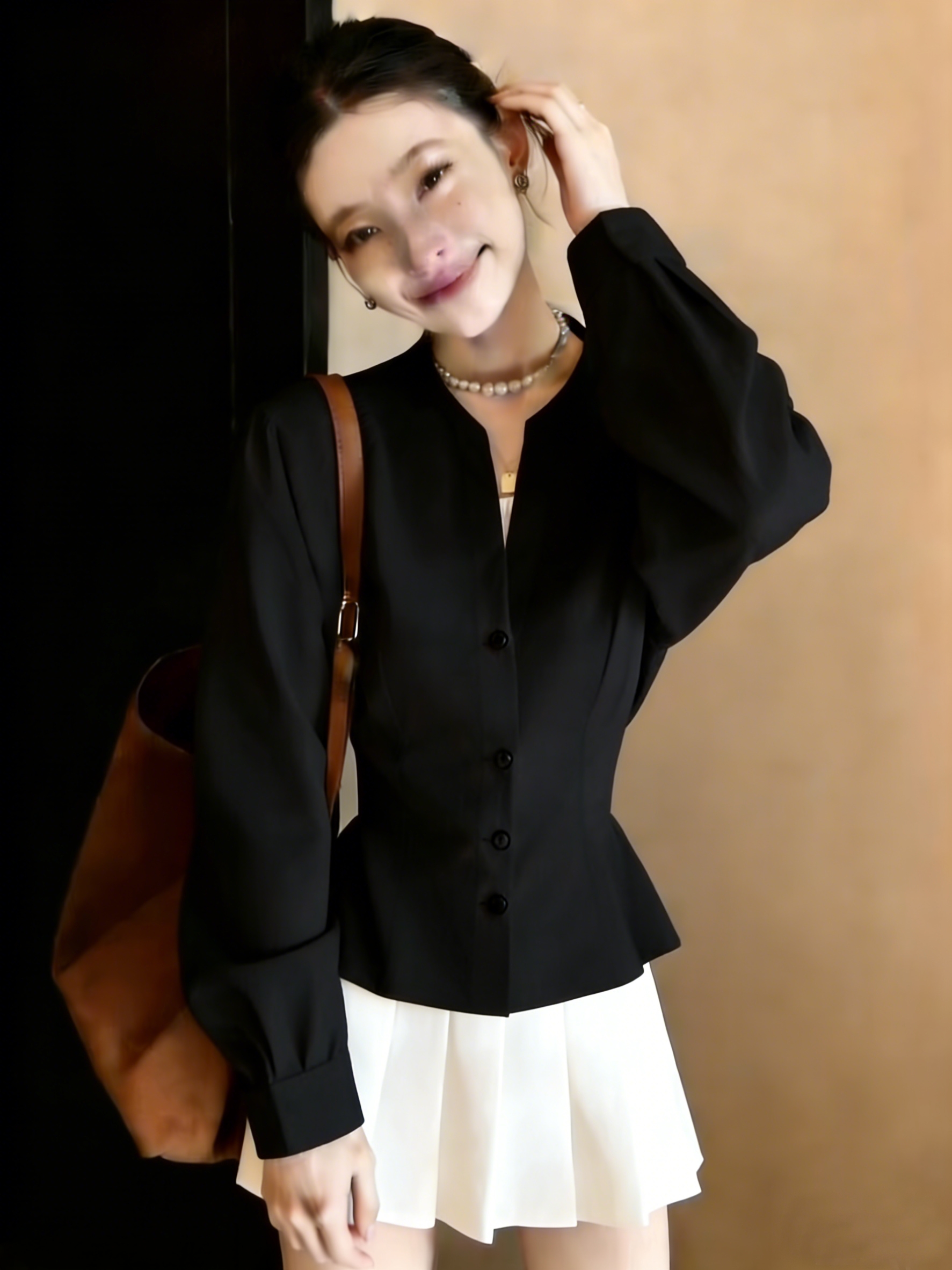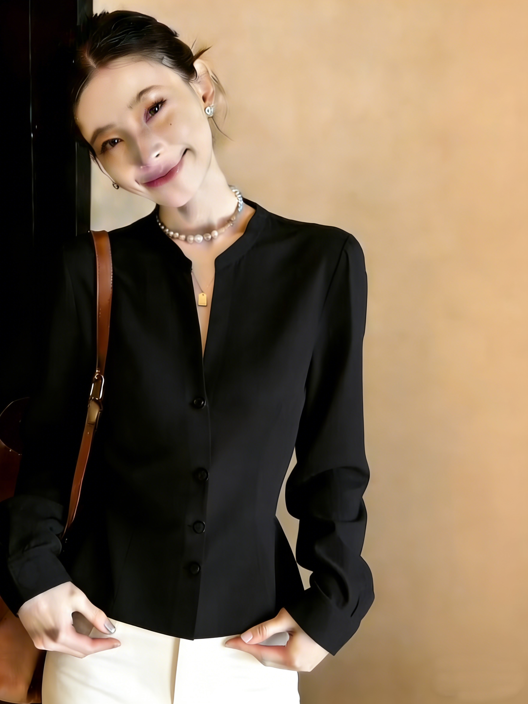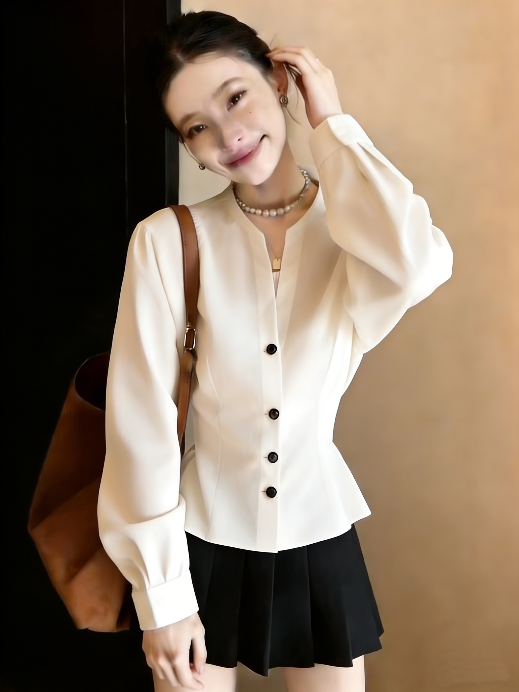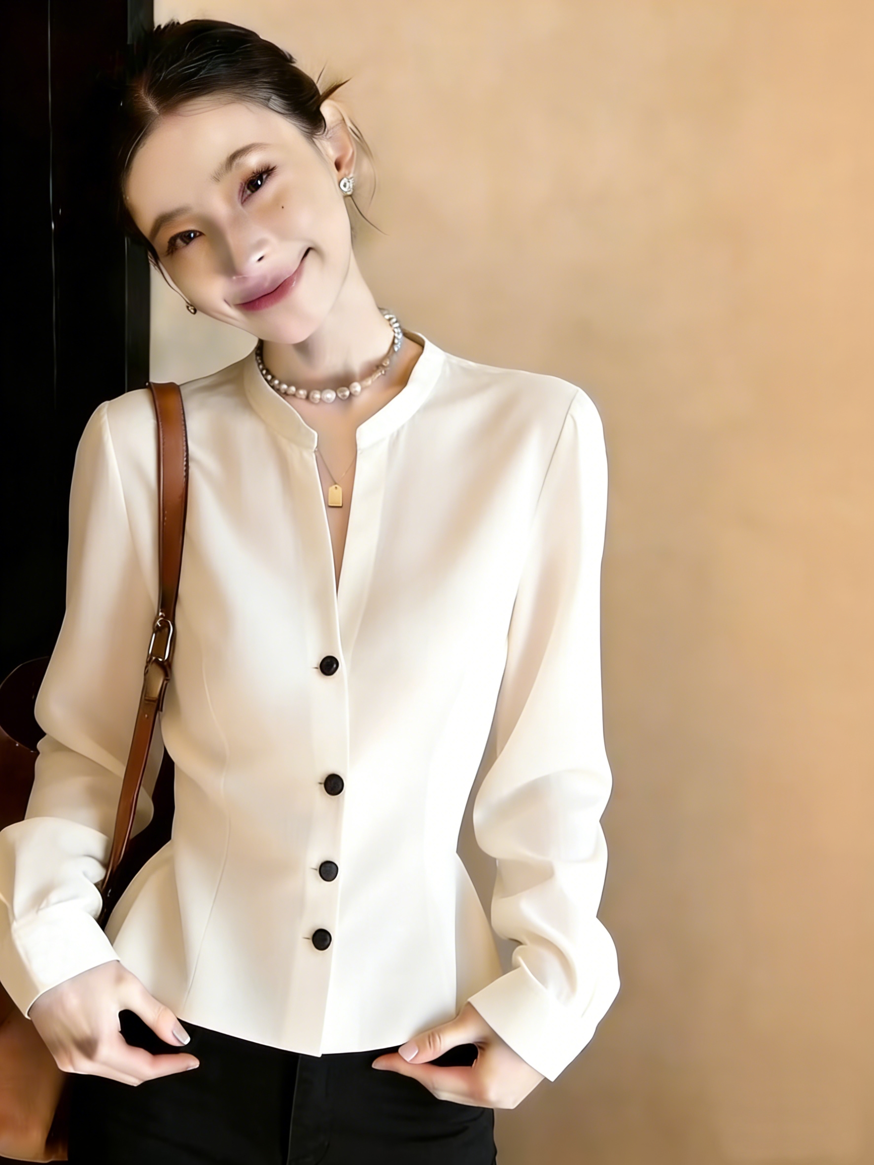 실사 긴팔 패치워크 디자인 센스 작은 대중 품격 여성 셔츠 2026 봄 새로운 셔츠 맨위