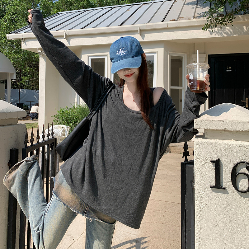 빅 사이즈 여성 의류 달콤함 보트넥 빅 사이즈 셔츠 빅 사이즈 한국 스타일 슬림해 보이는 맨위