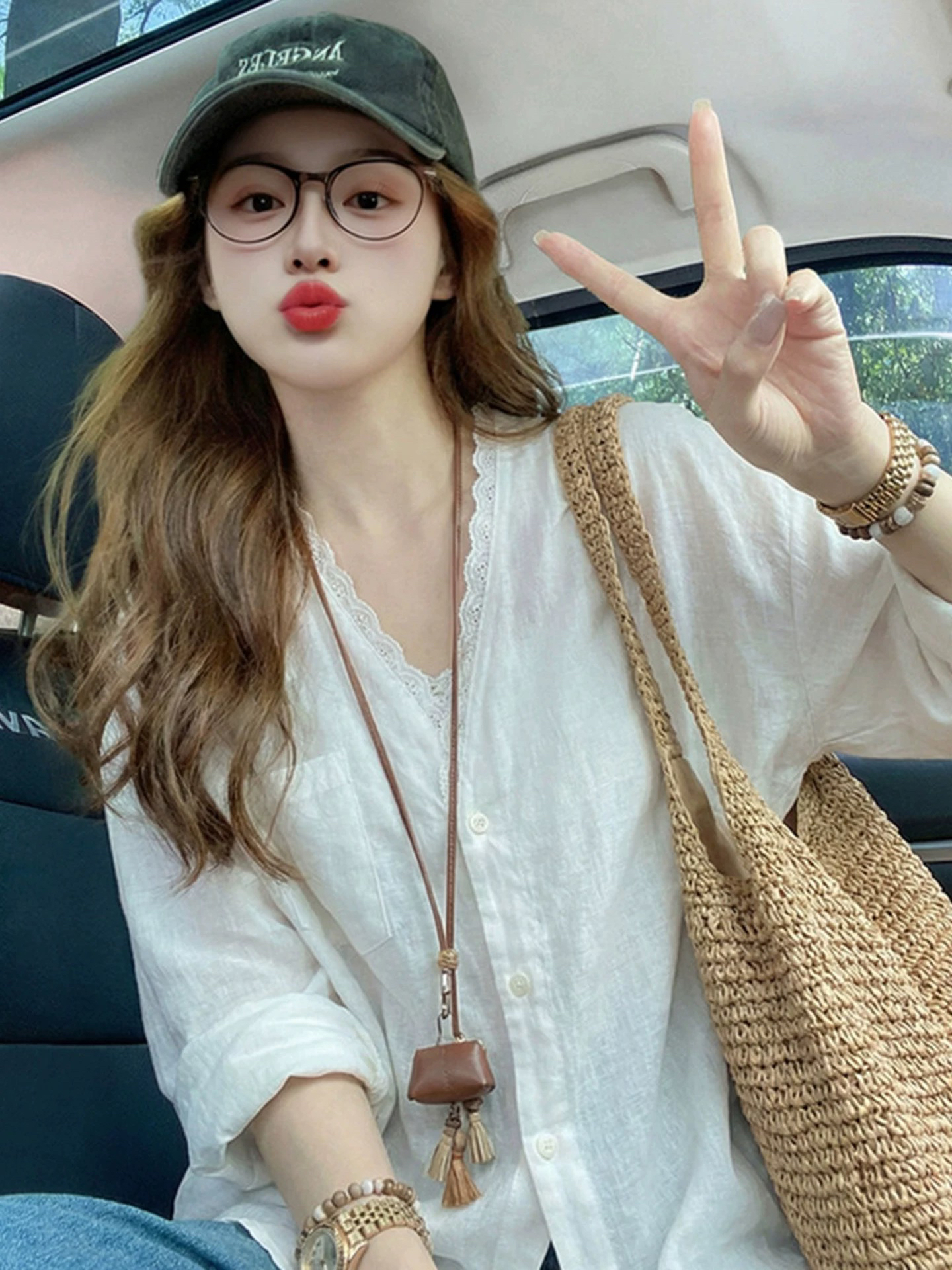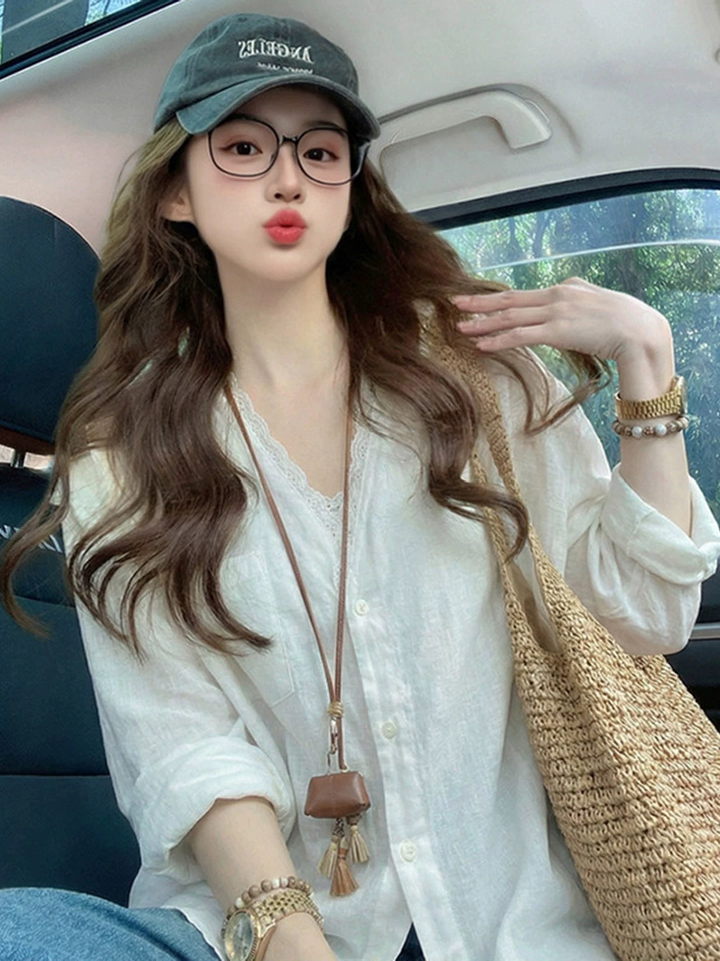 작은 대중 익스트림 제인 바람 화이트 아마 자외선 차단 맨위 2026 여름 새로운 고급 센스 외국 가스 아름다운 루즈핏 셔츠