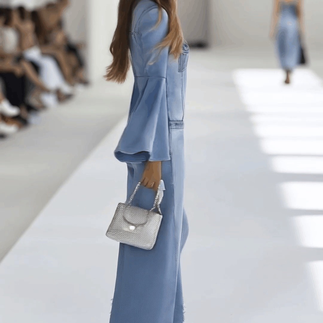 2026 국경 간 대외 무역 패션 롱 스커트 V넥 반팔 루즈핏 데님 롱 코트 단추 여성 드레스