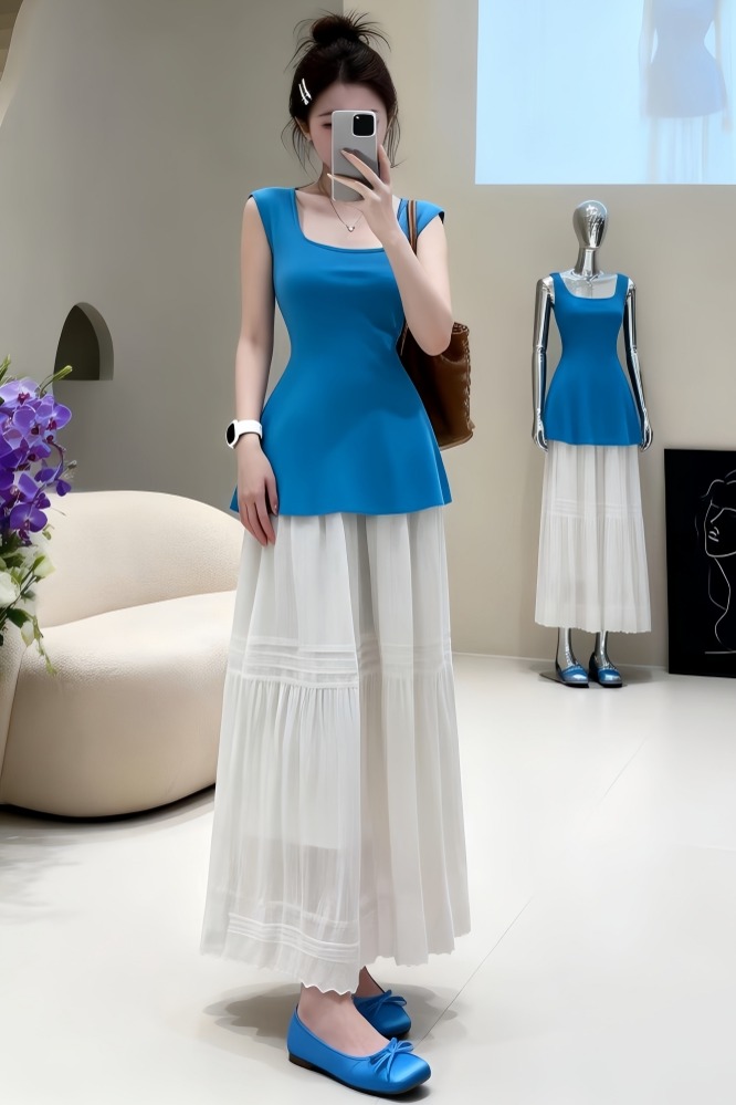 여름 드레스 코디 전체 집합 느슨함 센스 올해 인기 아름다운 빛 요리 한 바람 페이크 레이어드 맨위 반신 스커트 투피스 세트