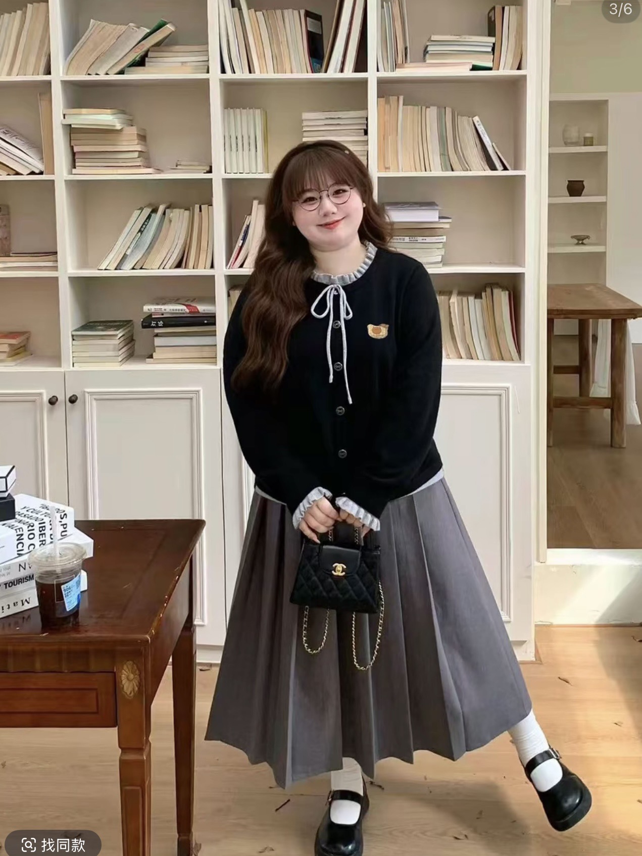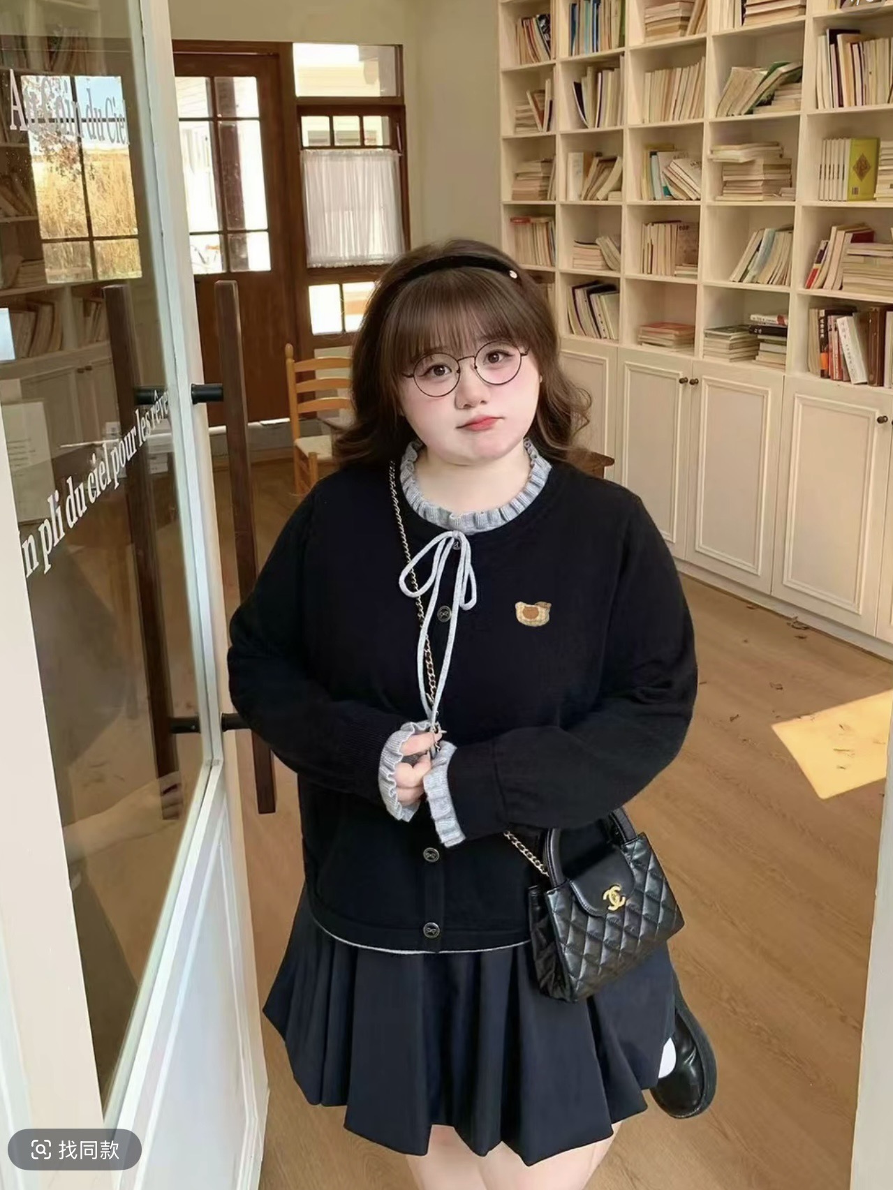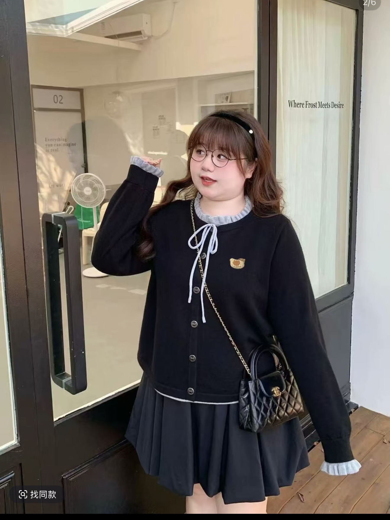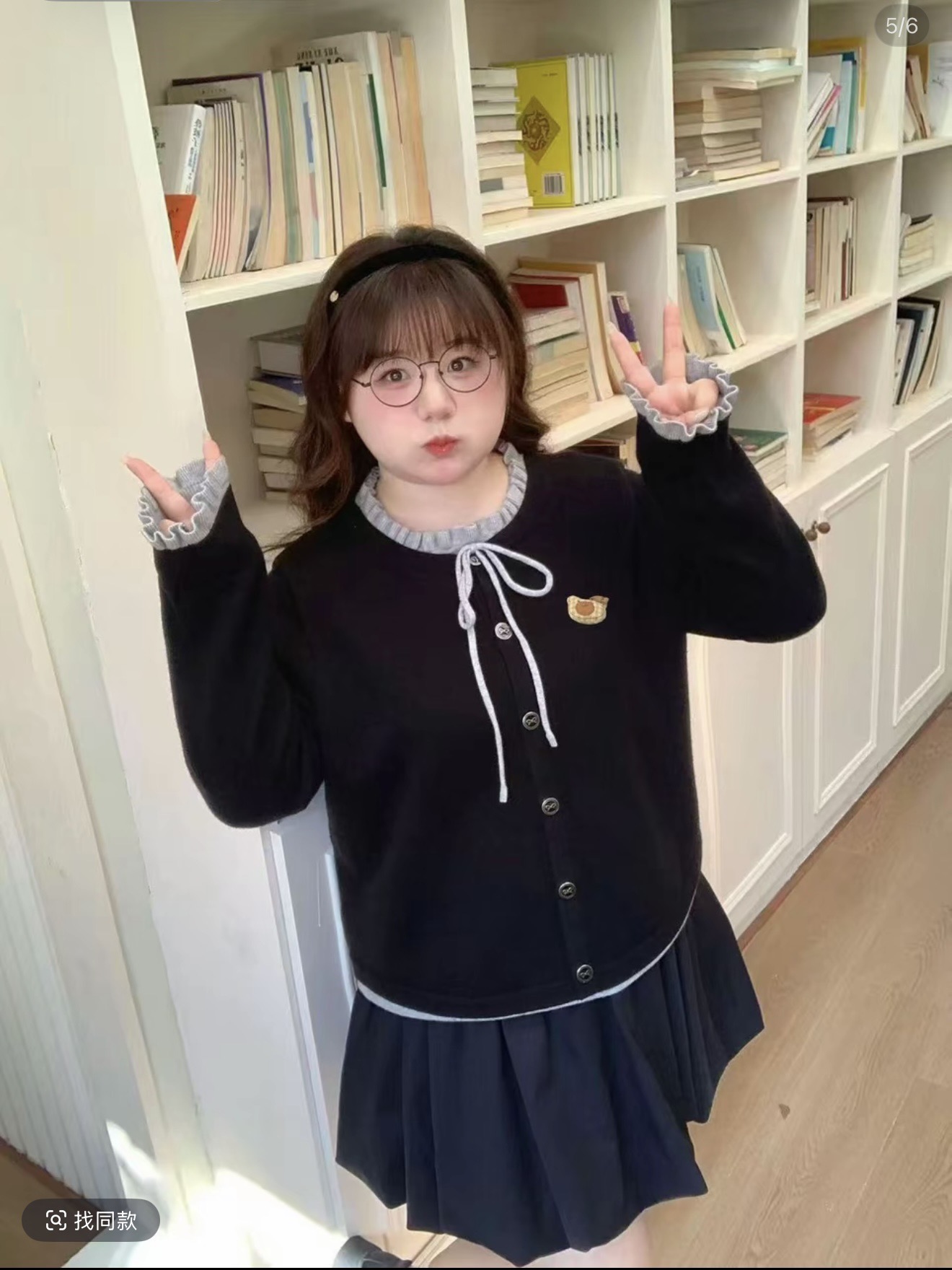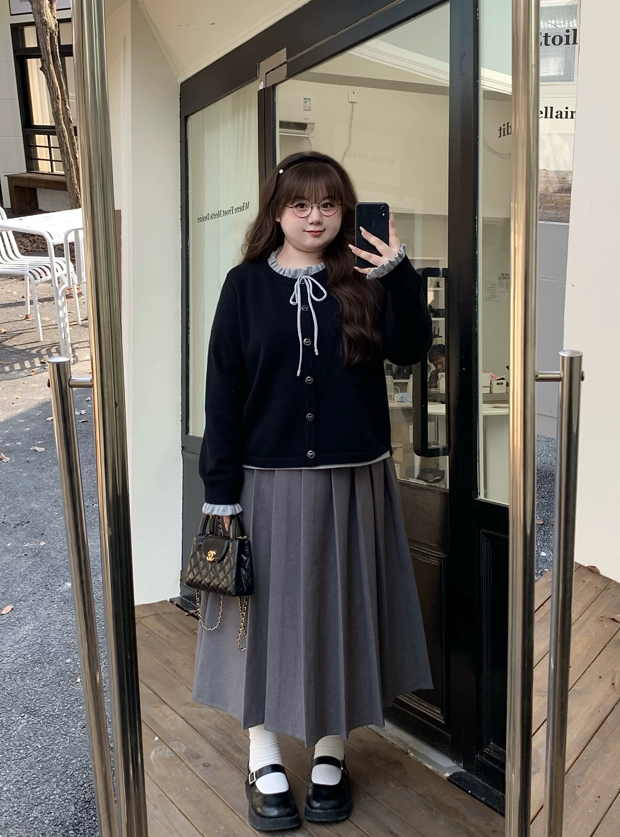 빅 사이즈 한 부서 나비 매듭 라운드 넥 페이크 레이어드 지방 mm 슬림해 보이는 니트 스웨터