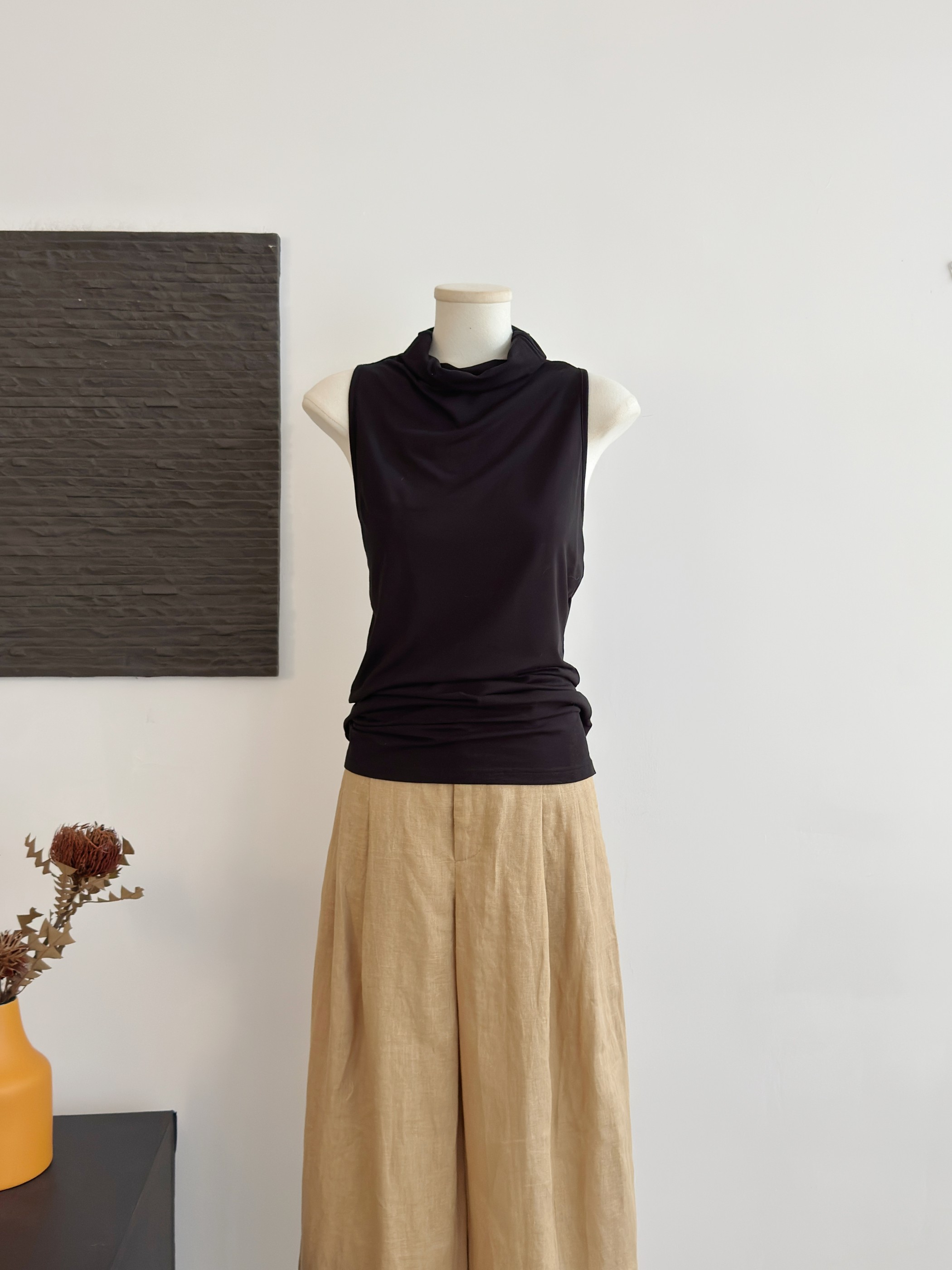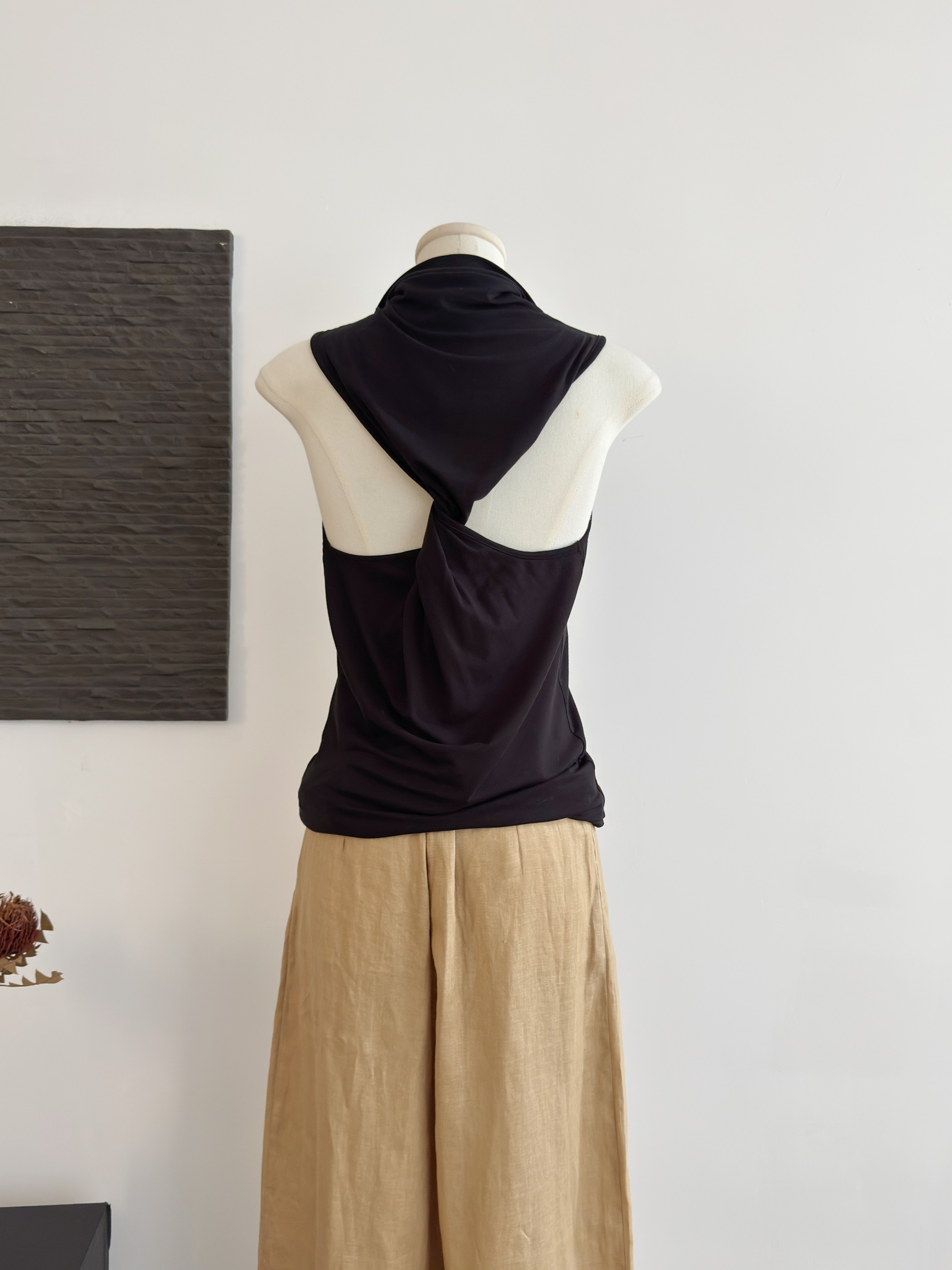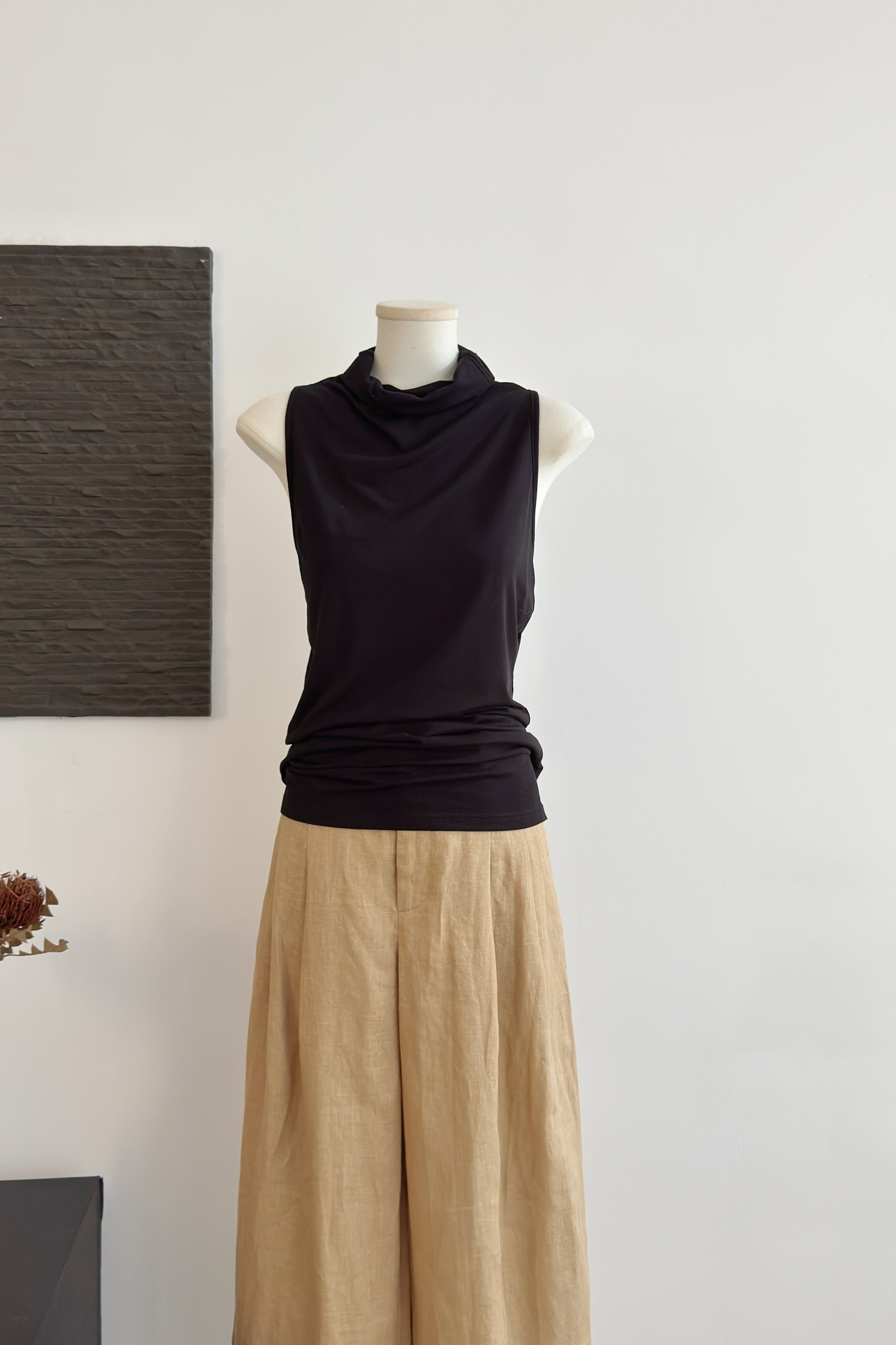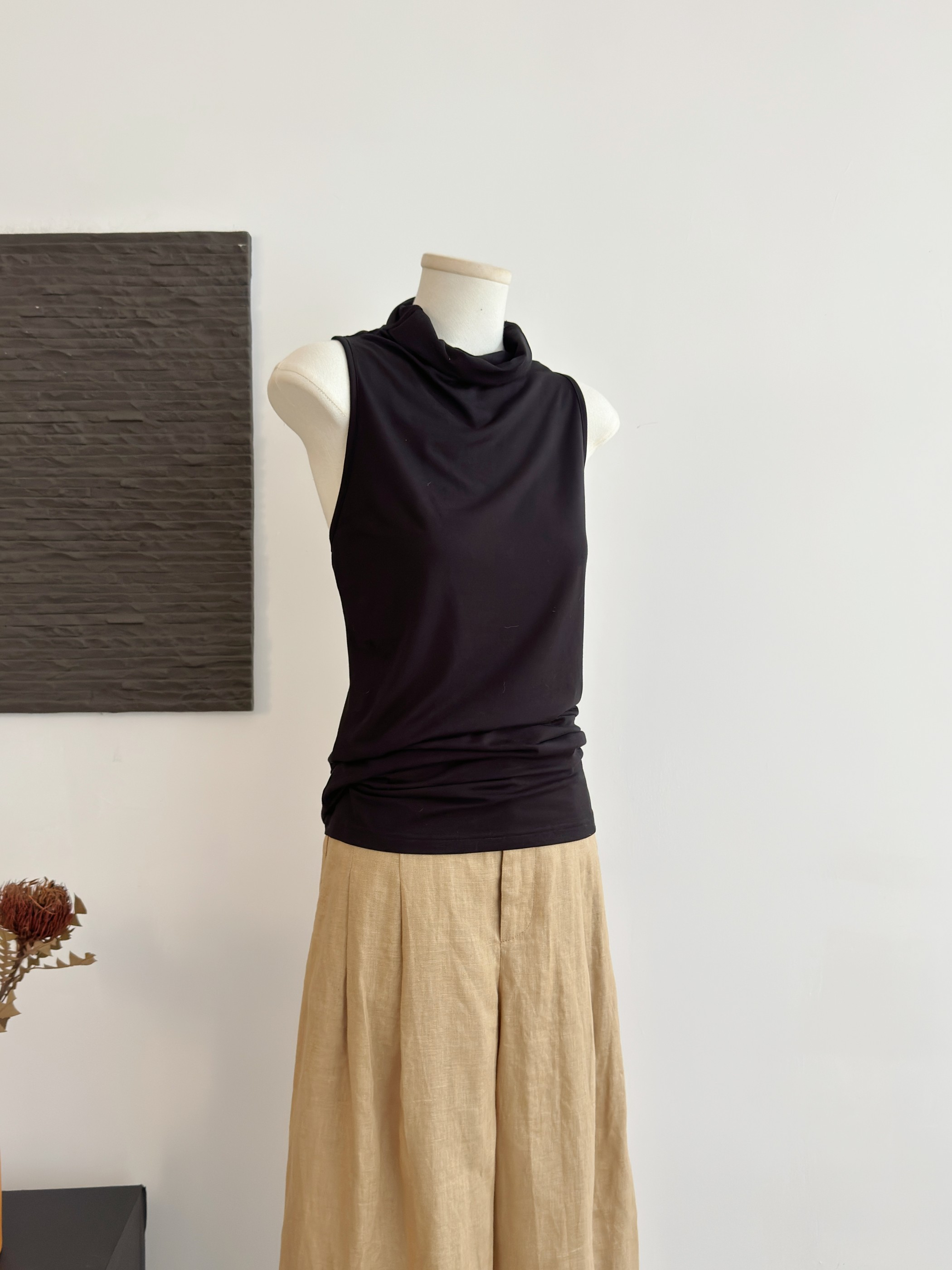 yuyureal 오스트리아 블루 좋은 주간 실크 뒤로 비틀림 말뚝 더미 칼라 반하이넥 조끼 백리스 민소매 맨위