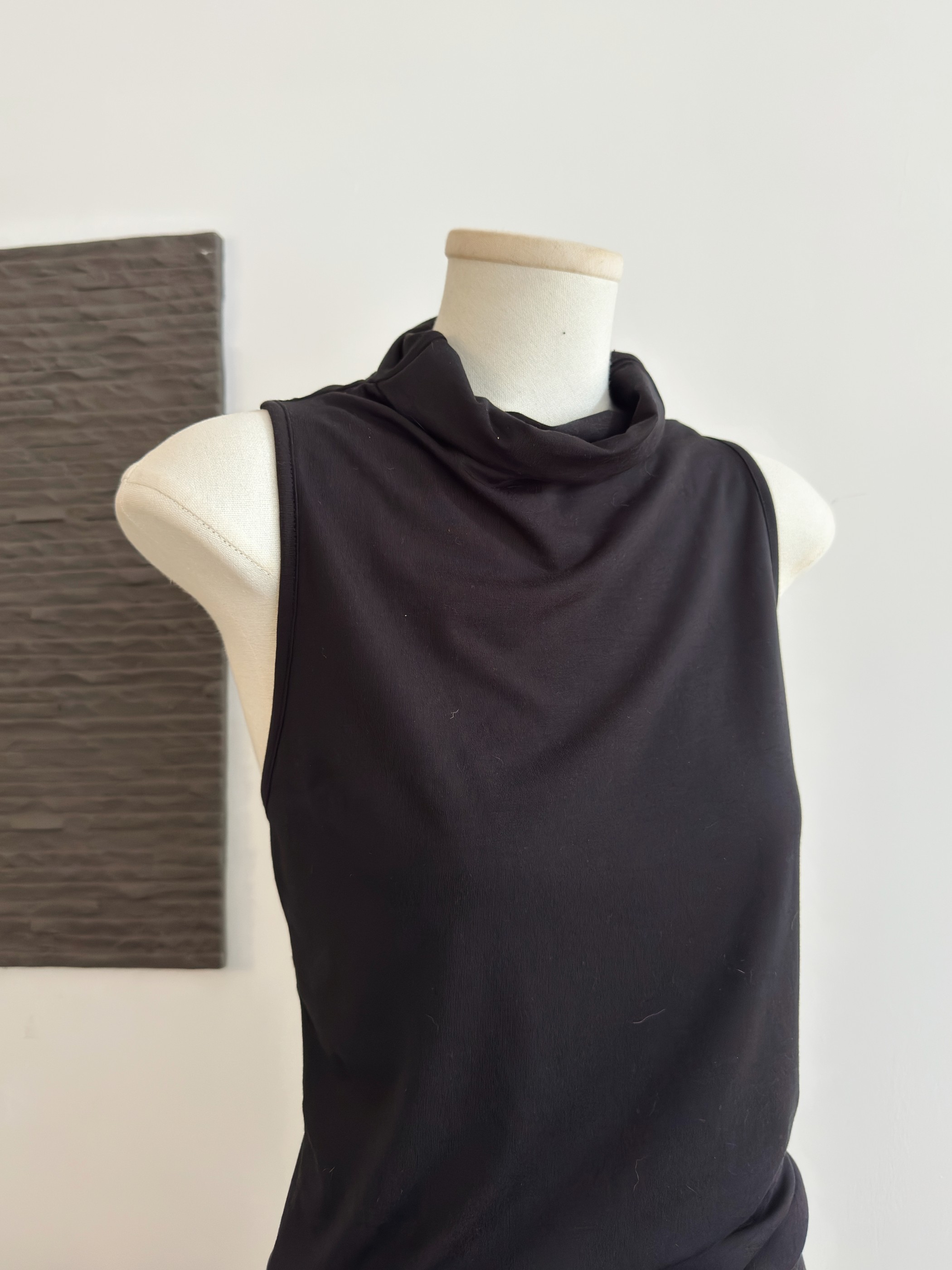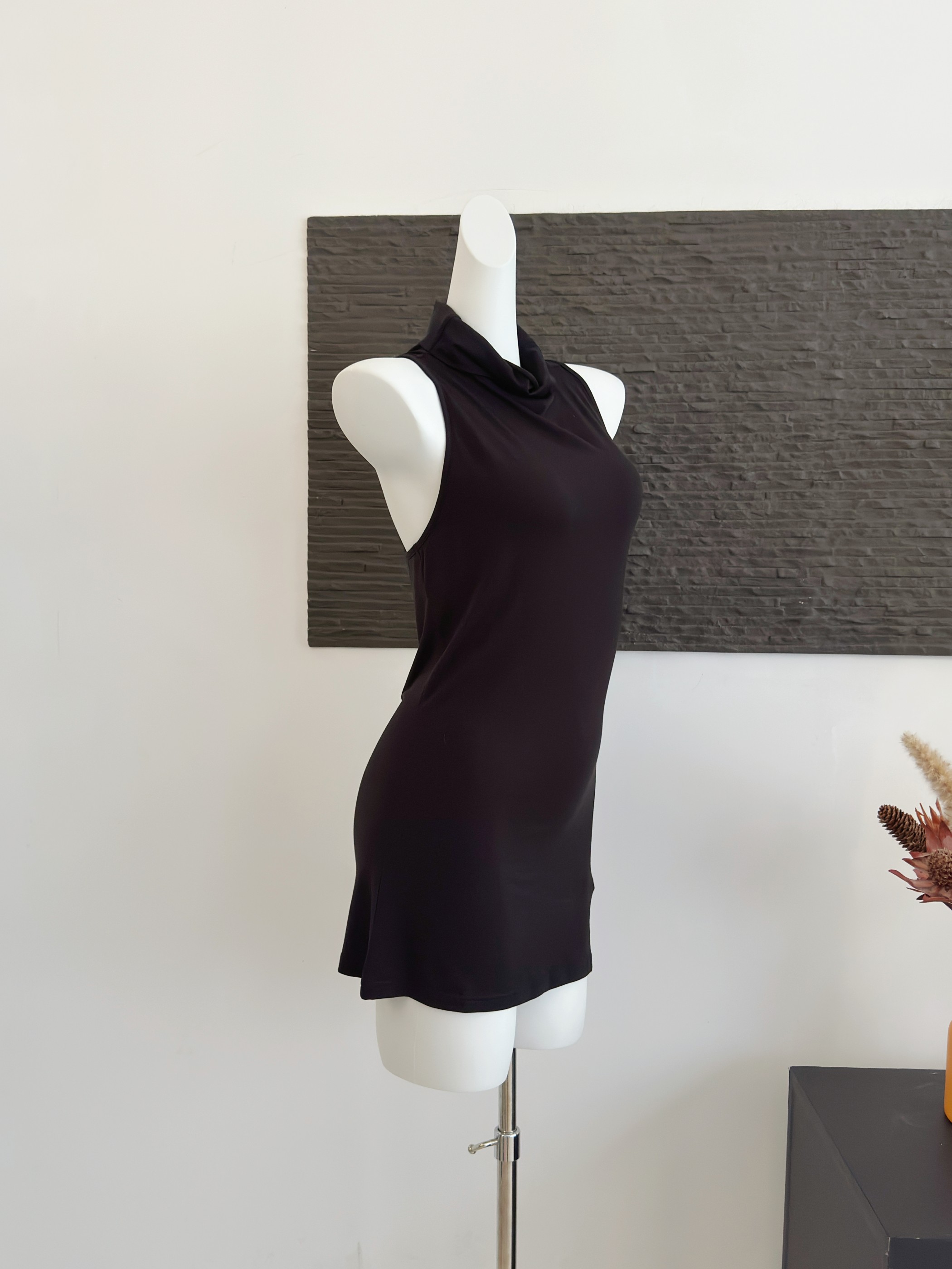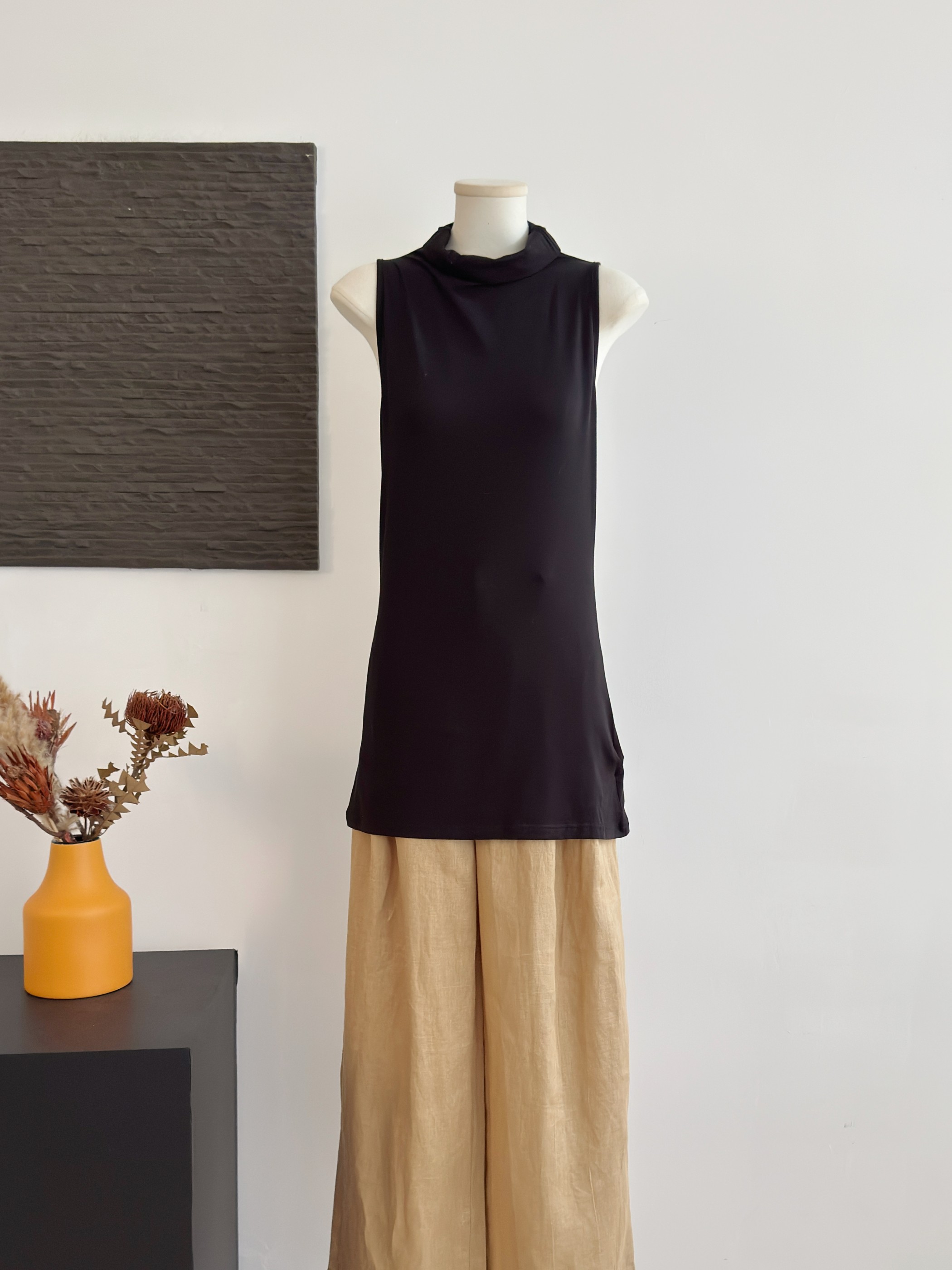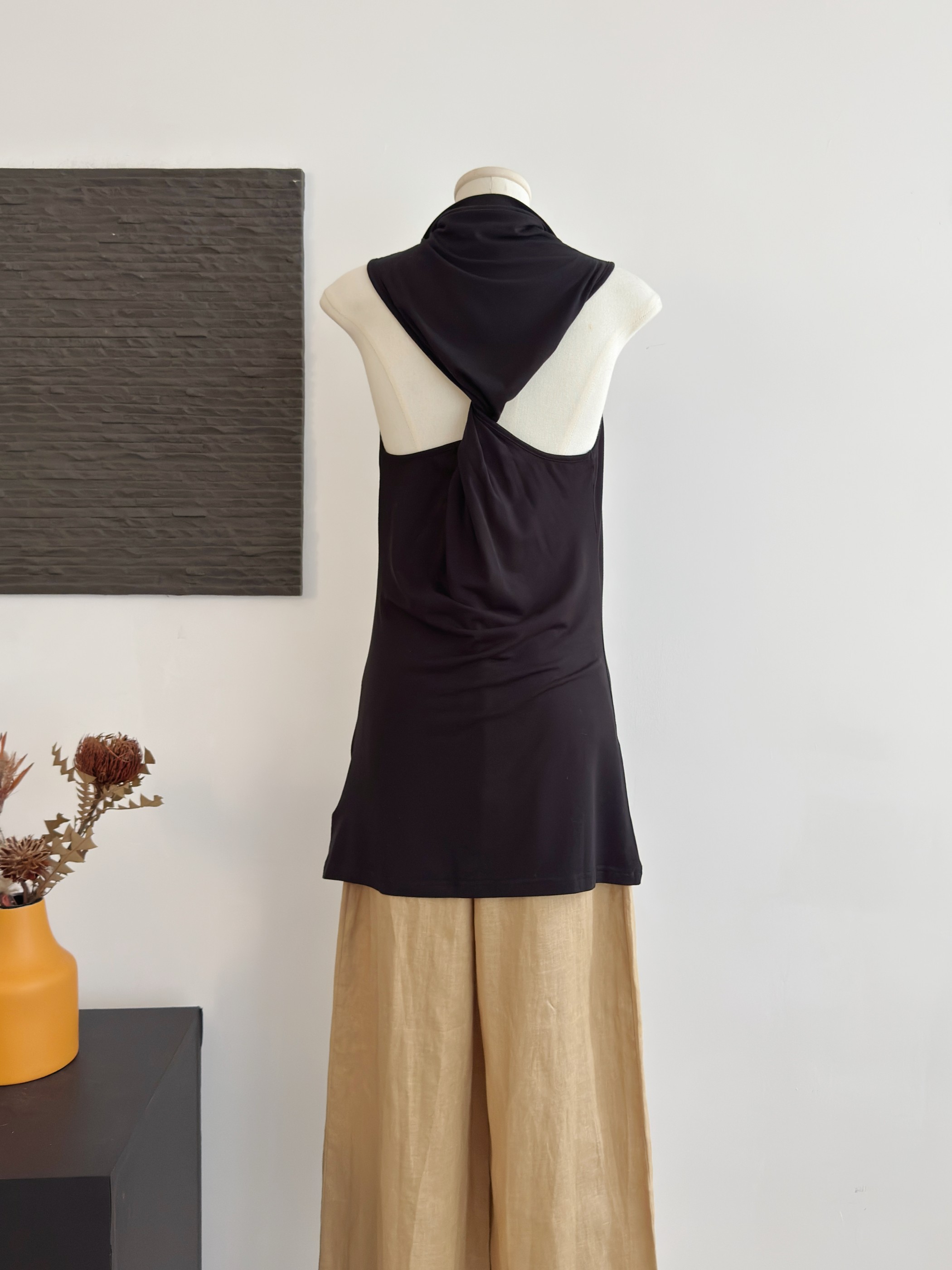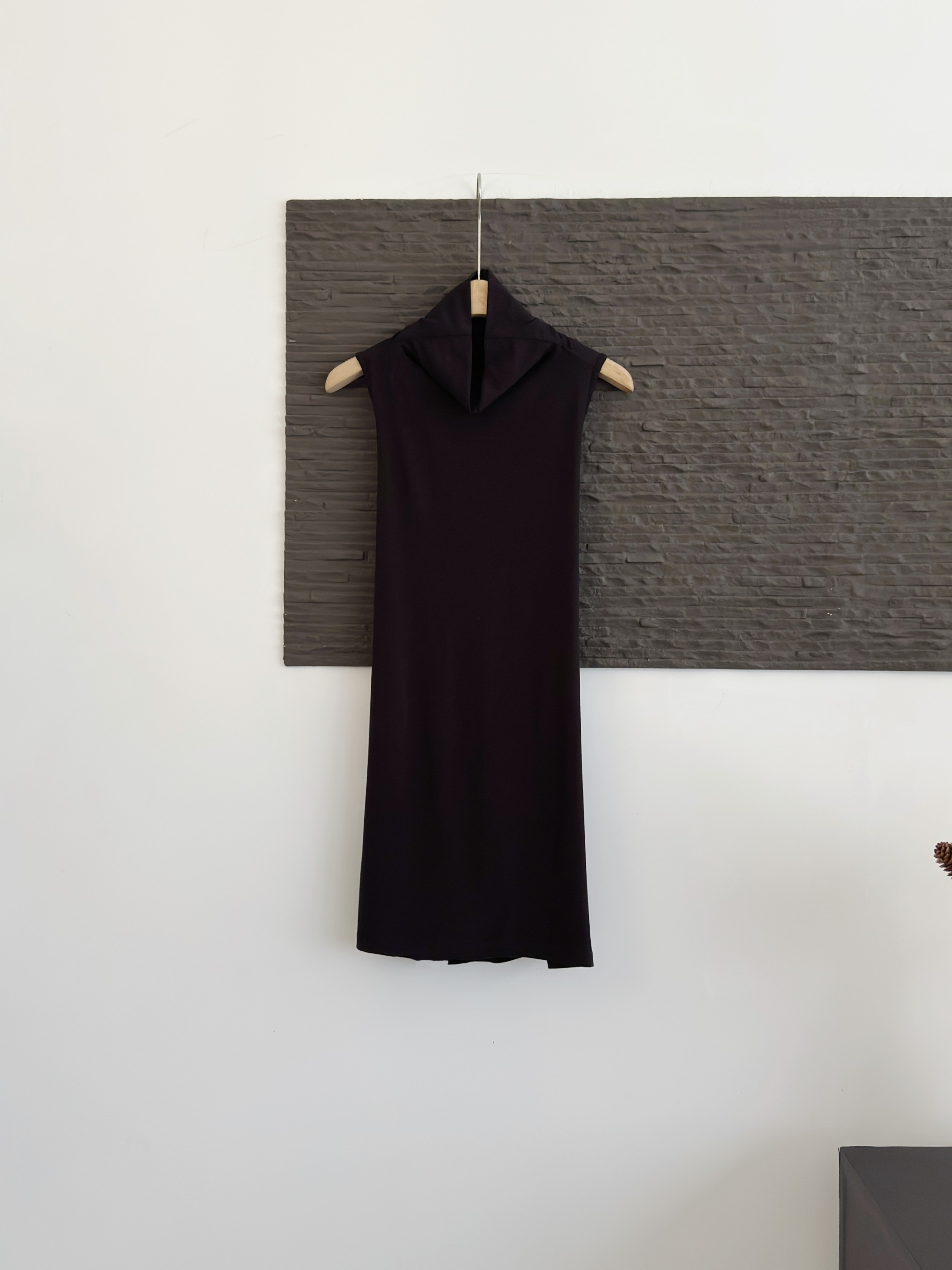 yuyureal 오스트리아 블루 좋은 주간 실크 뒤로 비틀림 말뚝 더미 칼라 반하이넥 조끼 백리스 민소매 맨위