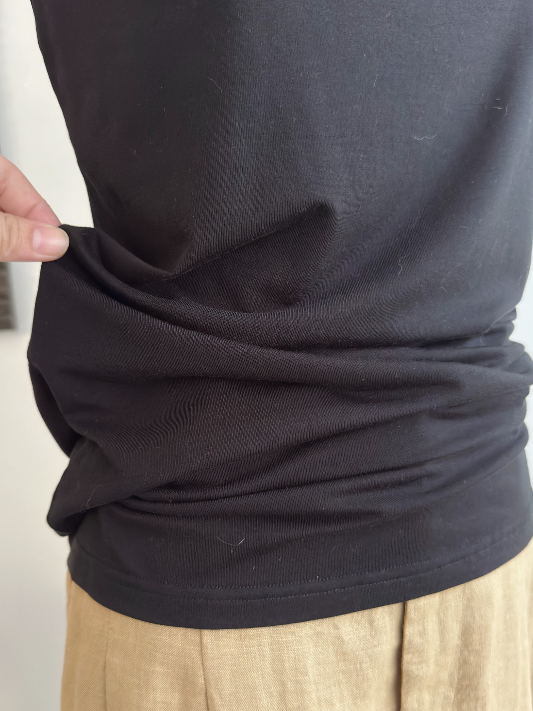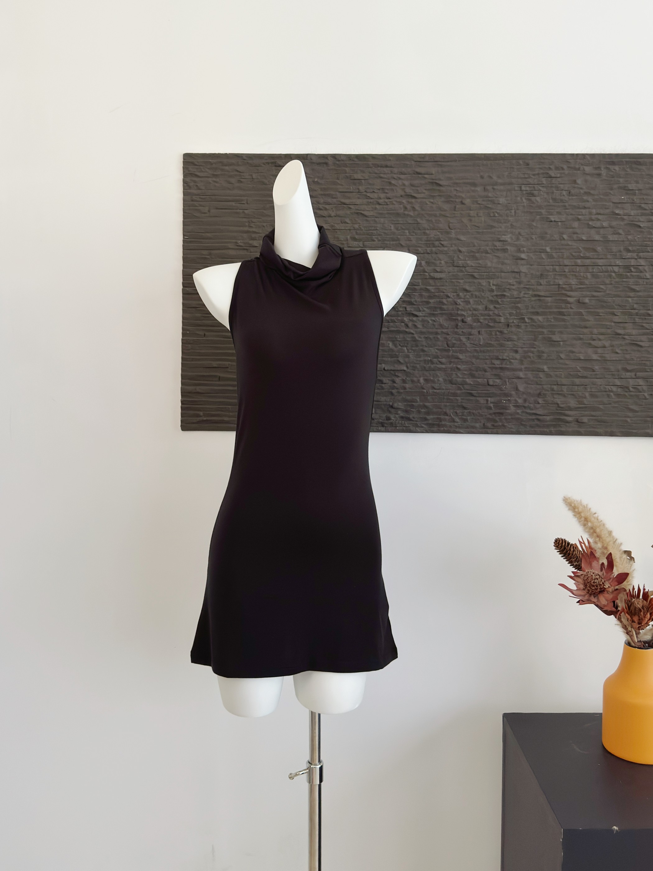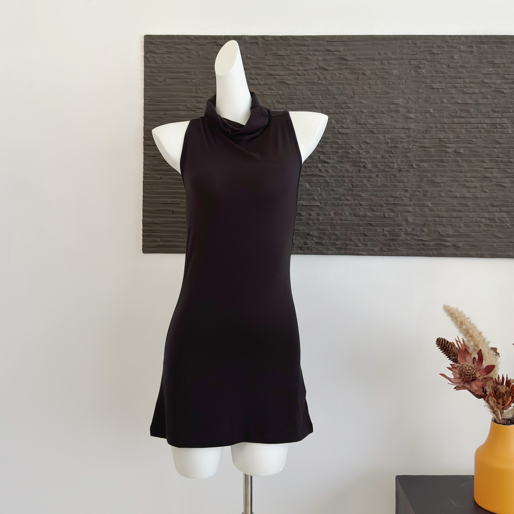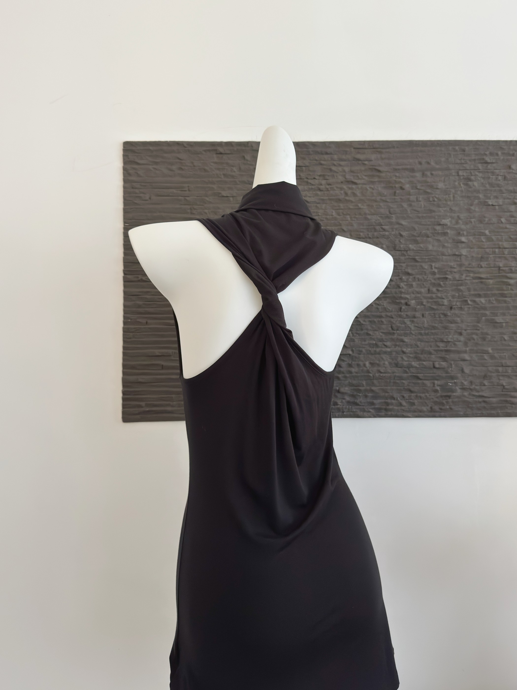 yuyureal 오스트리아 블루 좋은 주간 실크 뒤로 비틀림 말뚝 더미 칼라 반하이넥 조끼 백리스 민소매 맨위