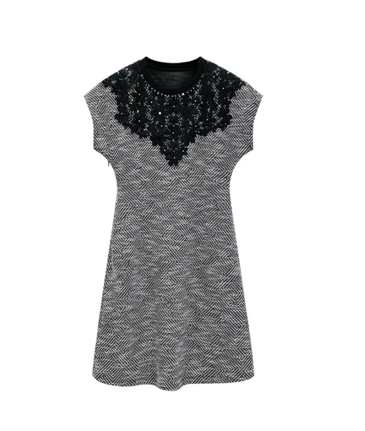 선적 중 망사 패치워크 드레스