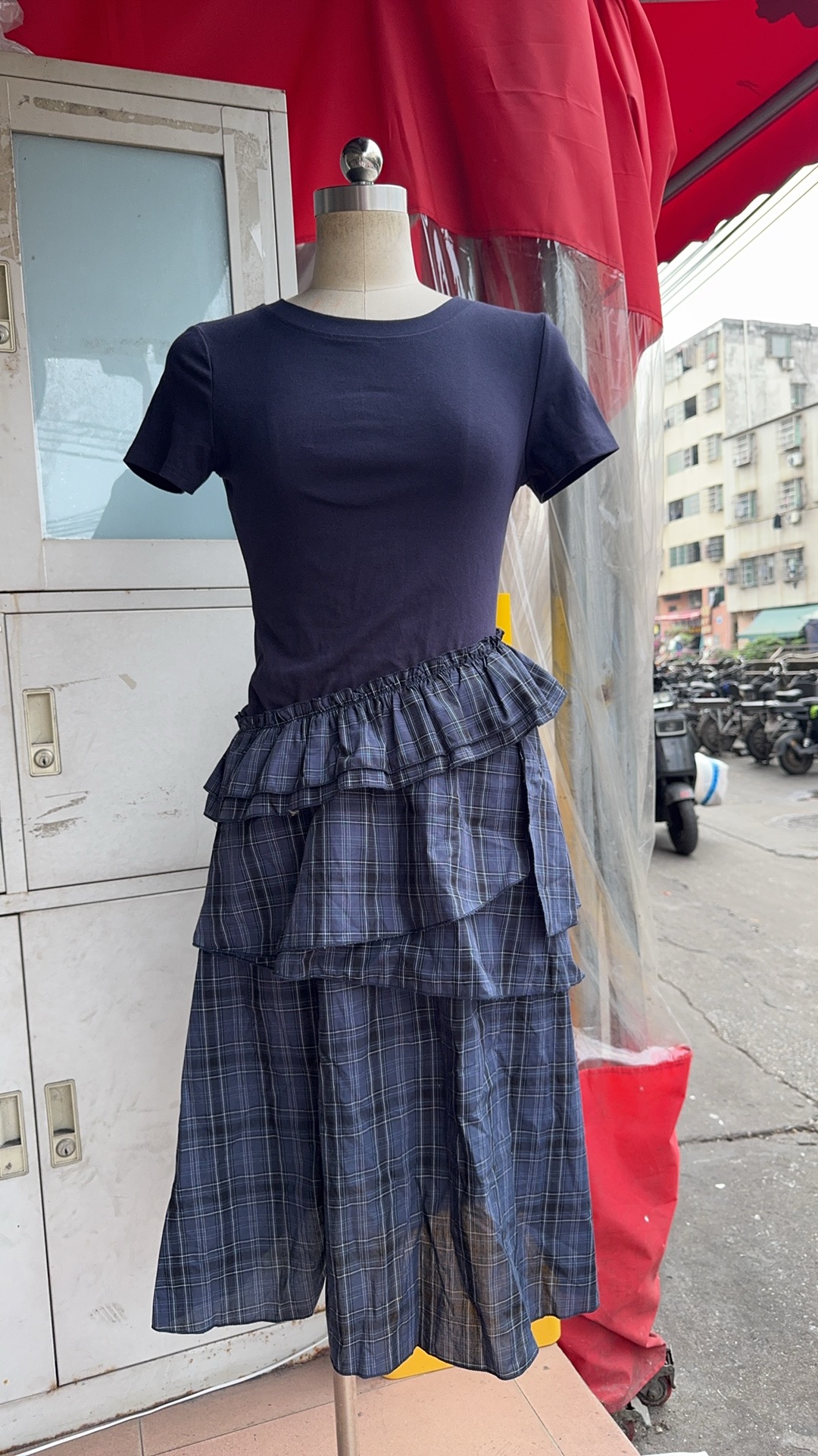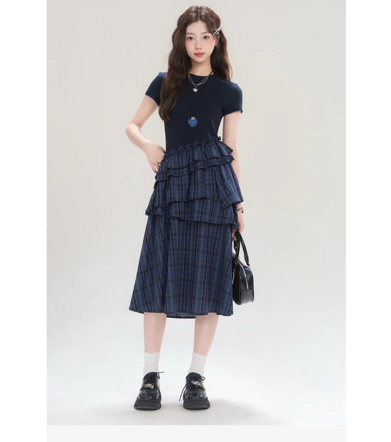 직장 기질 가짜 2 피스 슈트 대비 색 슬림 피트 중간 및 긴 섹션 큰 사이즈 여성 의류 지방 mm 짧은 소매 점프 슈트 치마 넓은 아내