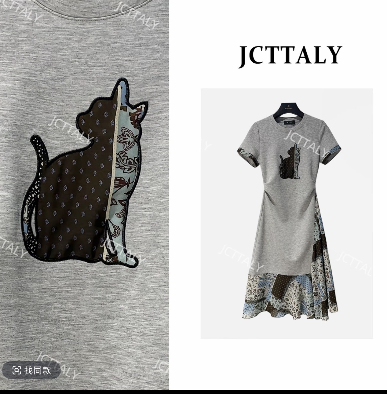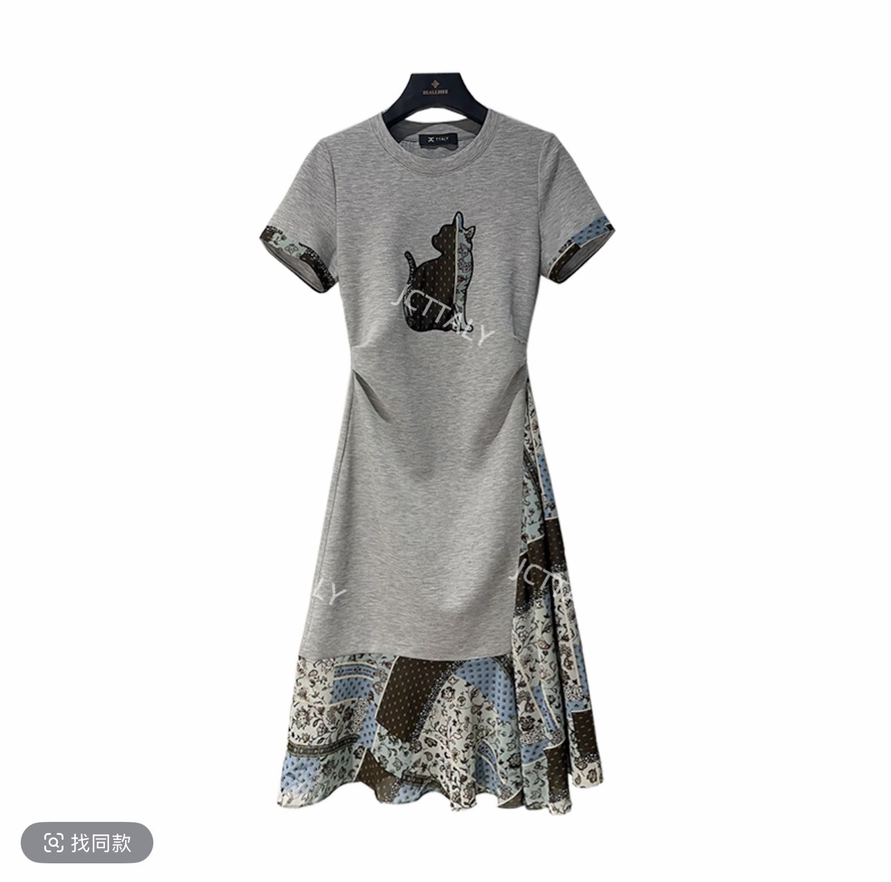 가짜 2 피스 슈트 슬림 피트 슬림 쉬폰 인쇄 짧은 소매 드레스 여름 새로운 큰 사이즈 여성 의류 지방 mm 중간 및 긴 섹션
