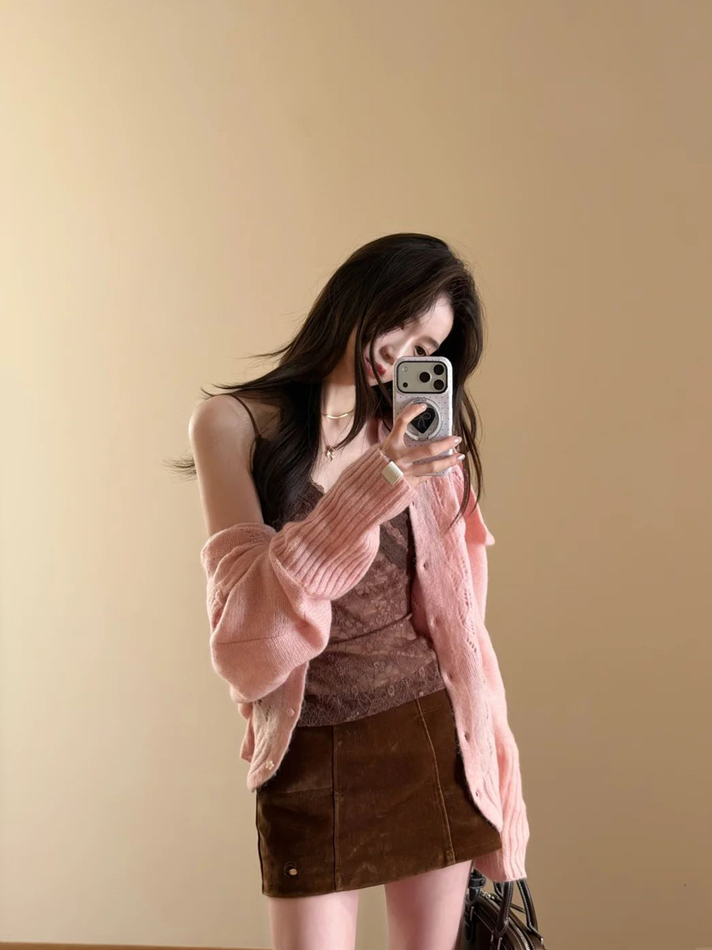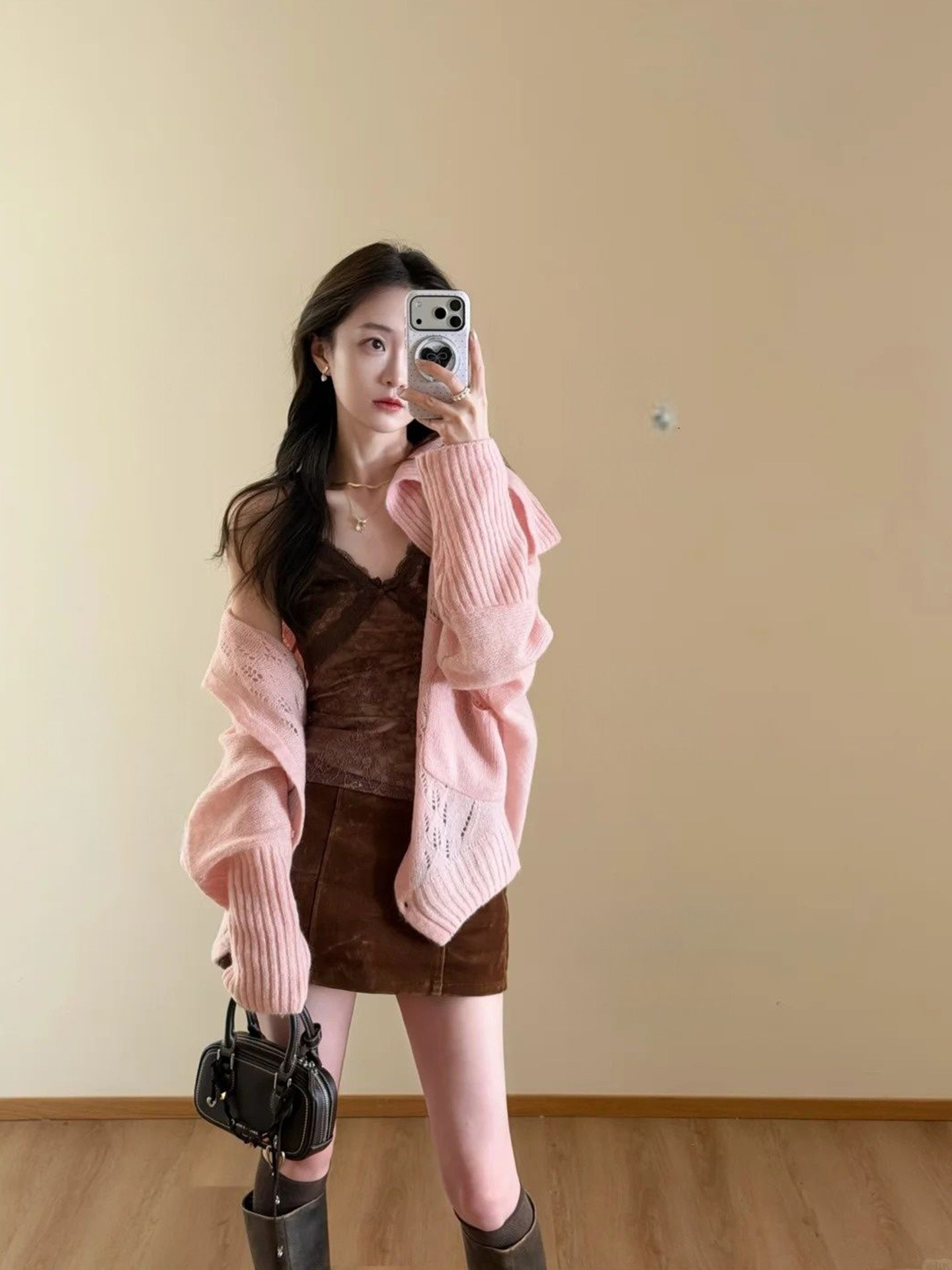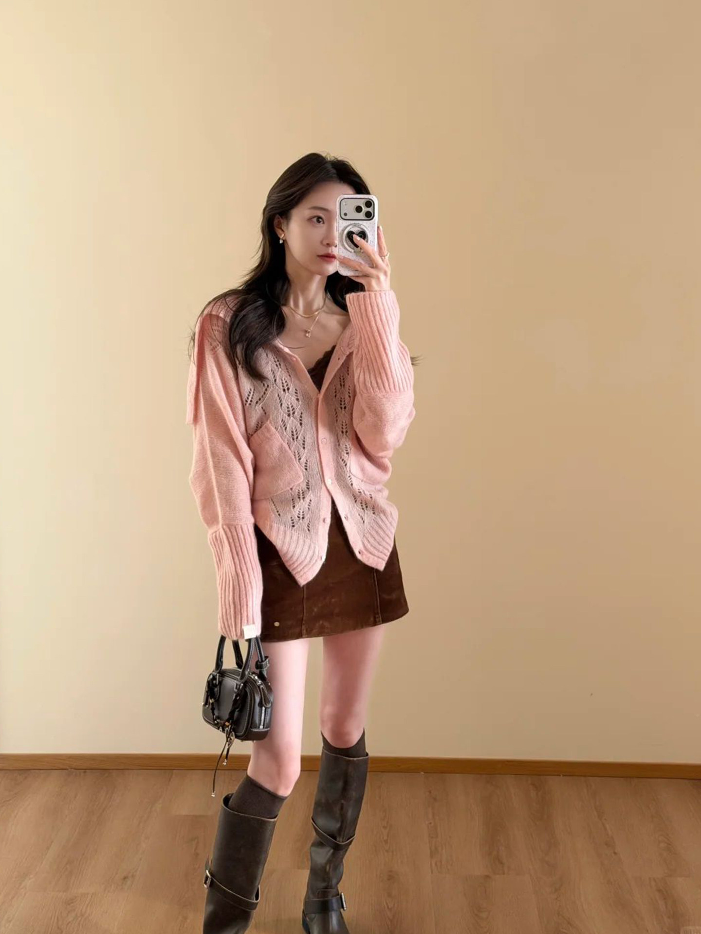 시끄러운 홈 핑크색 라운드 넥 꽈배기 니트 오픈 가디건 여성 2026 봄 몸매 가꾸기 지퍼 재킷 스웨터 인사이드 잡아라. 의류
