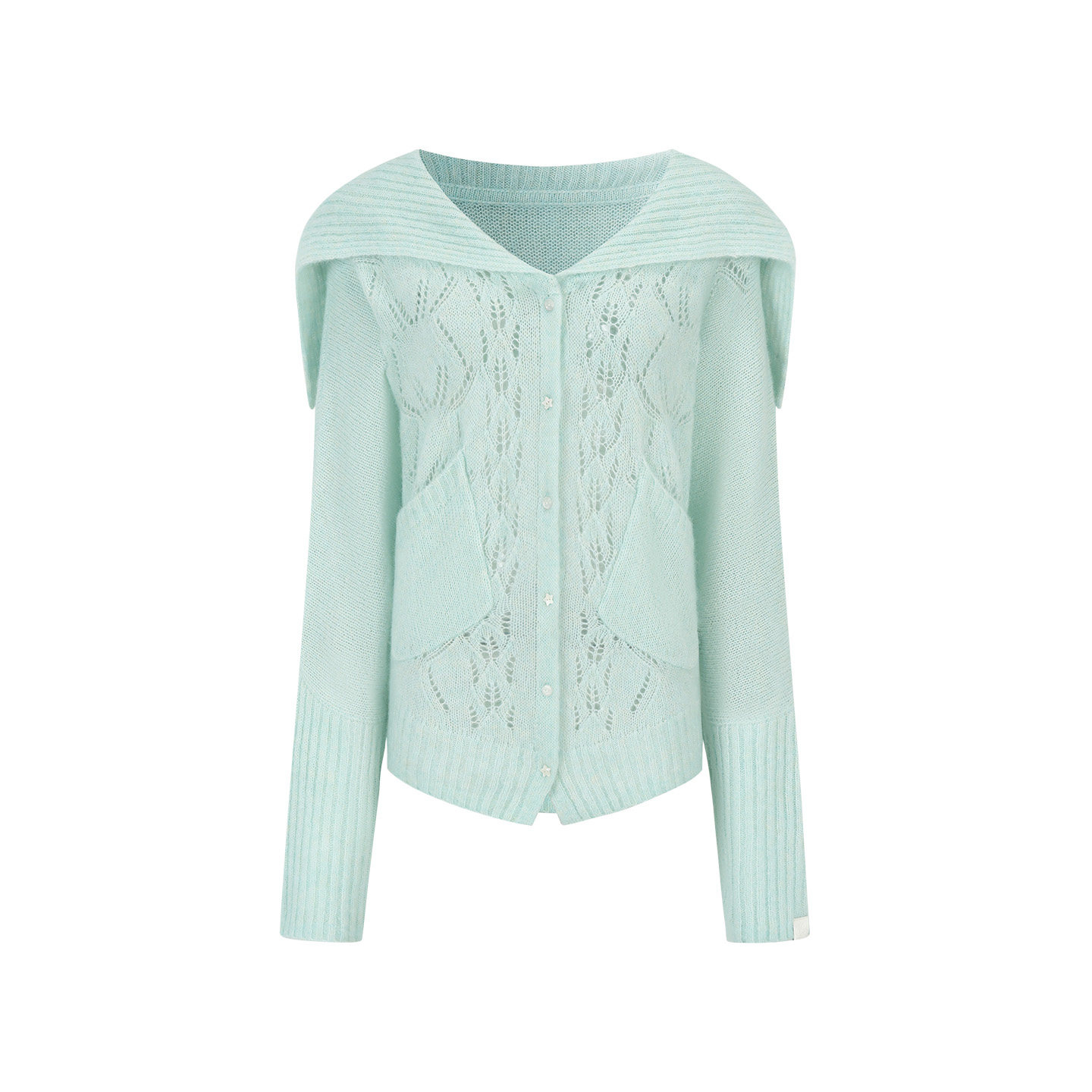 디자인 센스 폴로 칼라 홀로우 아웃 니트 오픈 가디건 봄 새로운 루즈핏 다용도 해군 칼라 스웨터