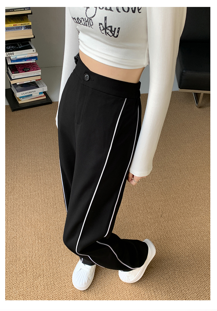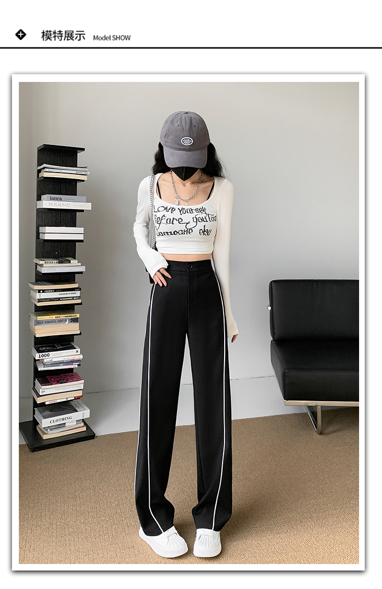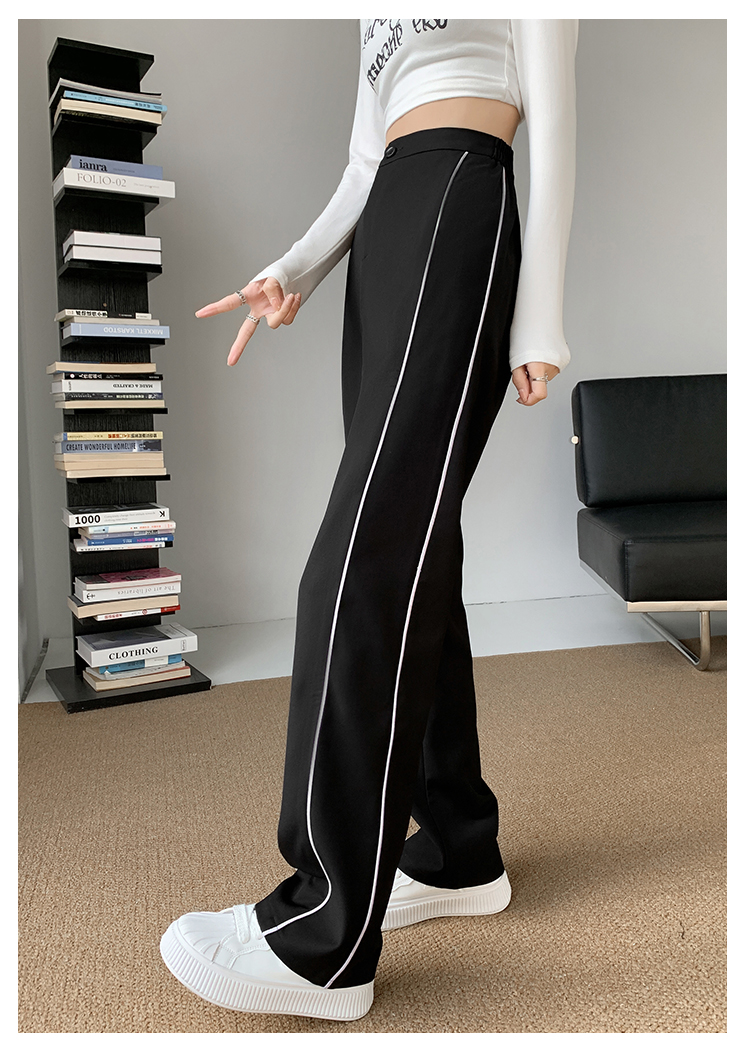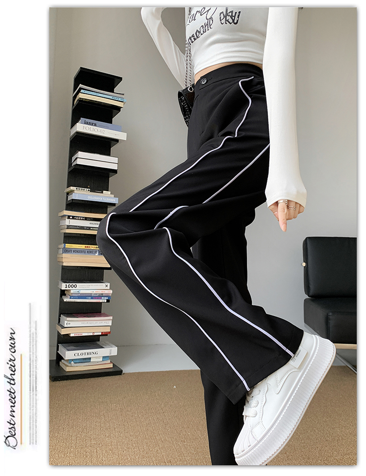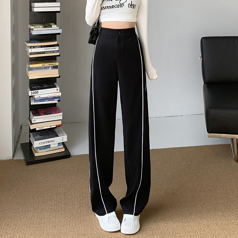 검정색 와이드 레그 팬츠 아이들 봄 가을 디자인 센스 하이웨이스트 스트레이트 정장 바지 루즈핏 도루 센스 캐주얼 운동 긴 바지 트렌디