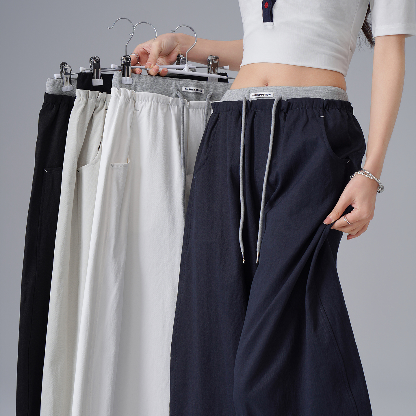 2026 봄 새로운 한 부서 작은 말 펜던트 캐주얼 넓은 다리 길이 바지 여성 하이웨이스트 루즈핏 모통이 칼 바지