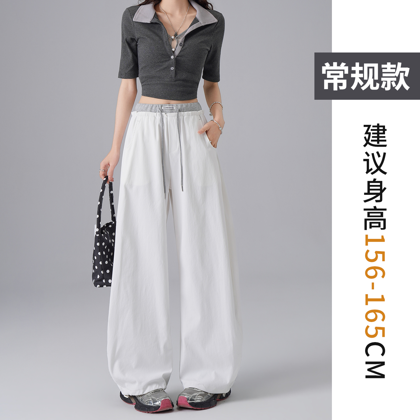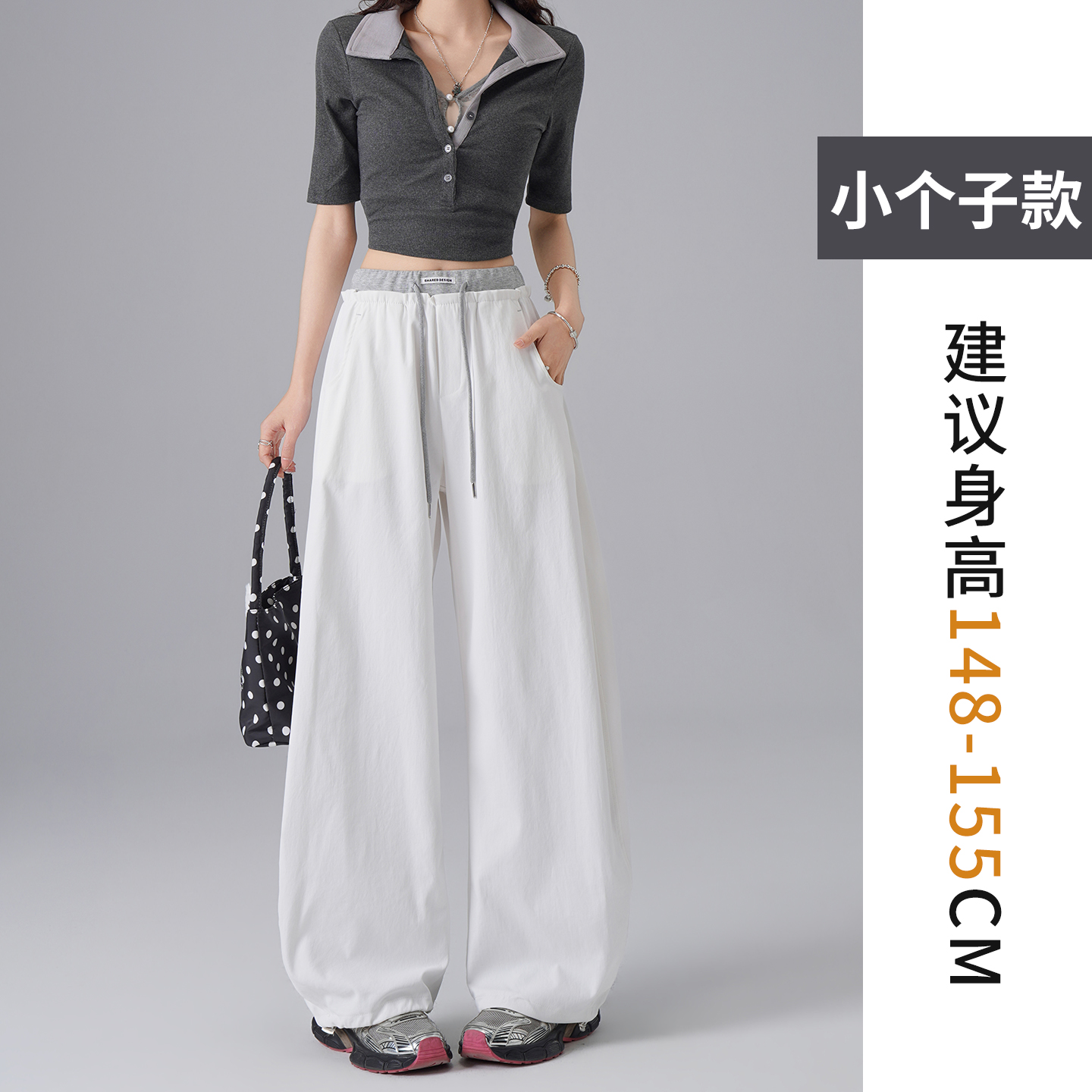 페이크 레이어드 방귀 커튼 도트 무늬 와이드 레깅스 바지 여름 얇은 스타일 2026 새로운 하이웨이스트 슬림해 보이는 루즈핏 도루 센스 바닥 청소 바지