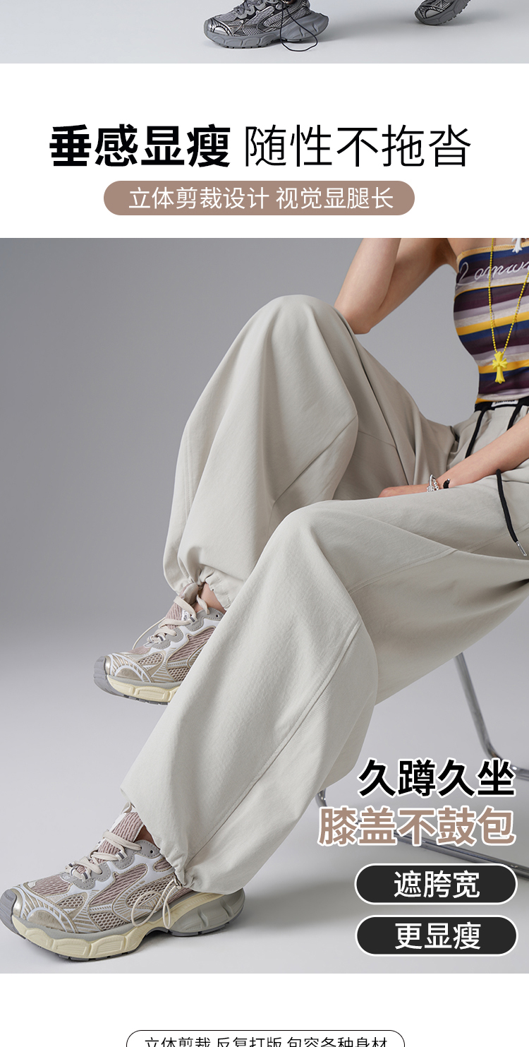 2026 여름 얇은 스타일 부츠컷 운동 바지 여성 하이웨이스트 슬림해 보이는 캐주얼 바지 얼음 실크 바닥 청소 바지 여성