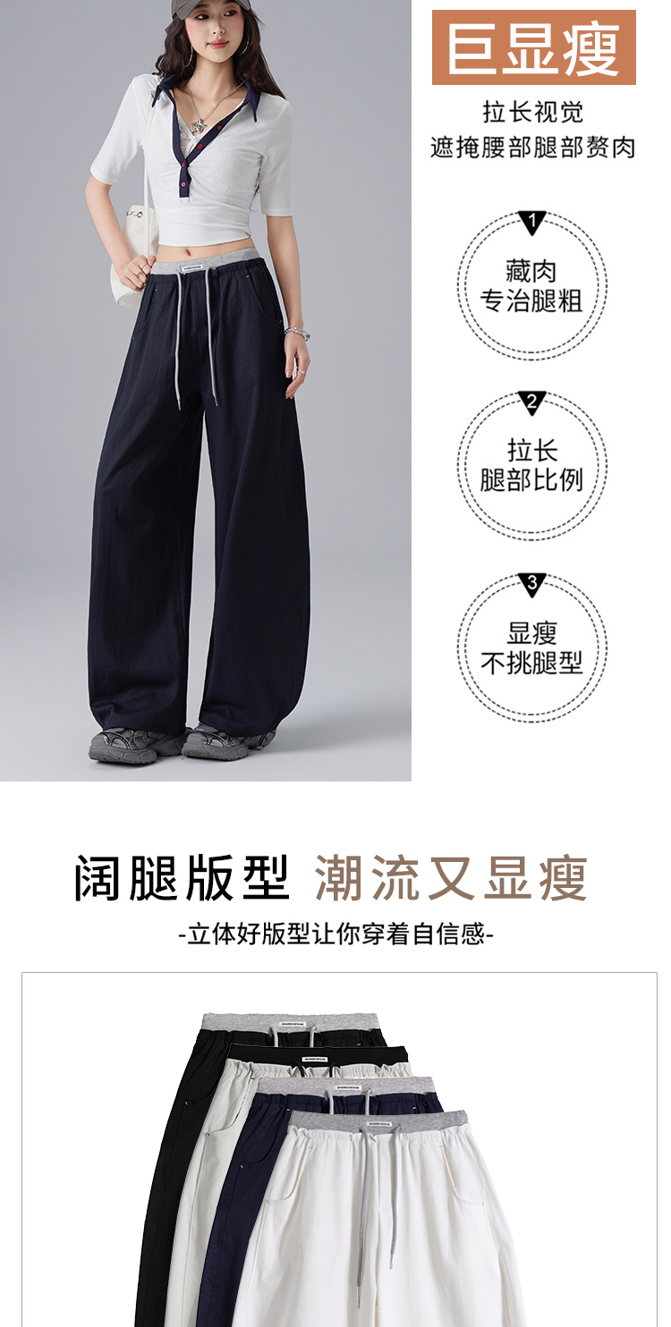 2026 새로운 봄 와이드 레그 팬츠 어린이 한국 스타일 레이스업 모통이 칼 캐주얼 바지 여성 배 종류 몸 하이웨이스트 슬림해 보이는 긴 바지