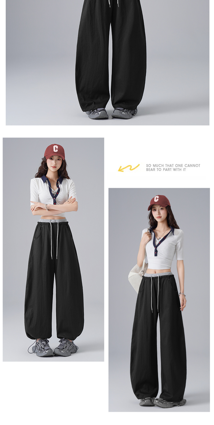 2026 여름 일본식 루즈핏 주간 실크 워시 물 면 풍선 바지 도루 센스 얇은 스타일 슬림해 보이는 넓은 다리 9 포인트 바지
