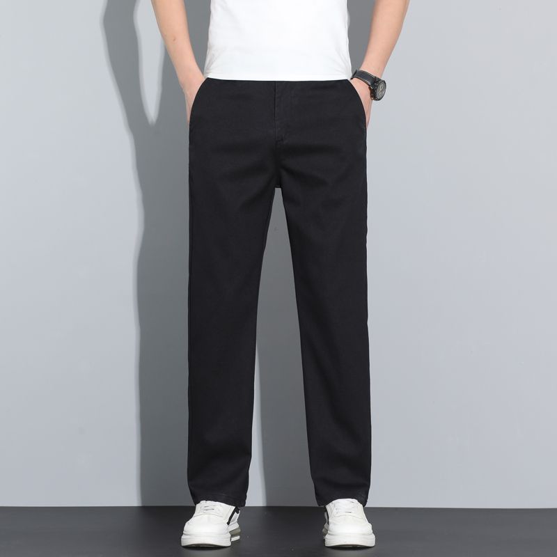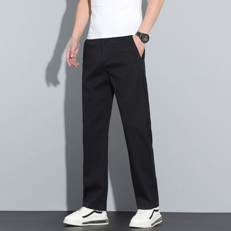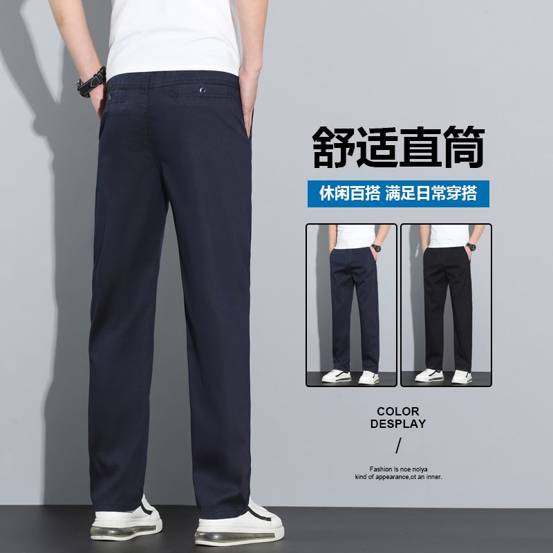 실사 2026 봄 여름 남성 비즈니스 캐주얼 롱 바지 스트레이트 루즈핏 신축성 몸매 가꾸기 남성용 바지 트렌디
