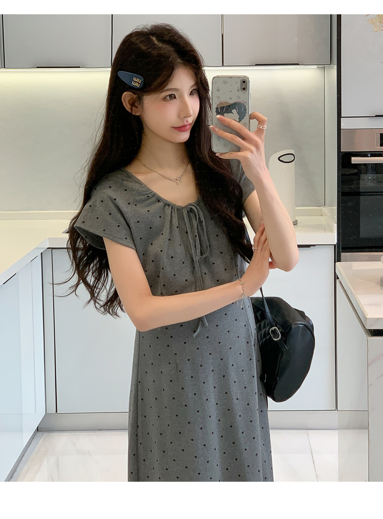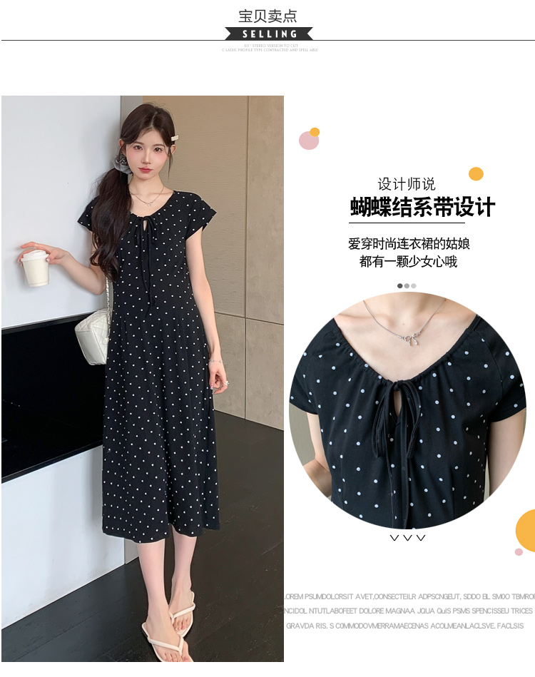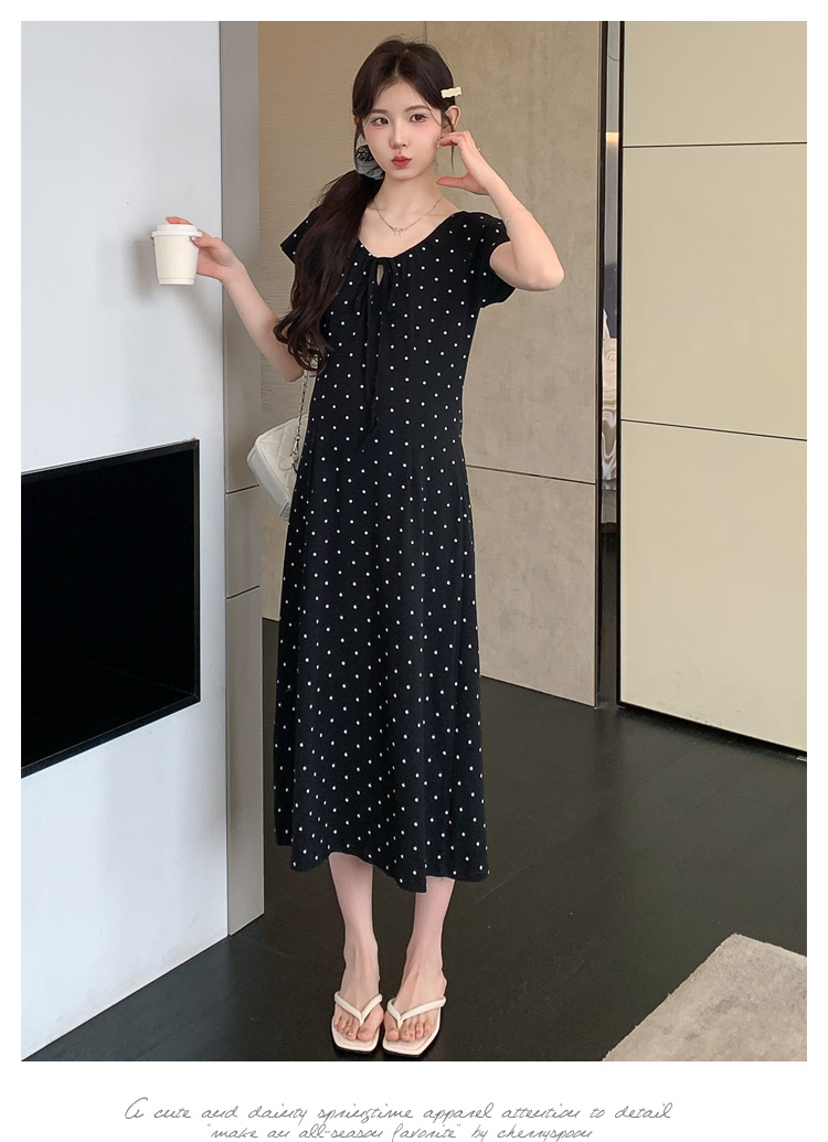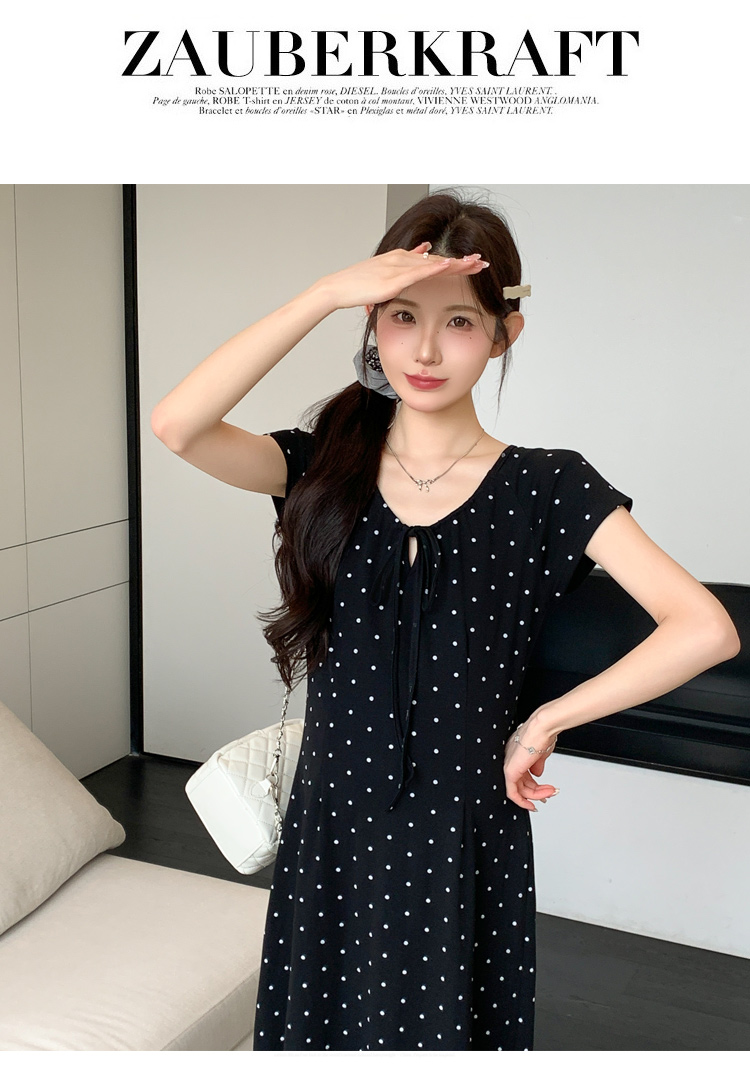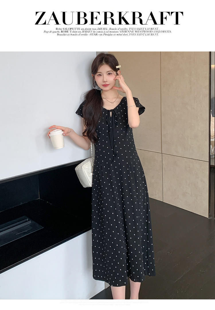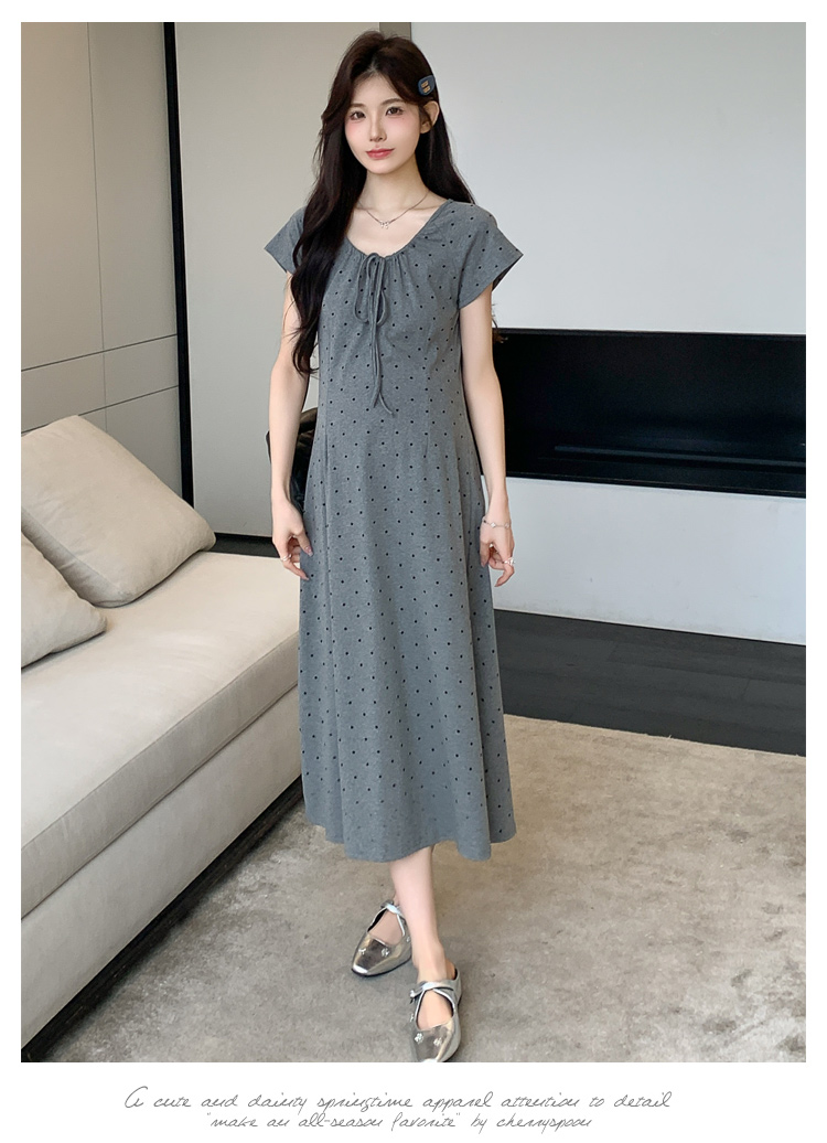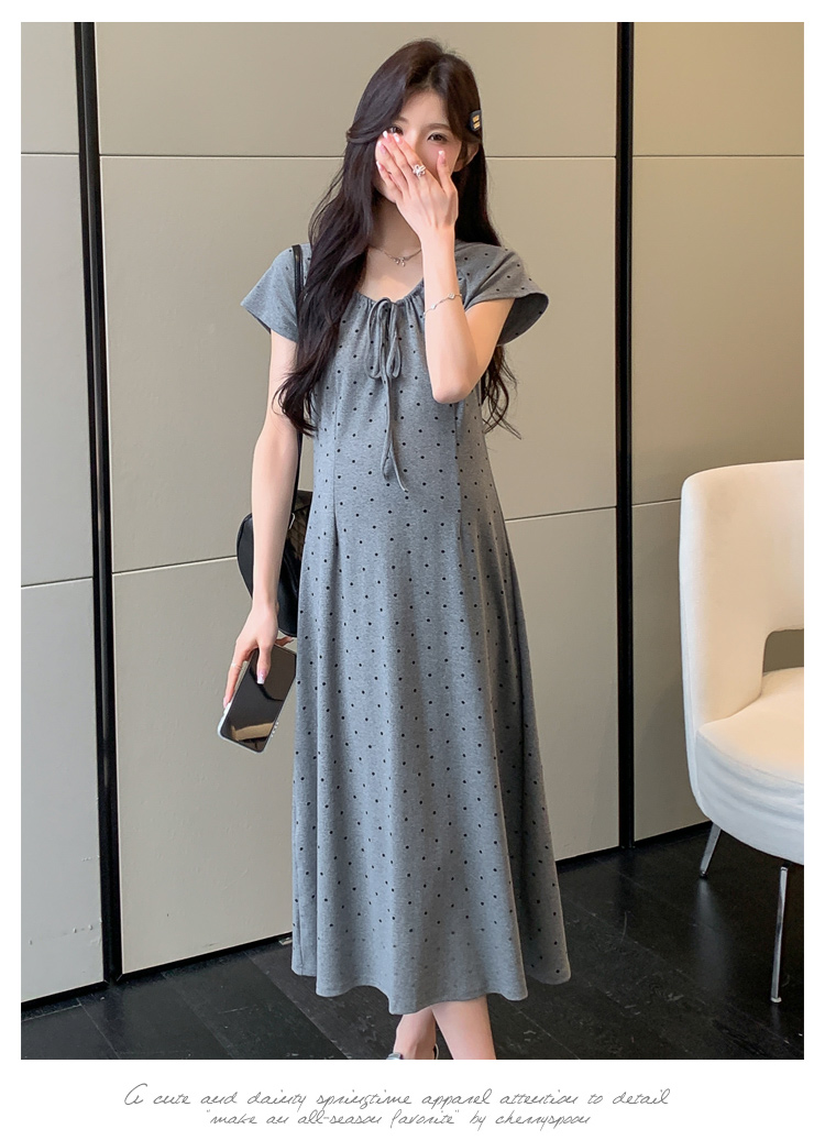 실사 2026 여름 미니멀리즘 도트 무늬 끈 클래식 라운드 넥 몸매 가꾸기 임산부 반팔 게으른 드레스