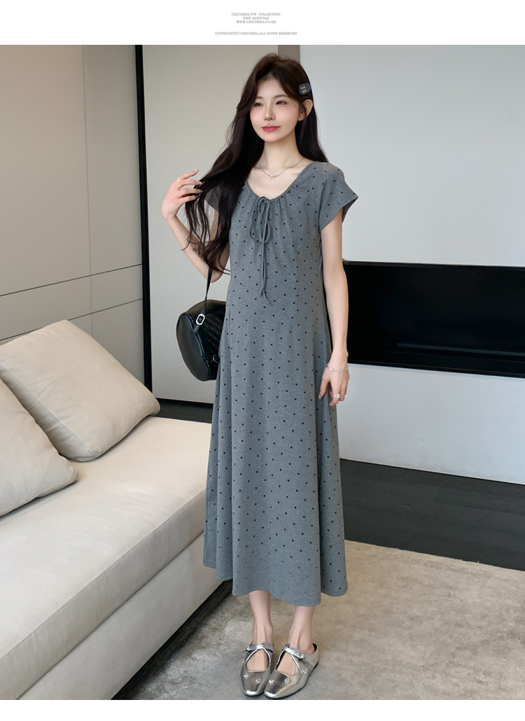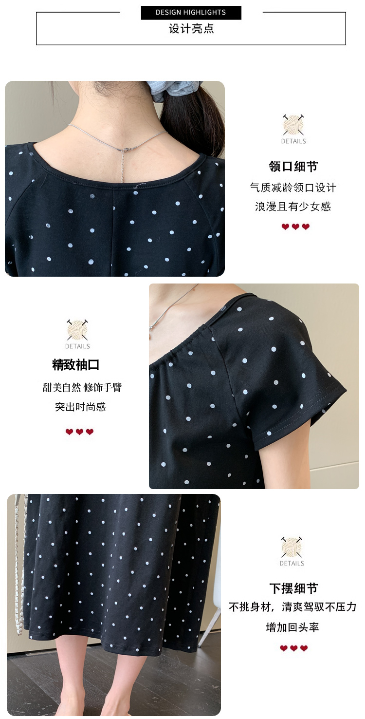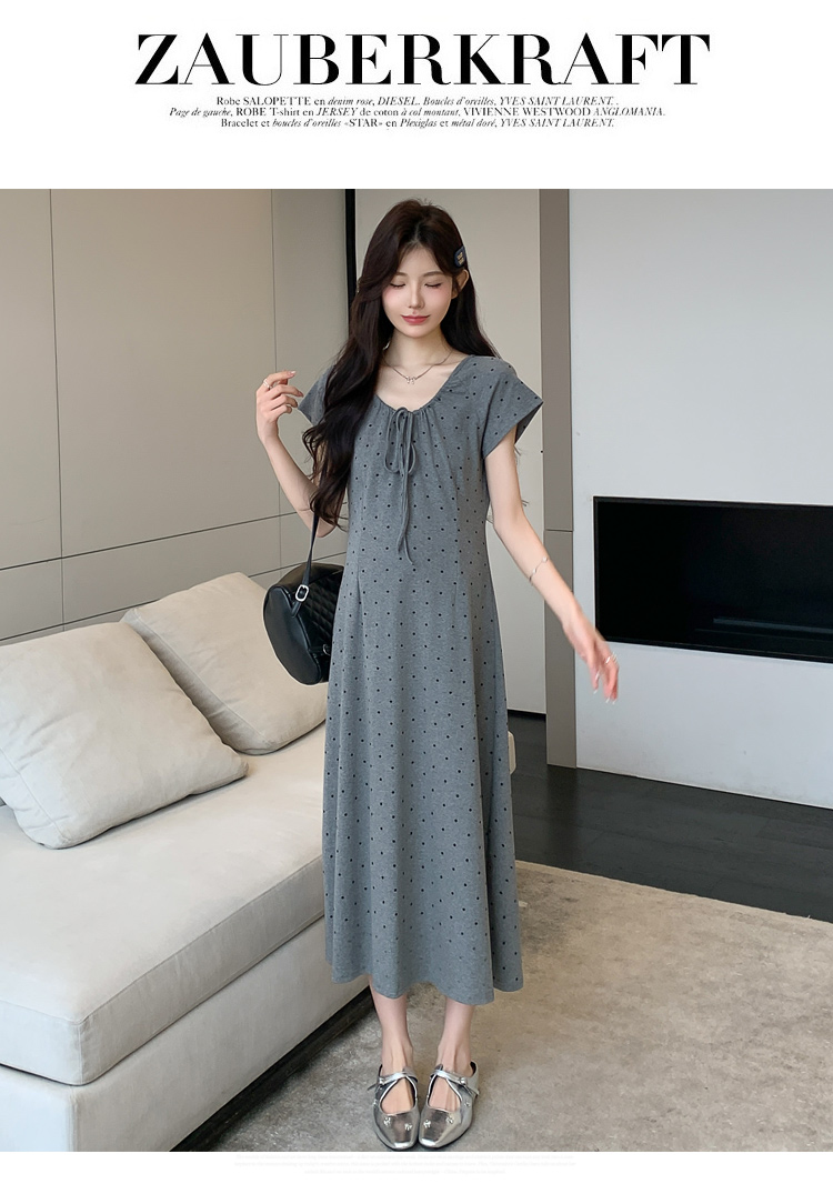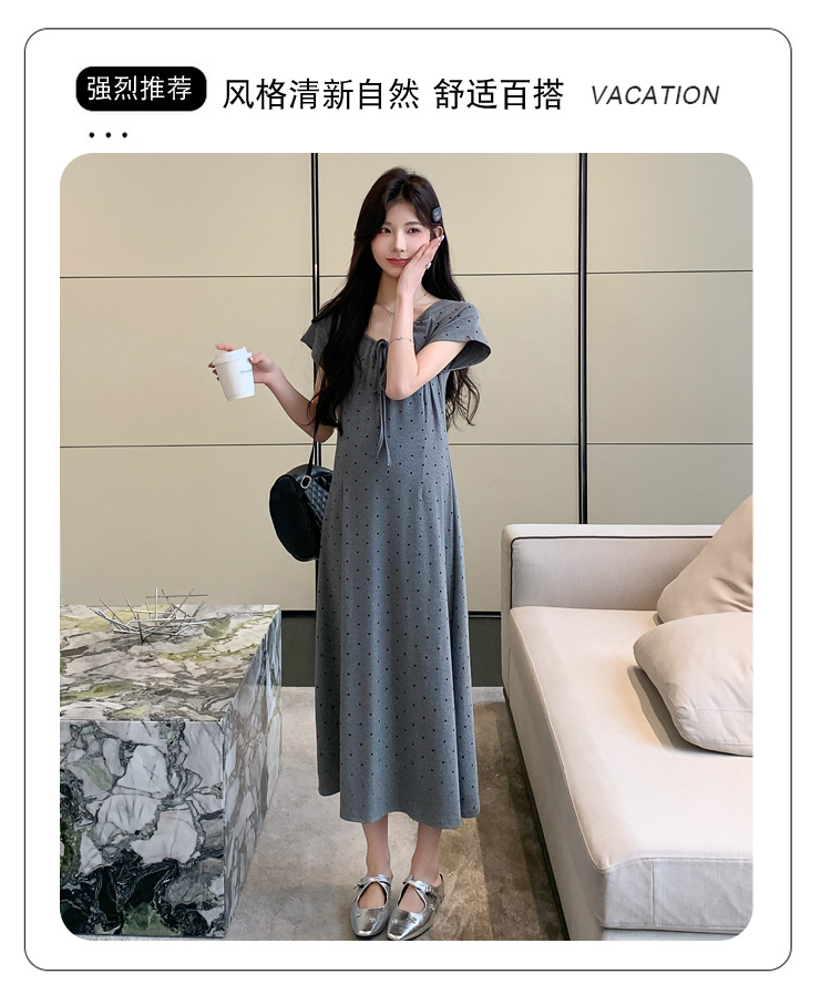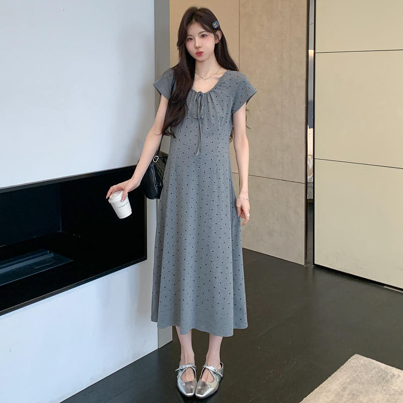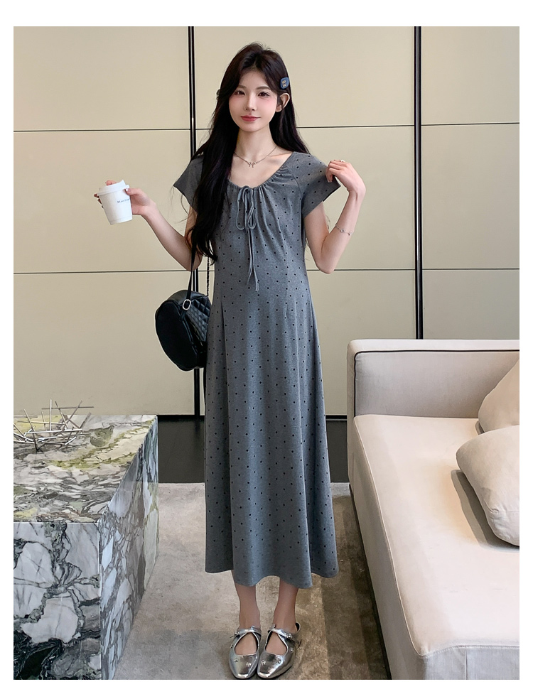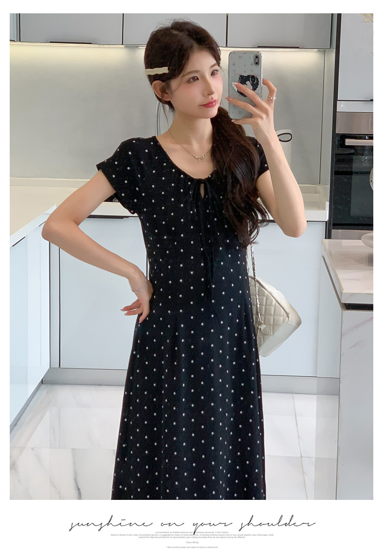 실사 2026 여름 미니멀리즘 도트 무늬 끈 클래식 라운드 넥 몸매 가꾸기 임산부 반팔 게으른 드레스