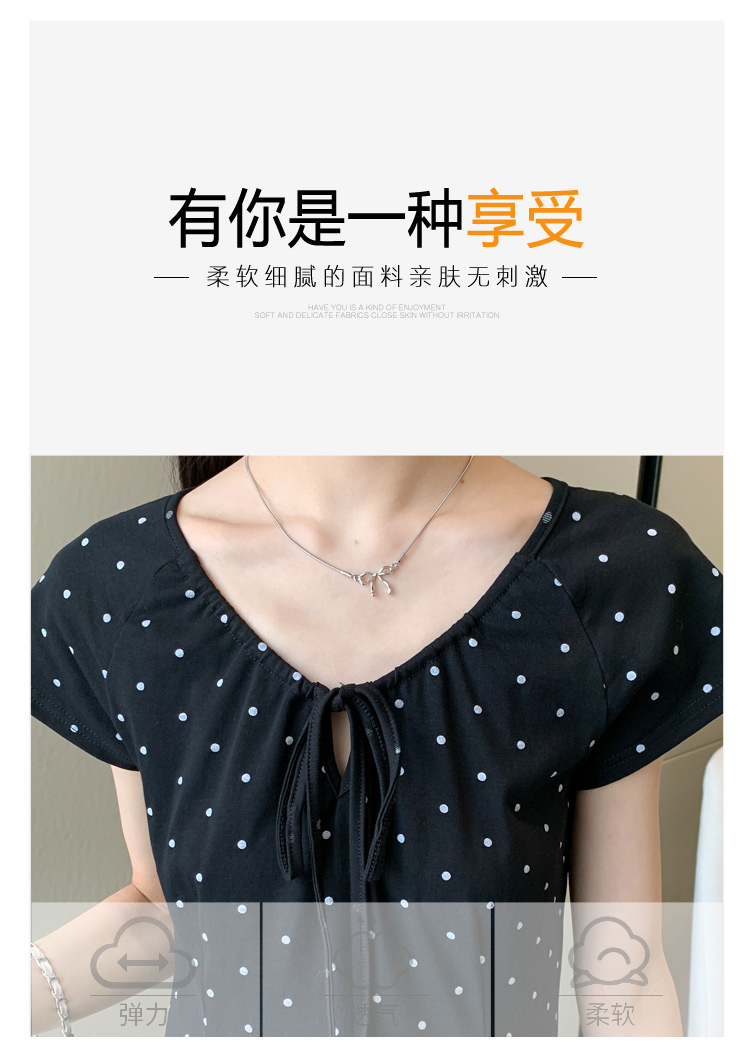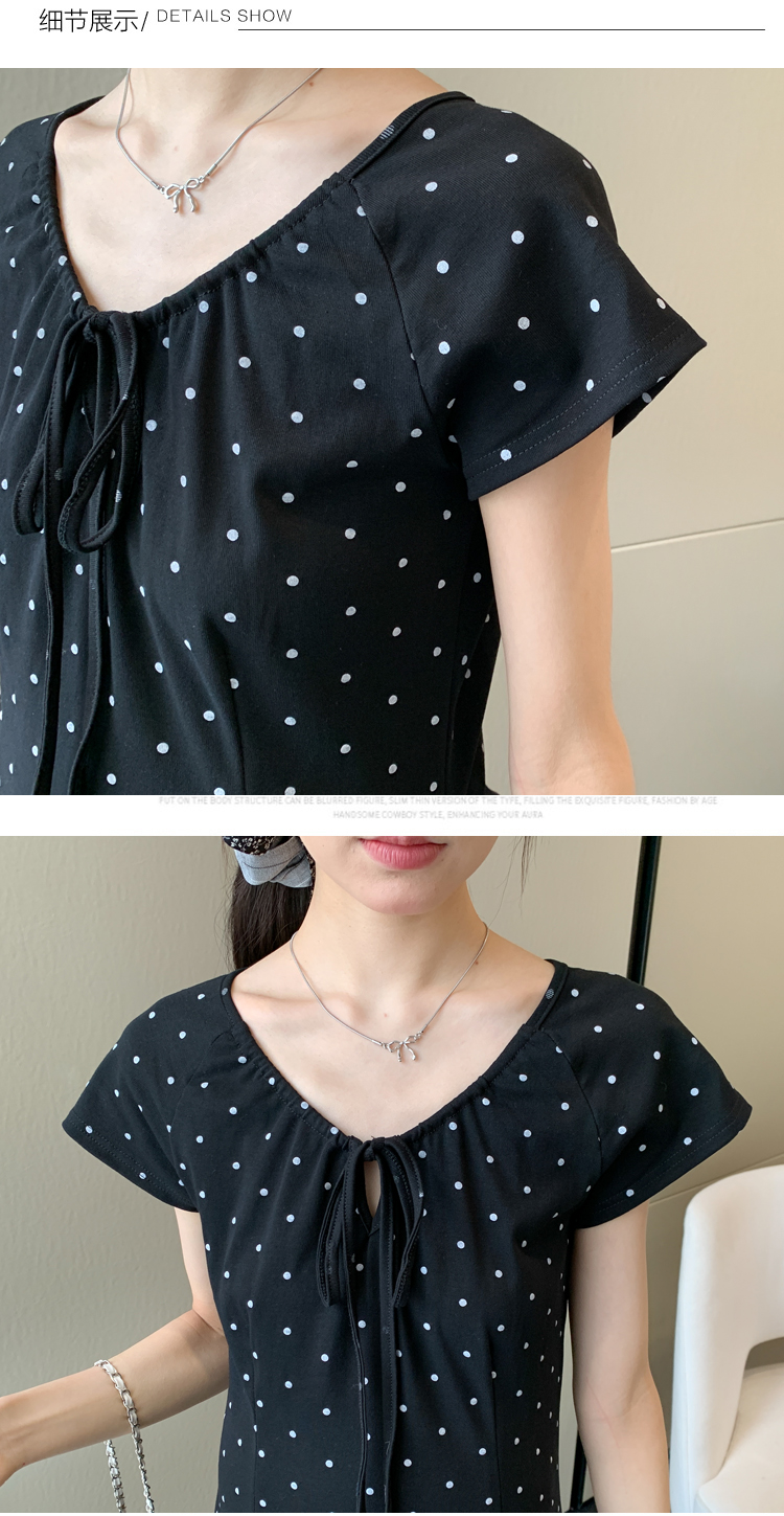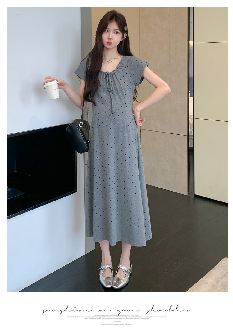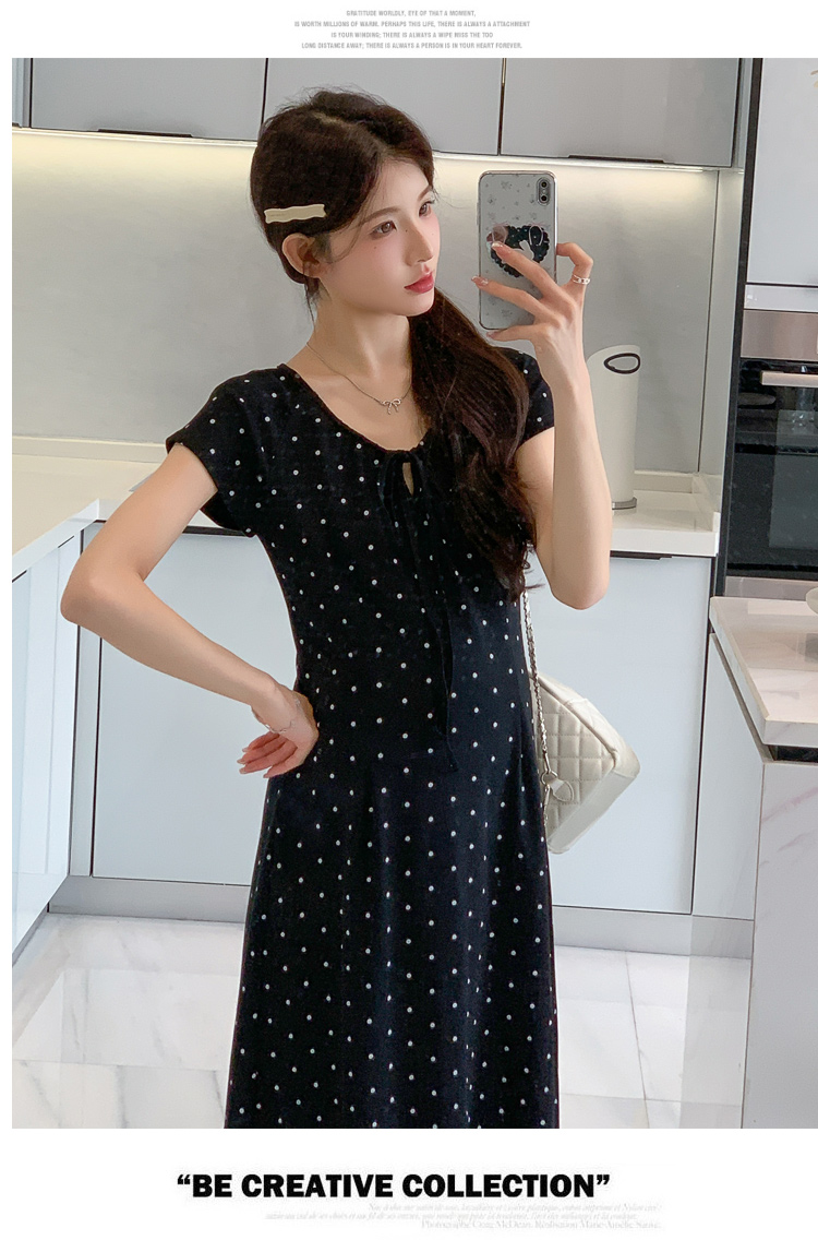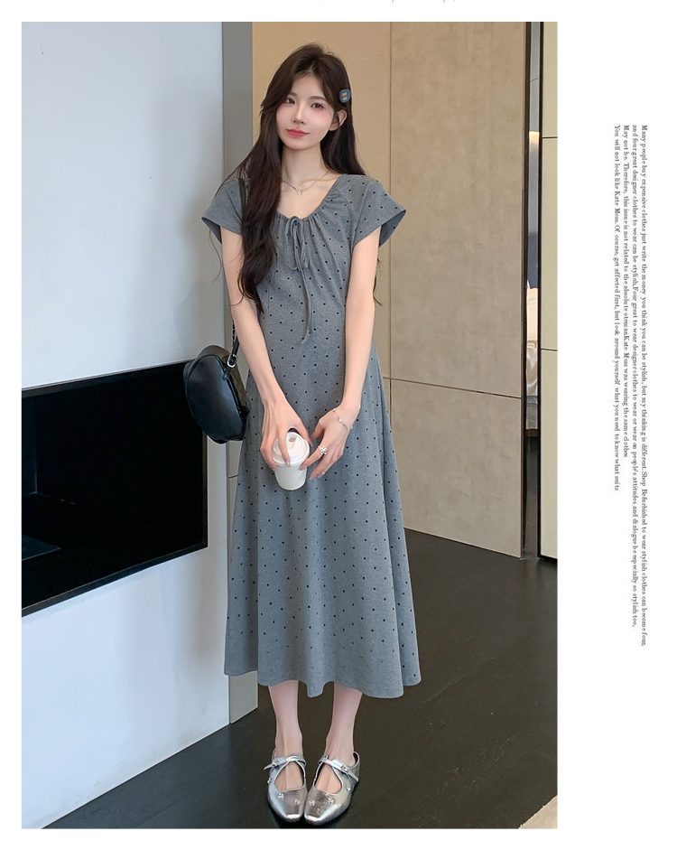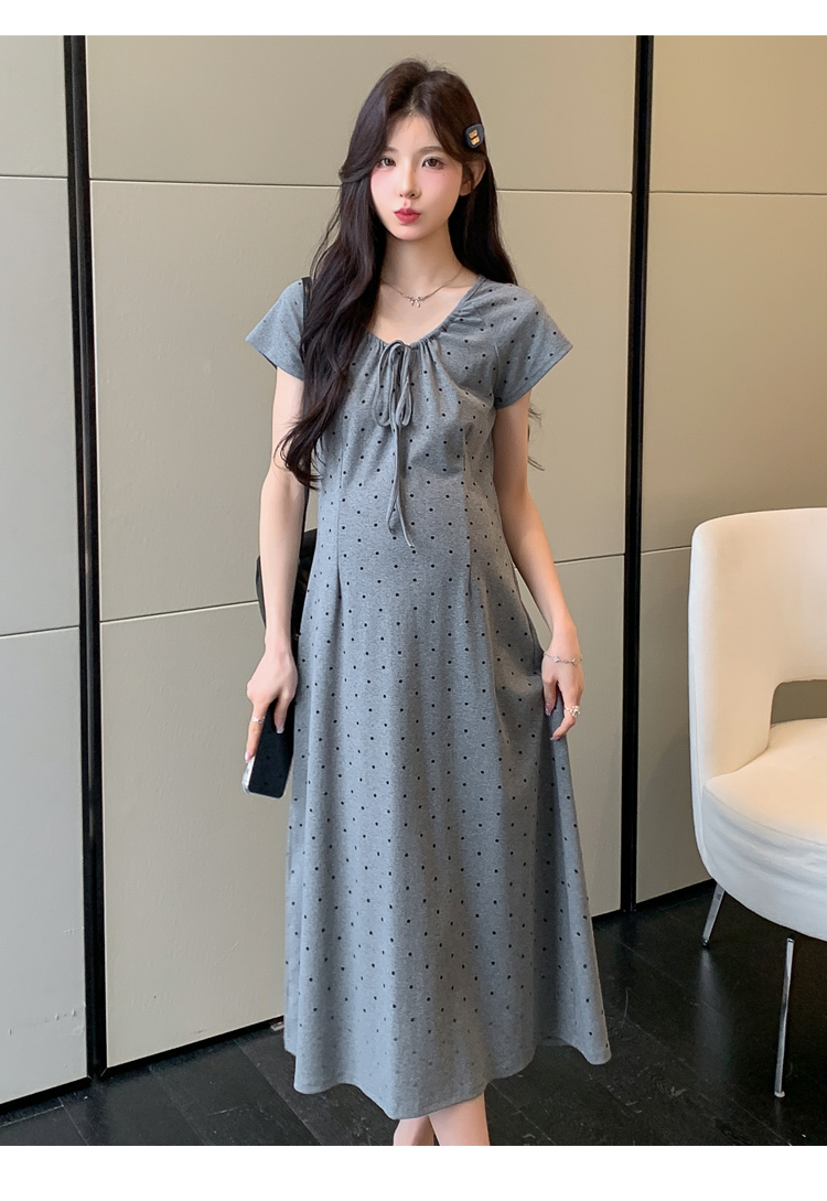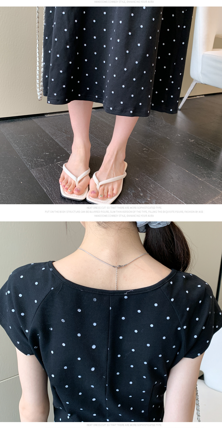 실사 2026 여름 미니멀리즘 도트 무늬 끈 클래식 라운드 넥 몸매 가꾸기 임산부 반팔 게으른 드레스