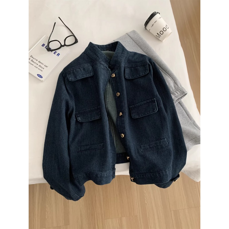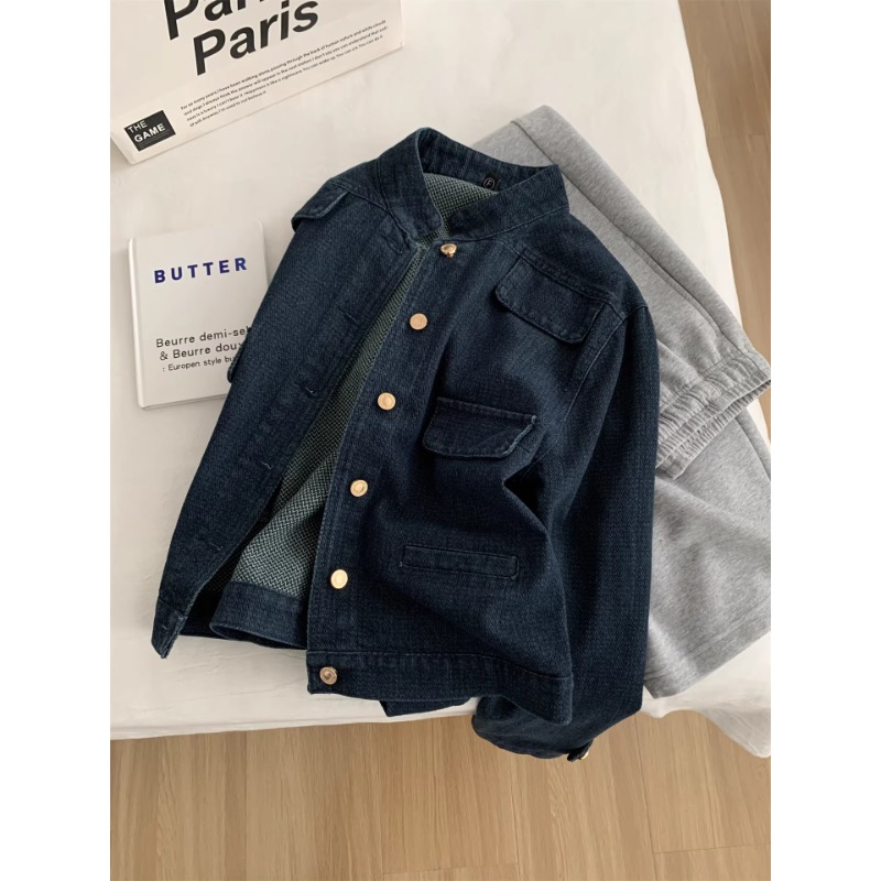 섬 노래 레이디 2026 새로운 올해 인기 폭발 레트로 긍정적 인 어깨 허리 수축 몸매 가꾸기 쇼트 스타일 데님 여성 코트 봄