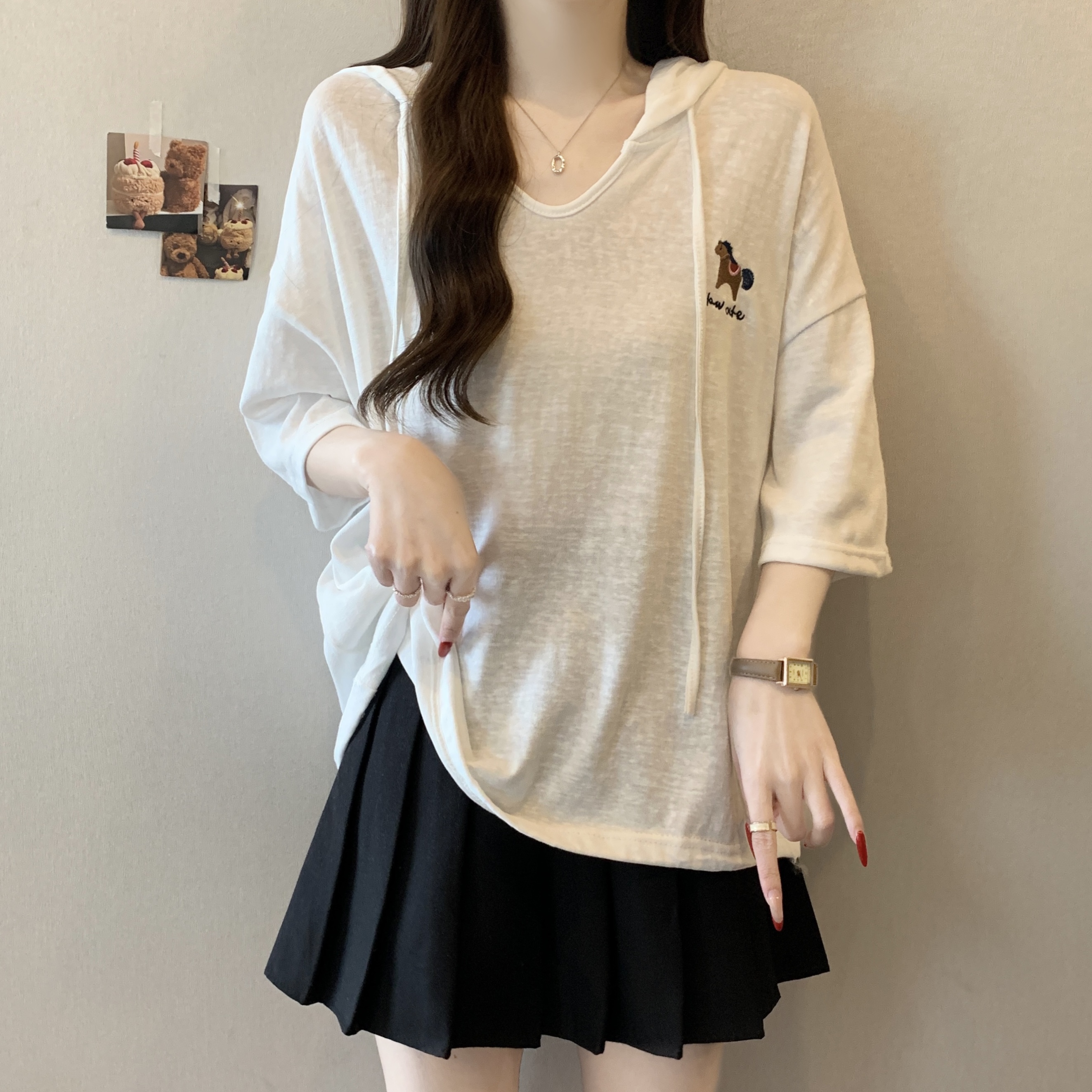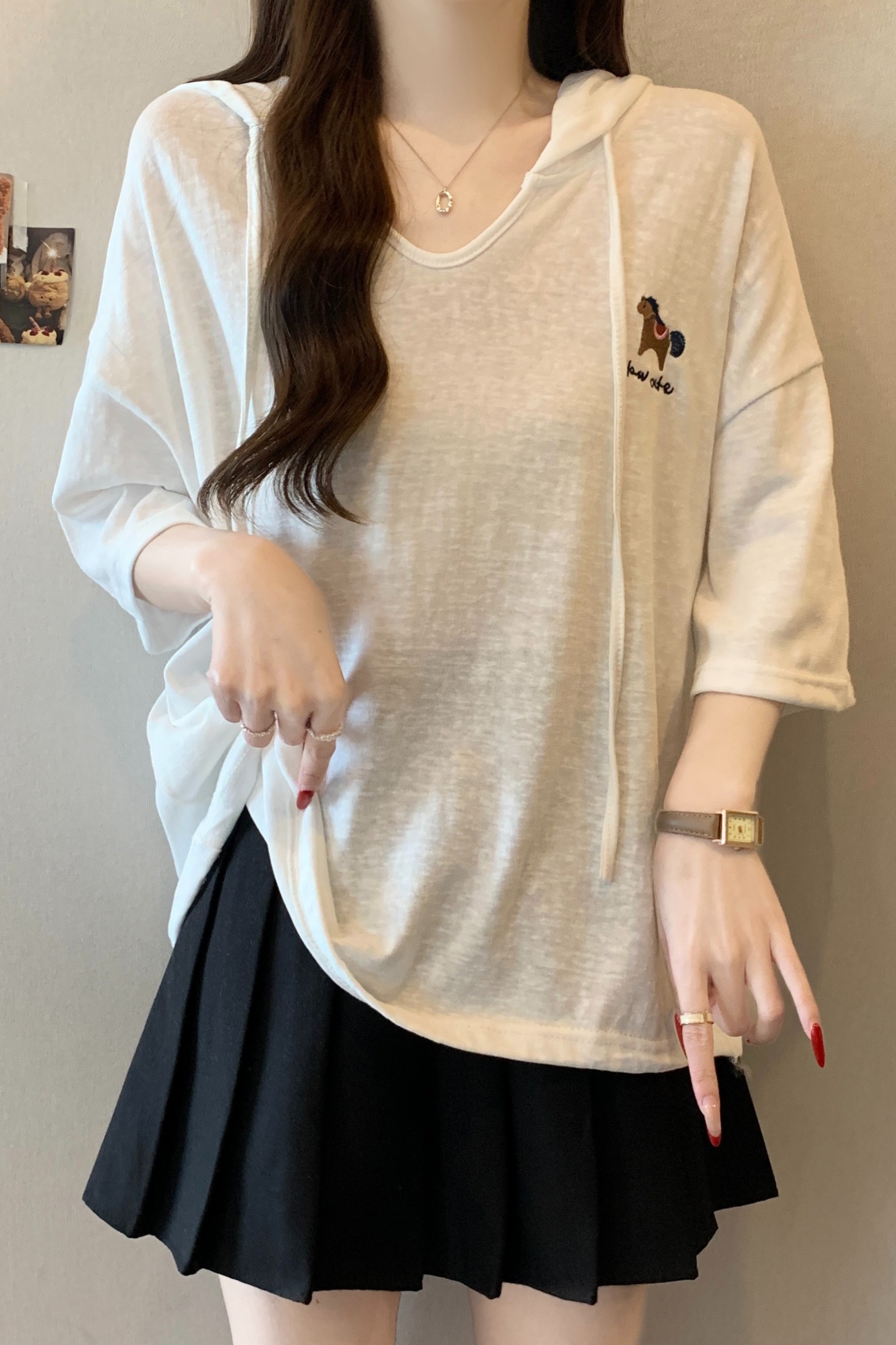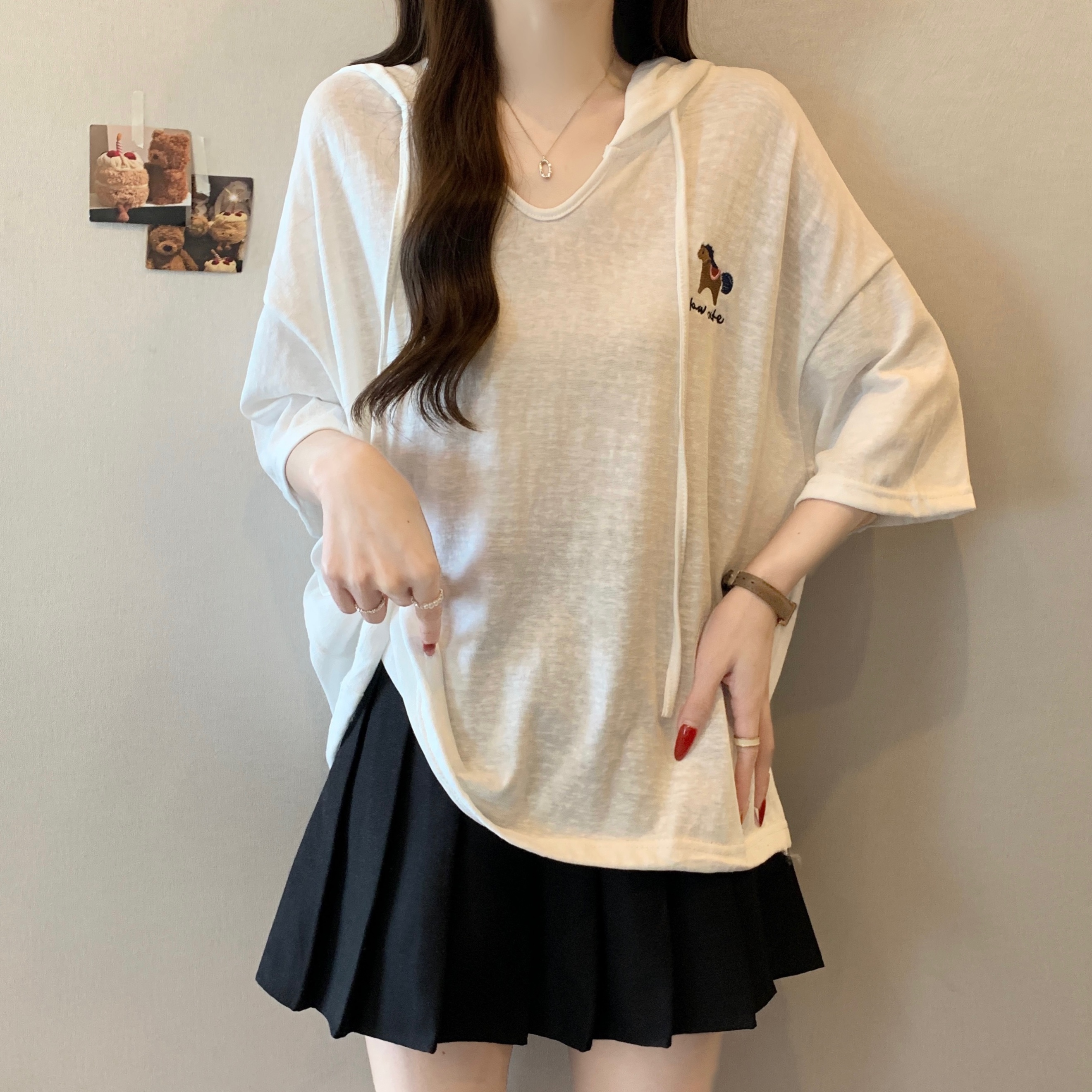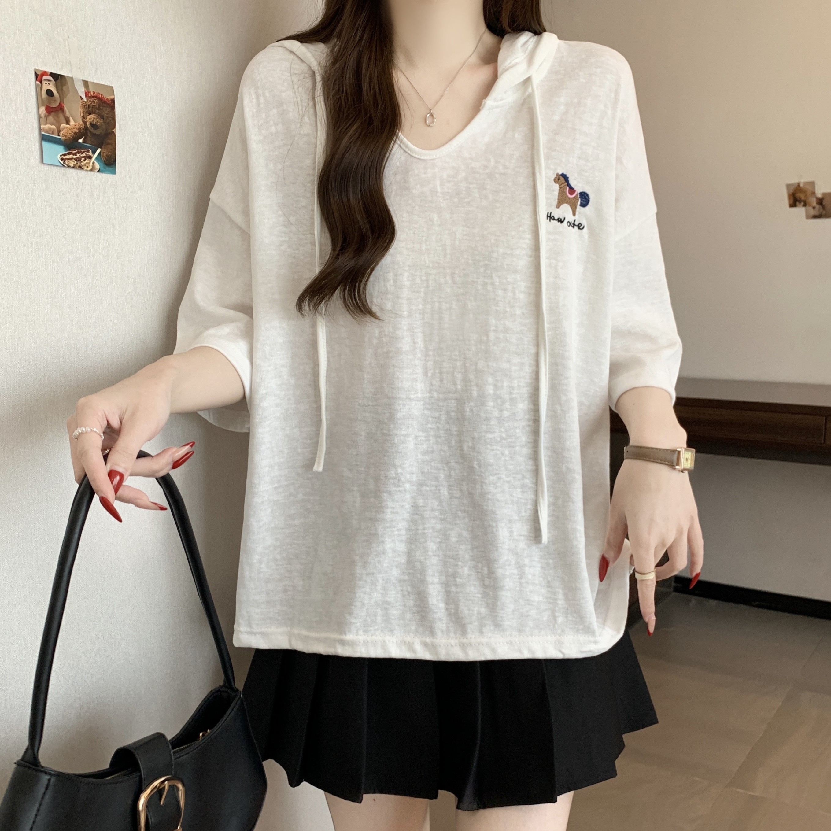 실사 2800# 빅 사이즈 지방 mm 느긋한 바람 디자인 센스 후드 자수 반팔 티셔츠 루즈핏 슬림해 보이는 다용도 맨위